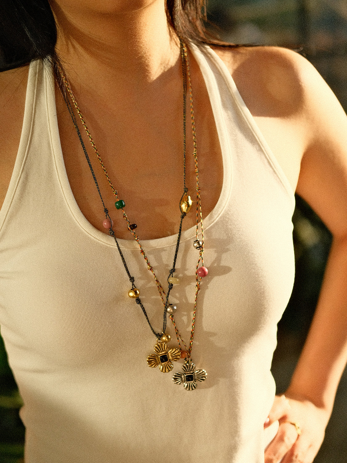 Liu Yuning's Same Style Lazy Circles Lucky Shell Braided Rope Necklace for Women, Colorful Beaded Sweater Chain Accessory