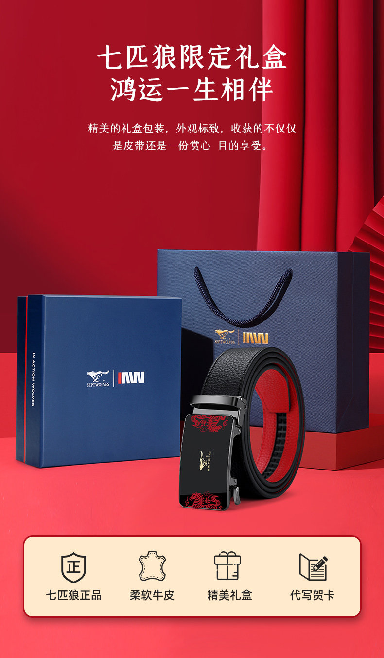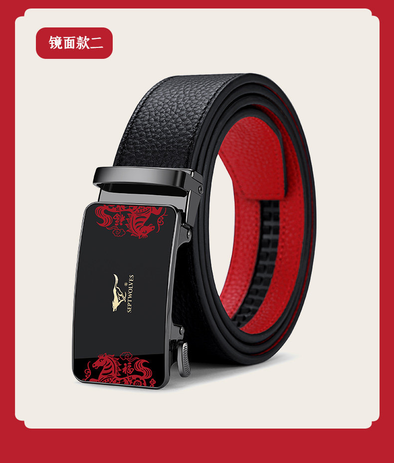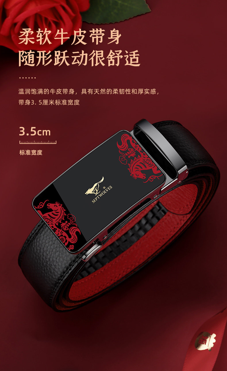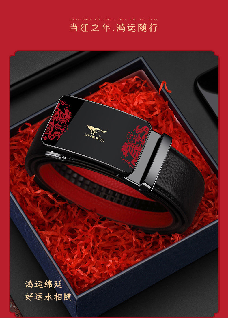 Septwolves Red Belt for Men, Genuine Leather, 2026 Year of the Horse, Zodiac Year of the Horse, Red Leather Belt, New Year Gift for Dad