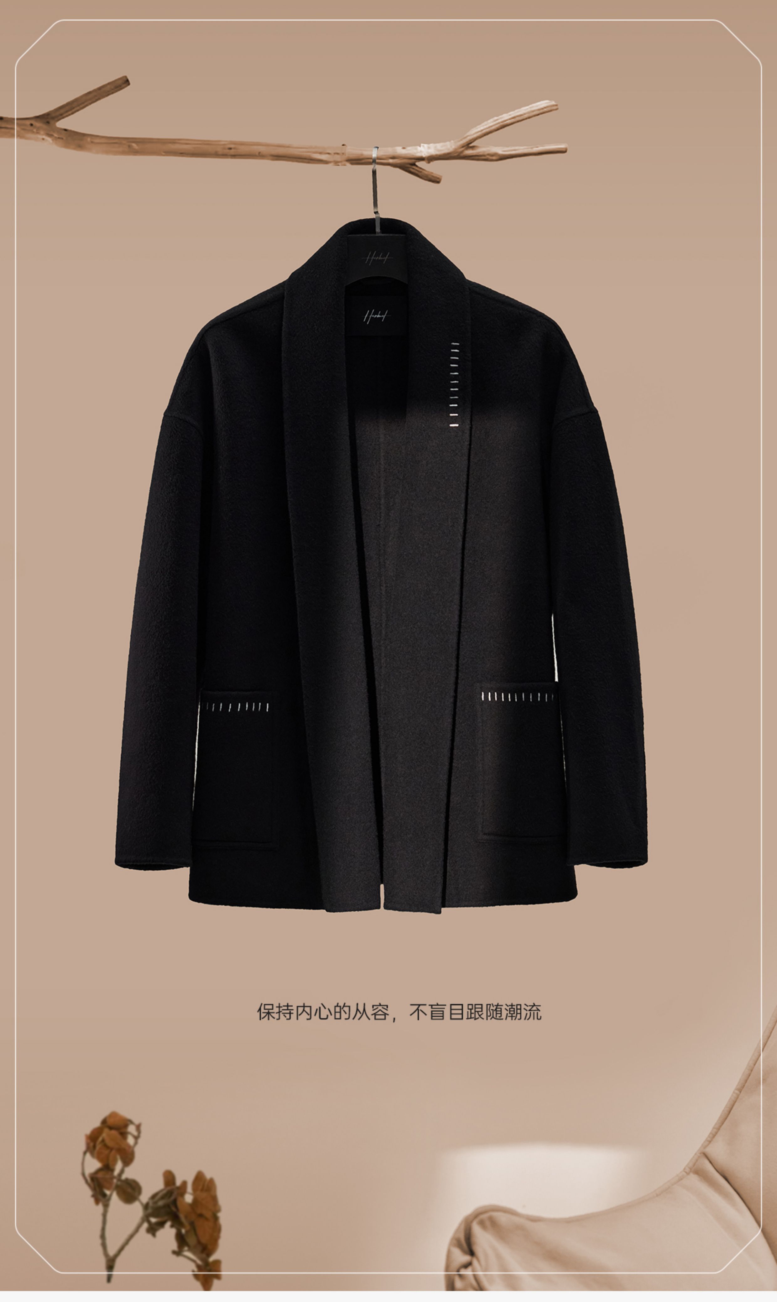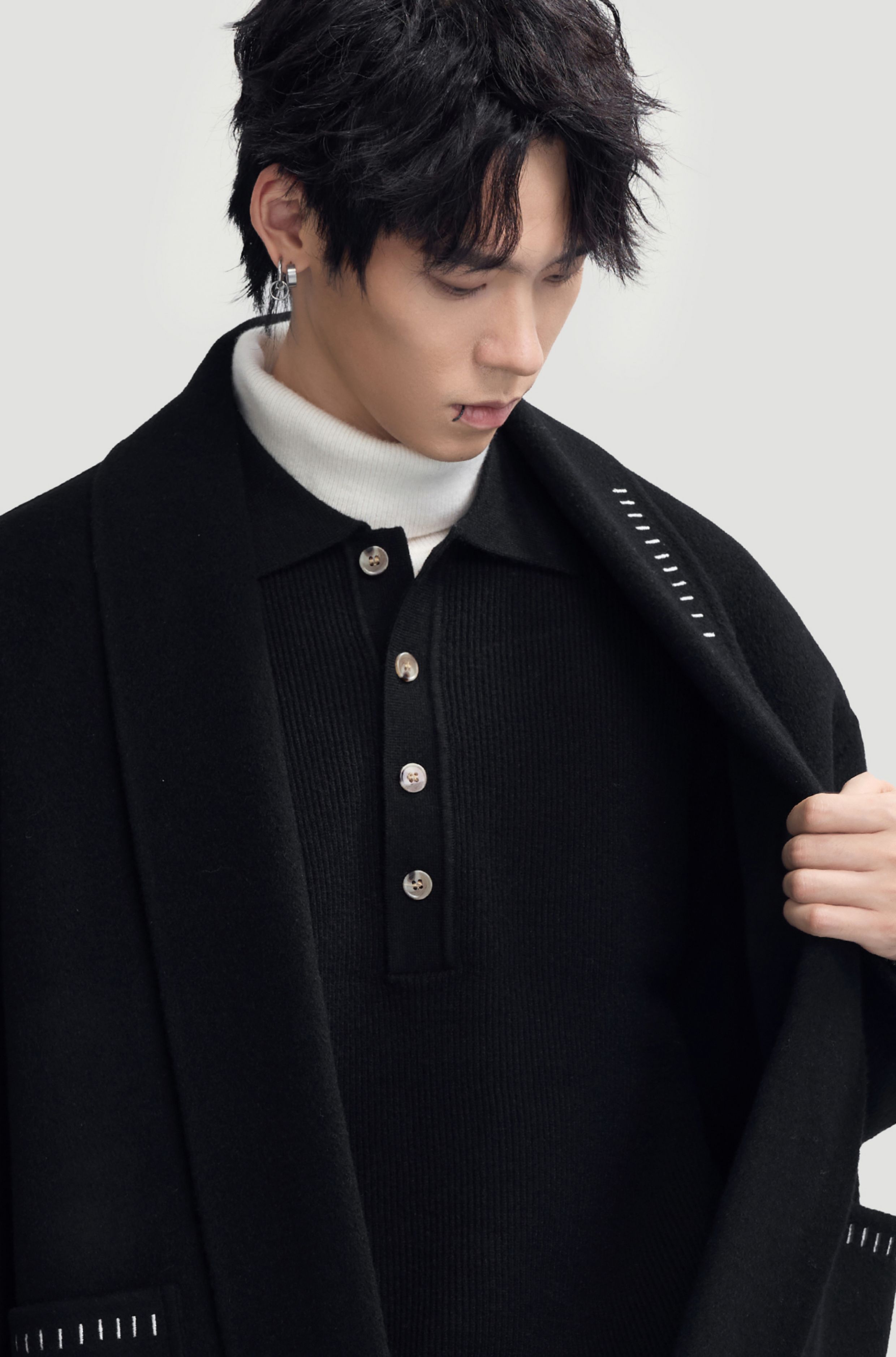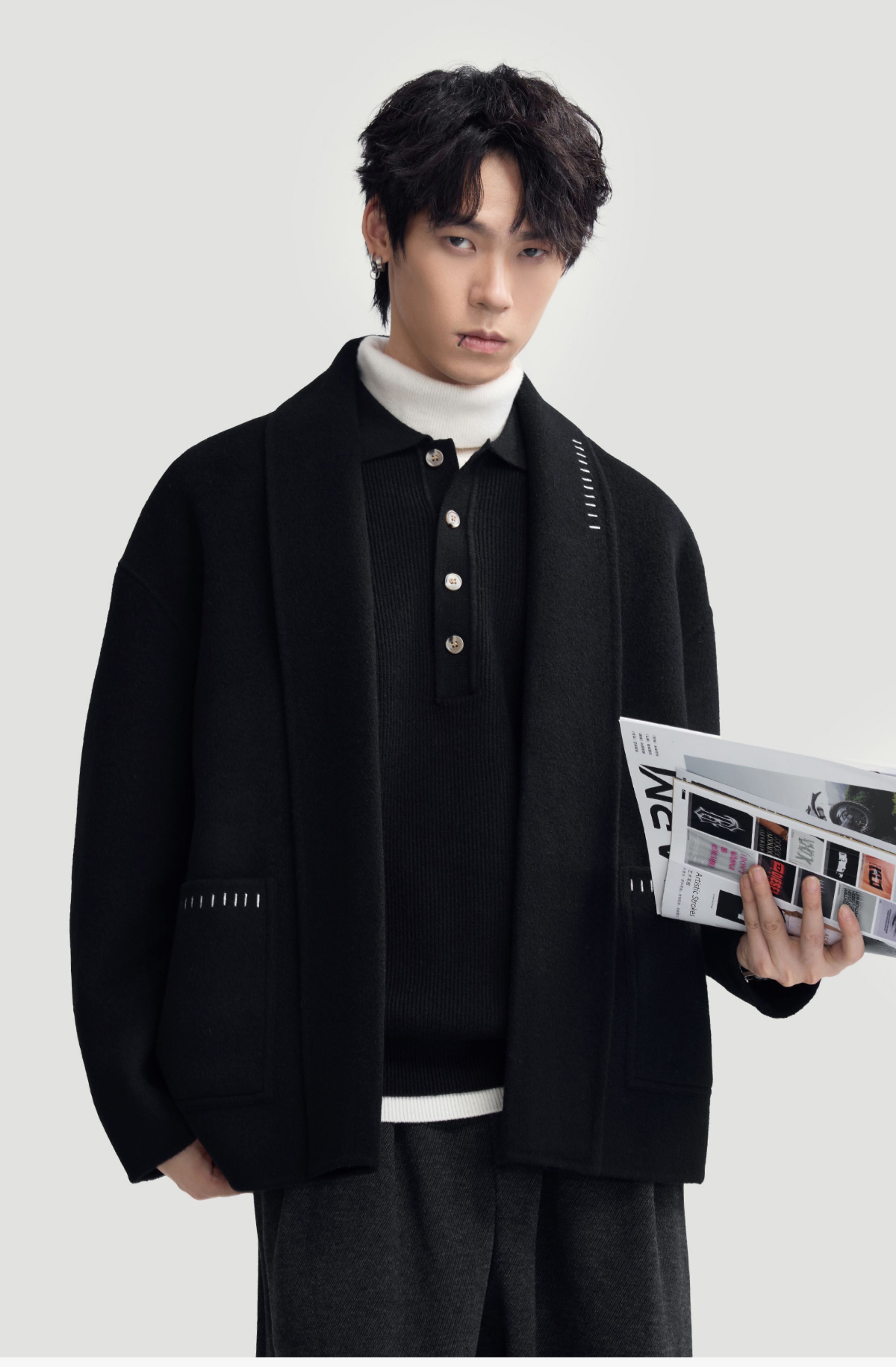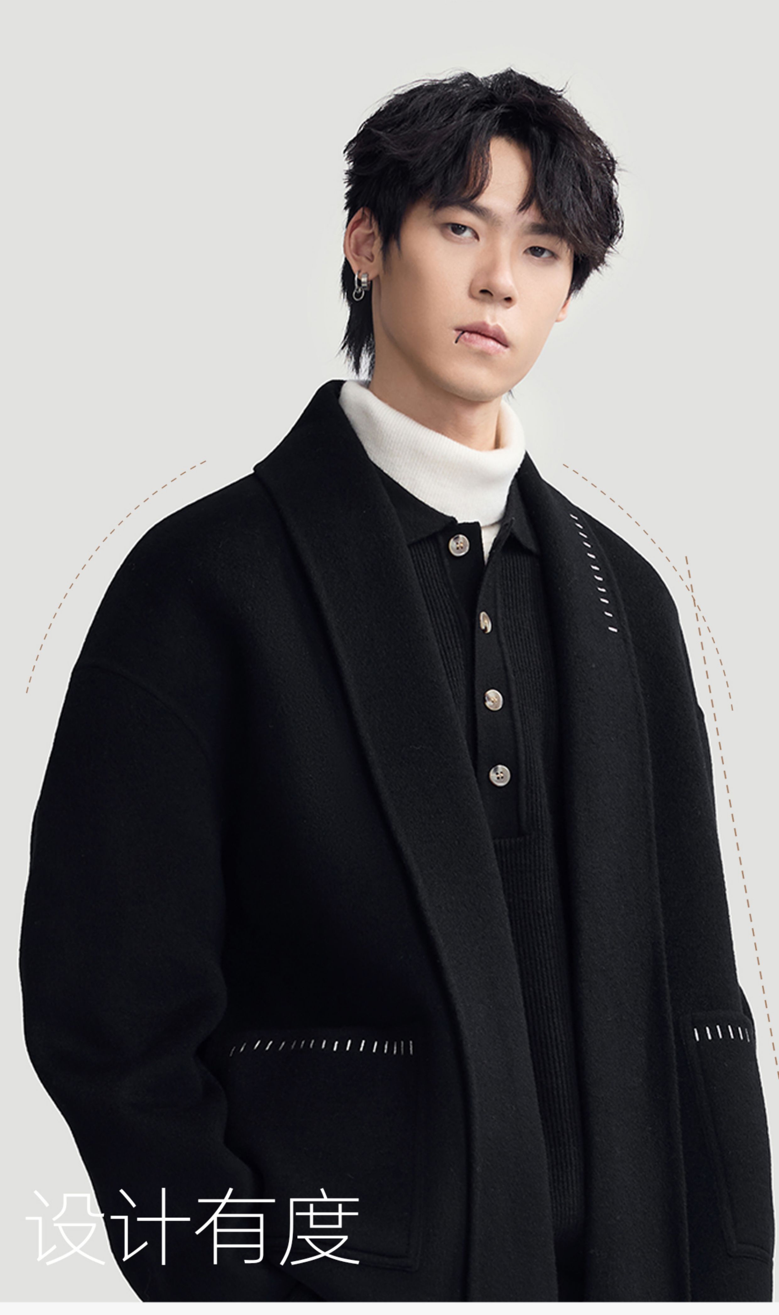 Herbel/Black and White Woolen Coat for Men, 2025 Winter New Style, High-End Scarf Collar Versatile Jacket