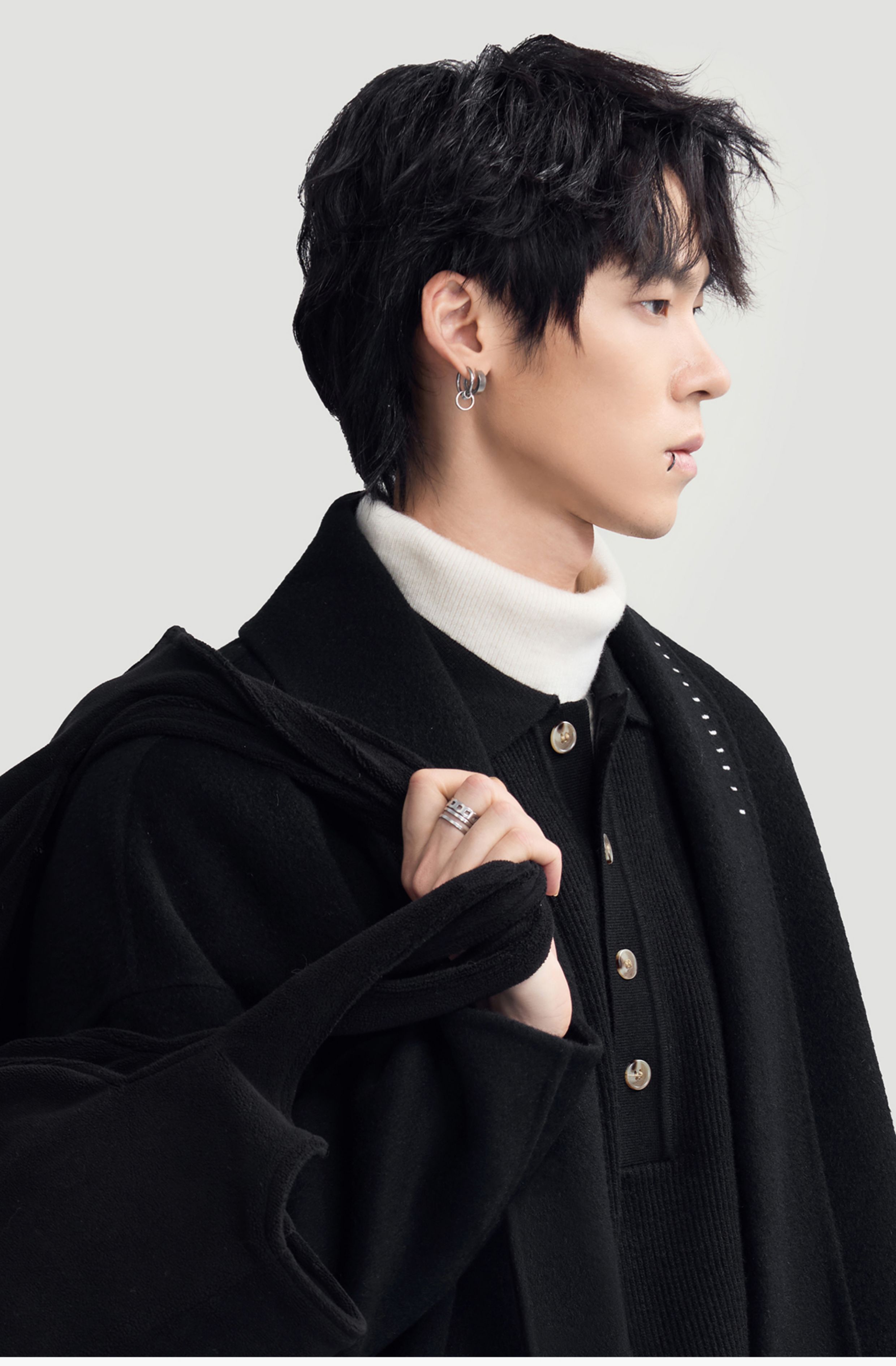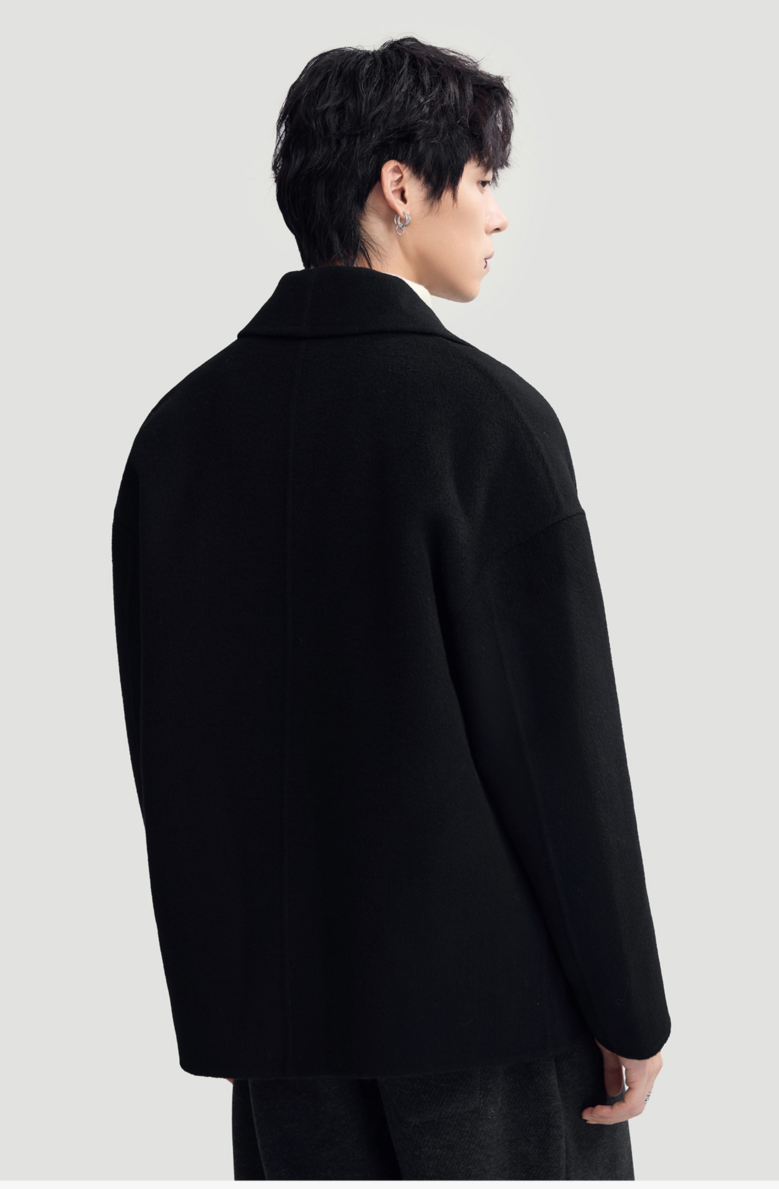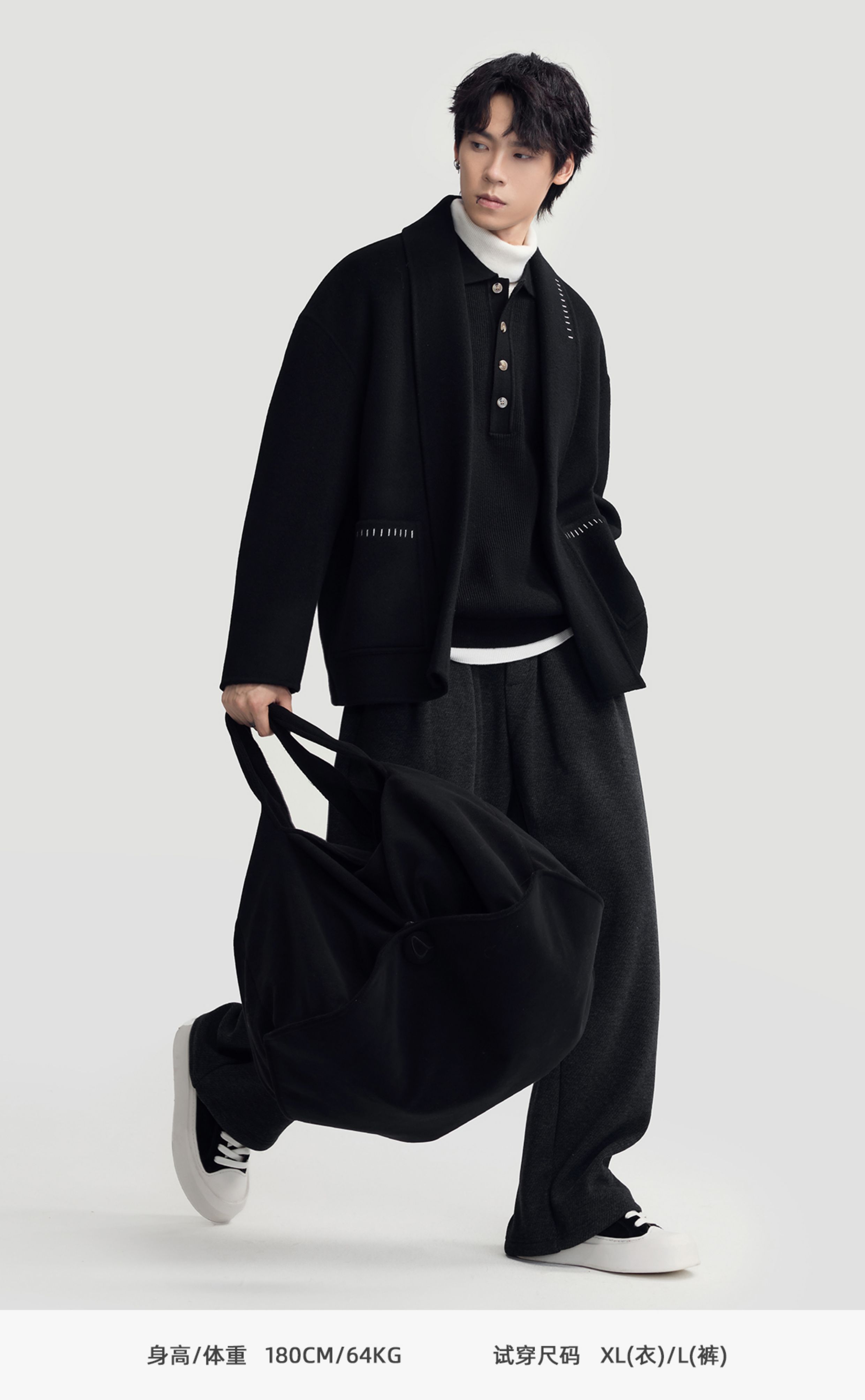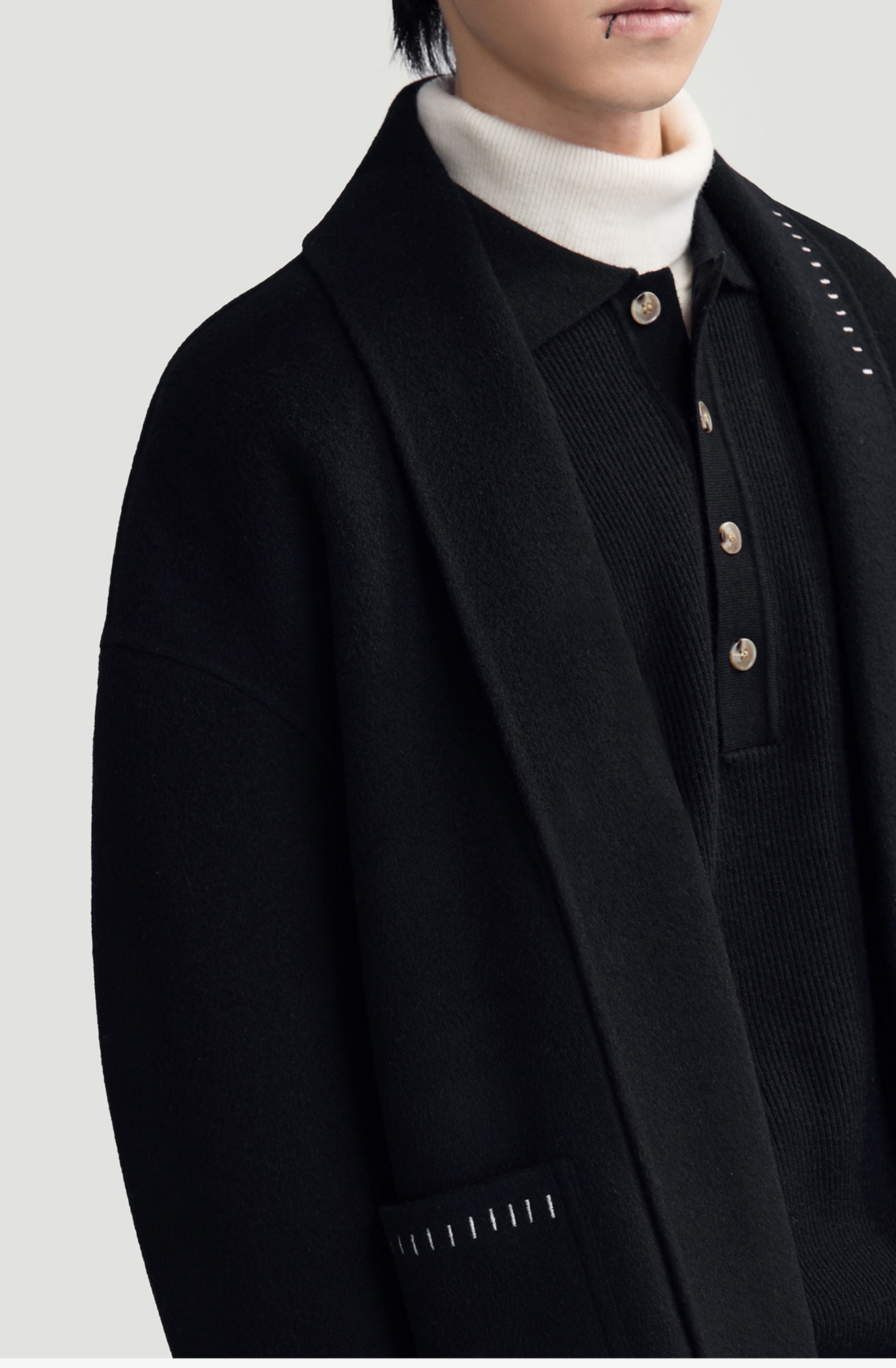 Herbel/Black and White Woolen Coat for Men, 2025 Winter New Style, High-End Scarf Collar Versatile Jacket