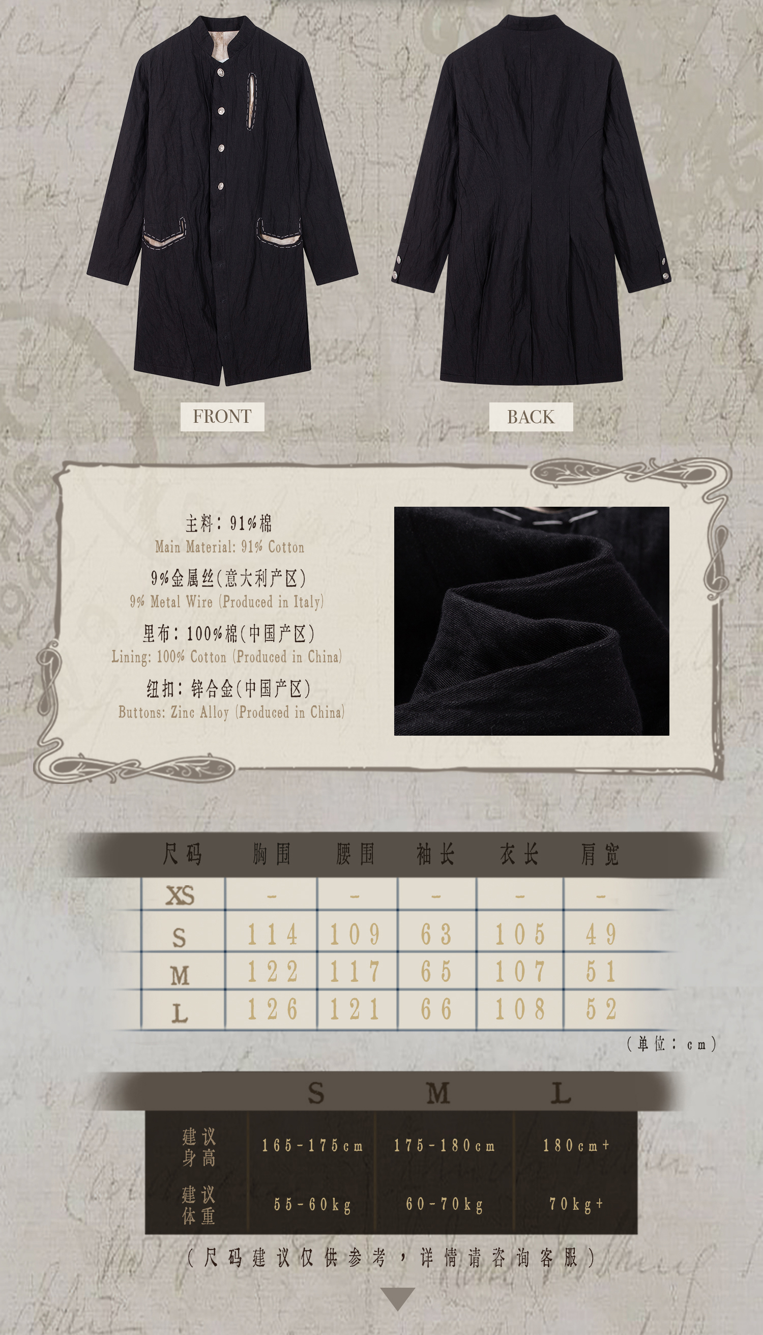TAM TUAS [Hamlet/Hamlet] sand wash black metal wire Deconstruct court coat
