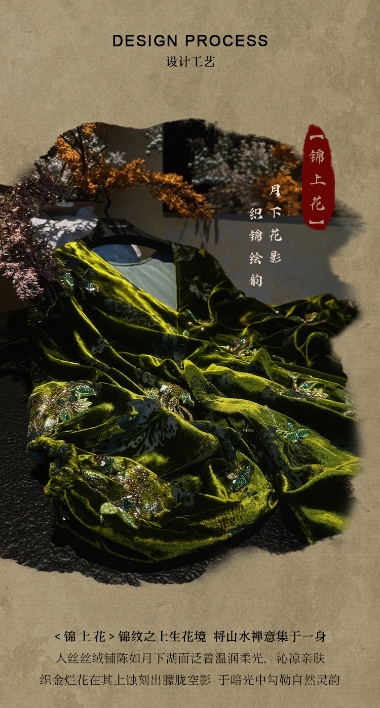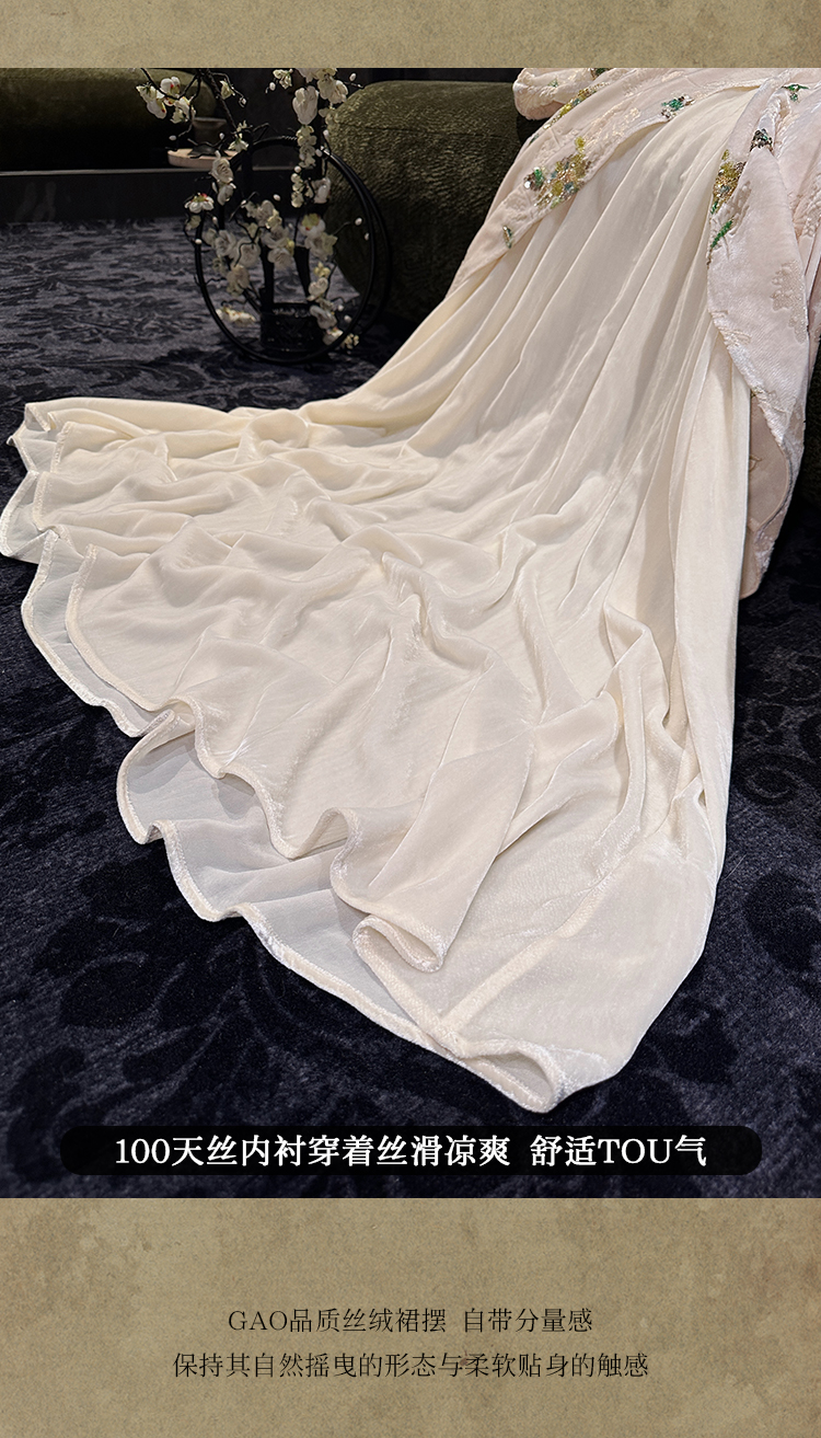 Sanji Heihua [Jinshanghua] New Chinese-Style National Style Velvet Burnt-Out Floral Dress, a Very Beautiful Long Dress for Autumn