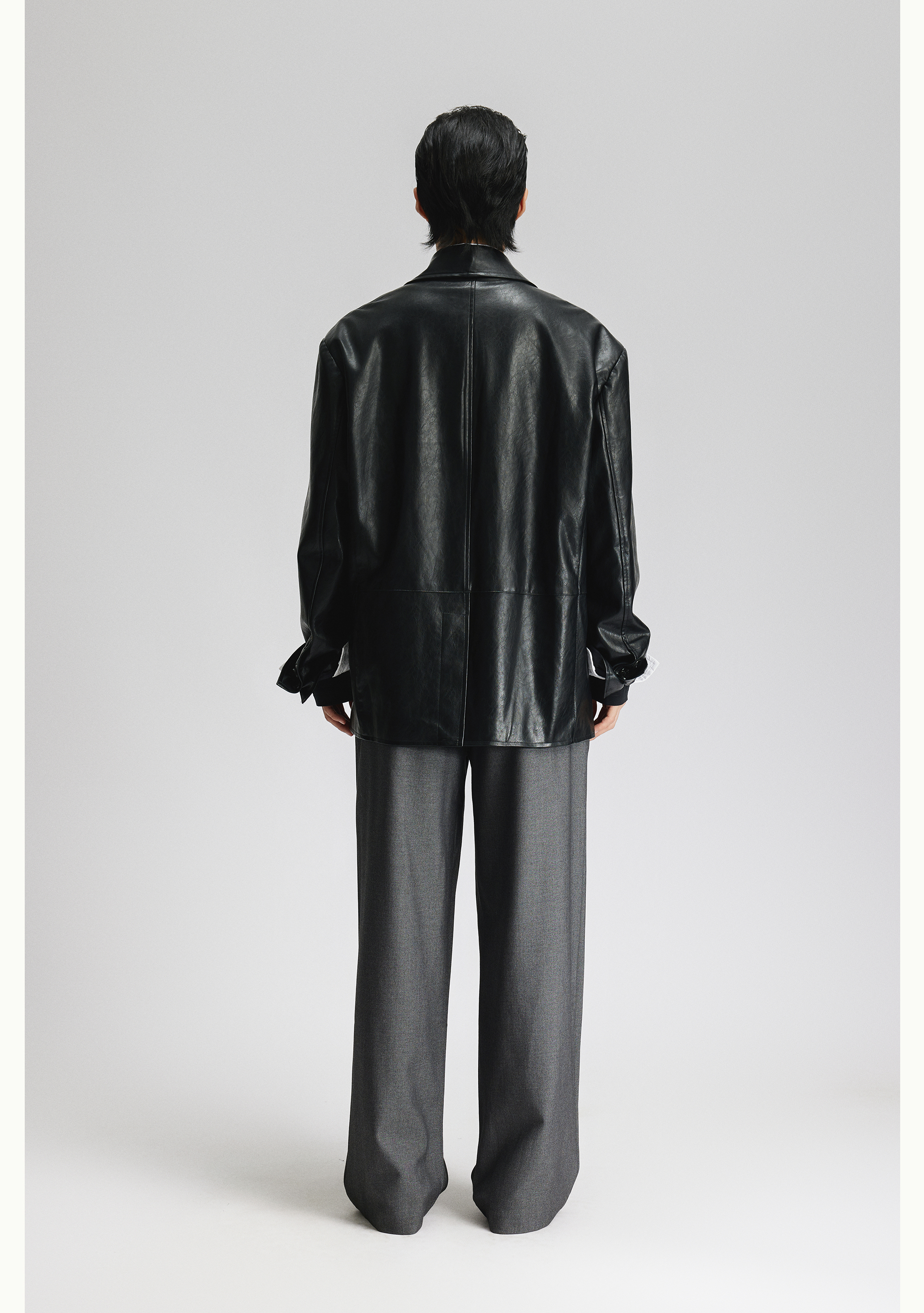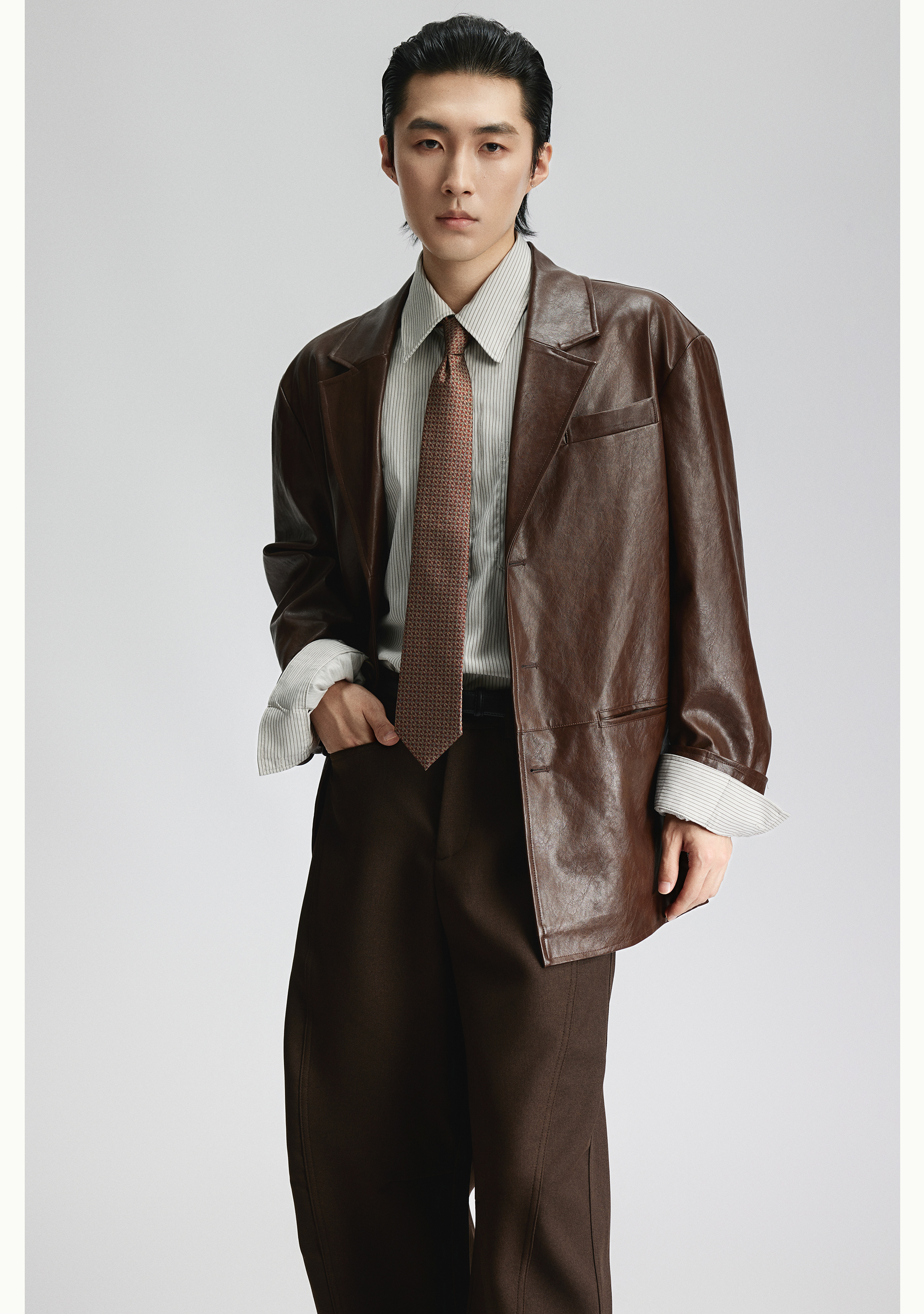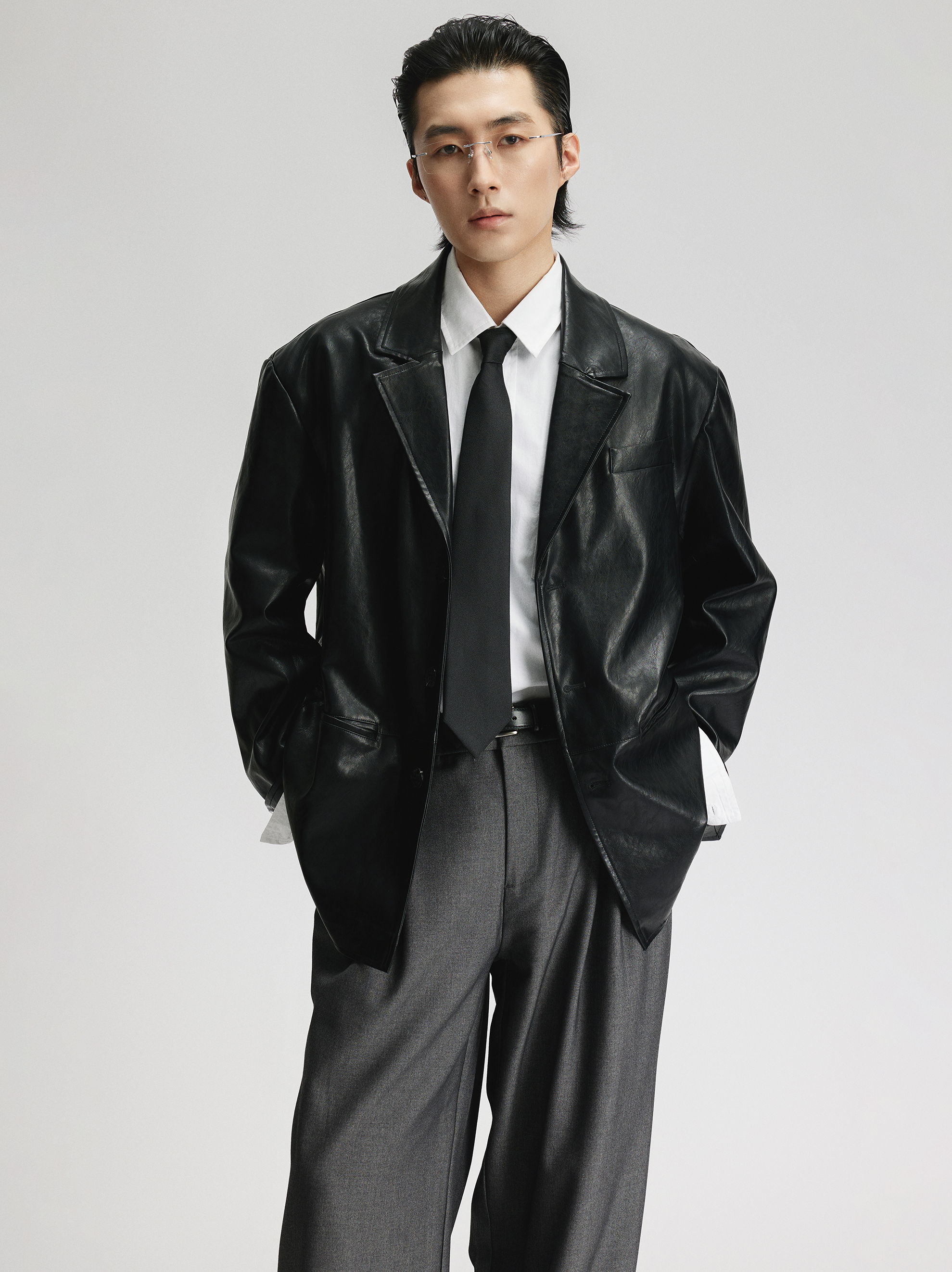 Miki Gongbai Japanese Retro Leather Suit Jacket for Men, High-End Feel, Loose Casual Lapel Jacket, Simple and Trendy