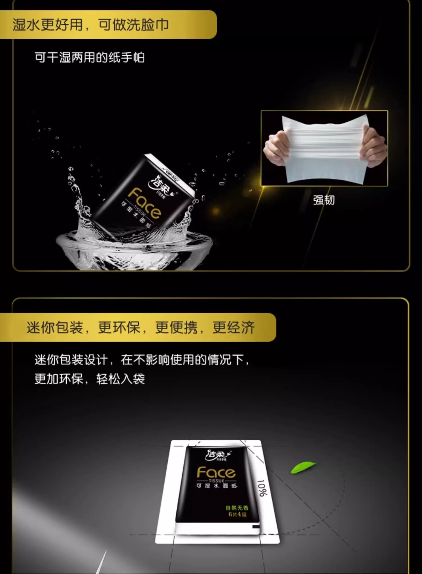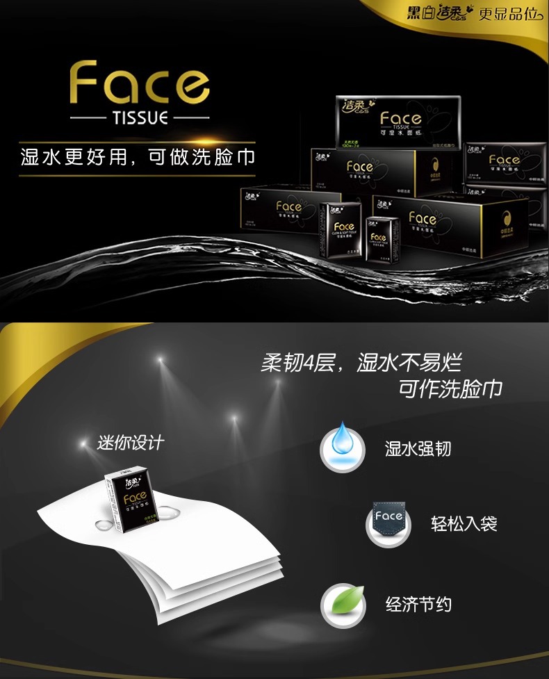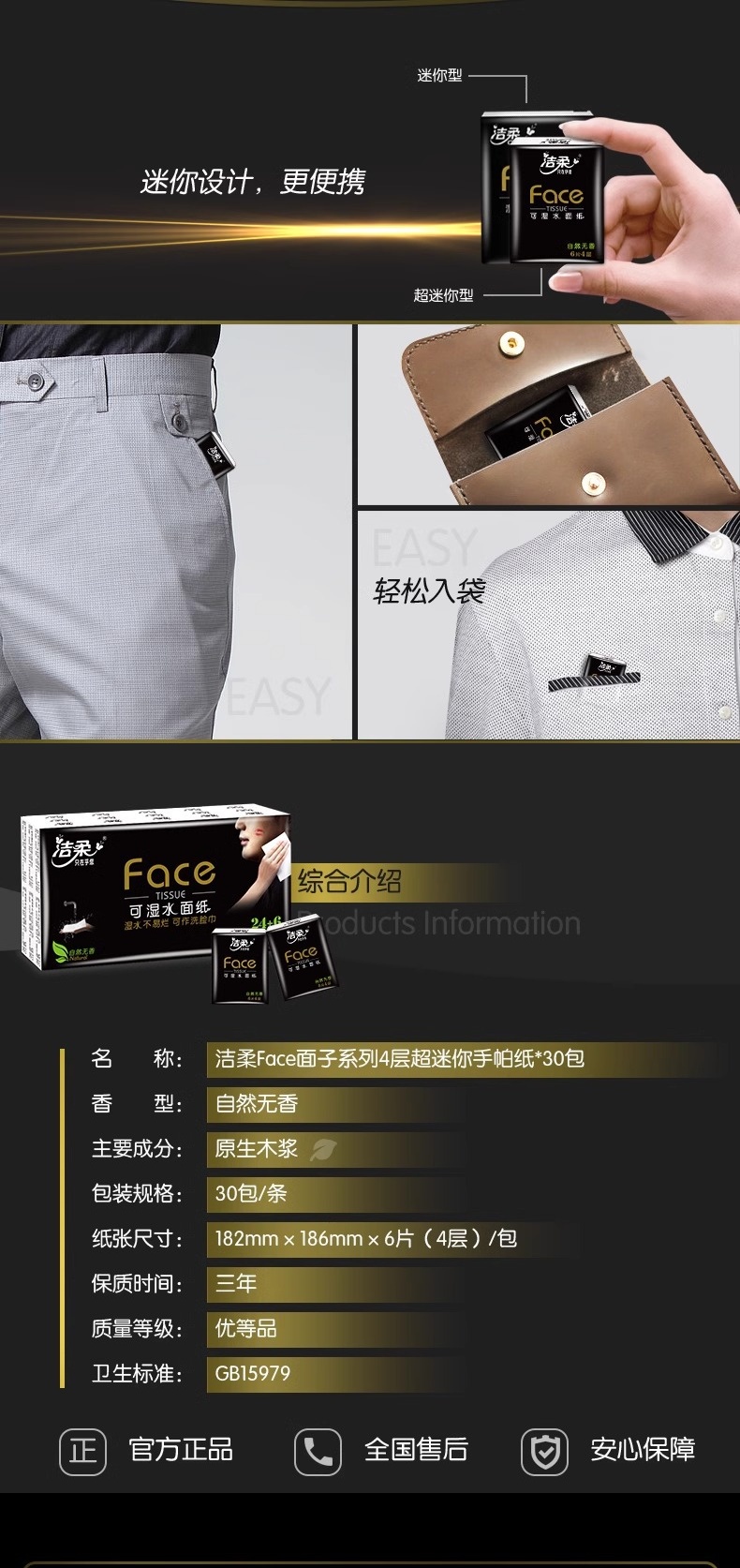 Jierou Black Face Handkerchief Paper 4-Ply 30 Packs Portable Water-Resistant Paper Napkins Small Pack Tissue Paper Small Packaging