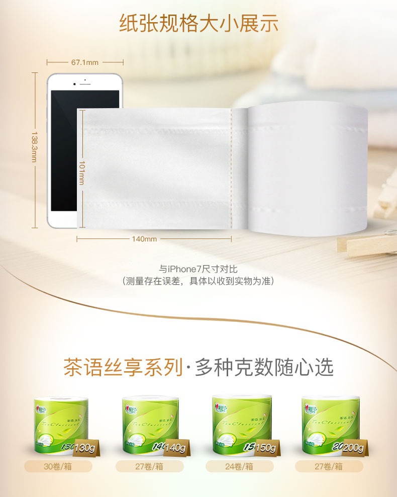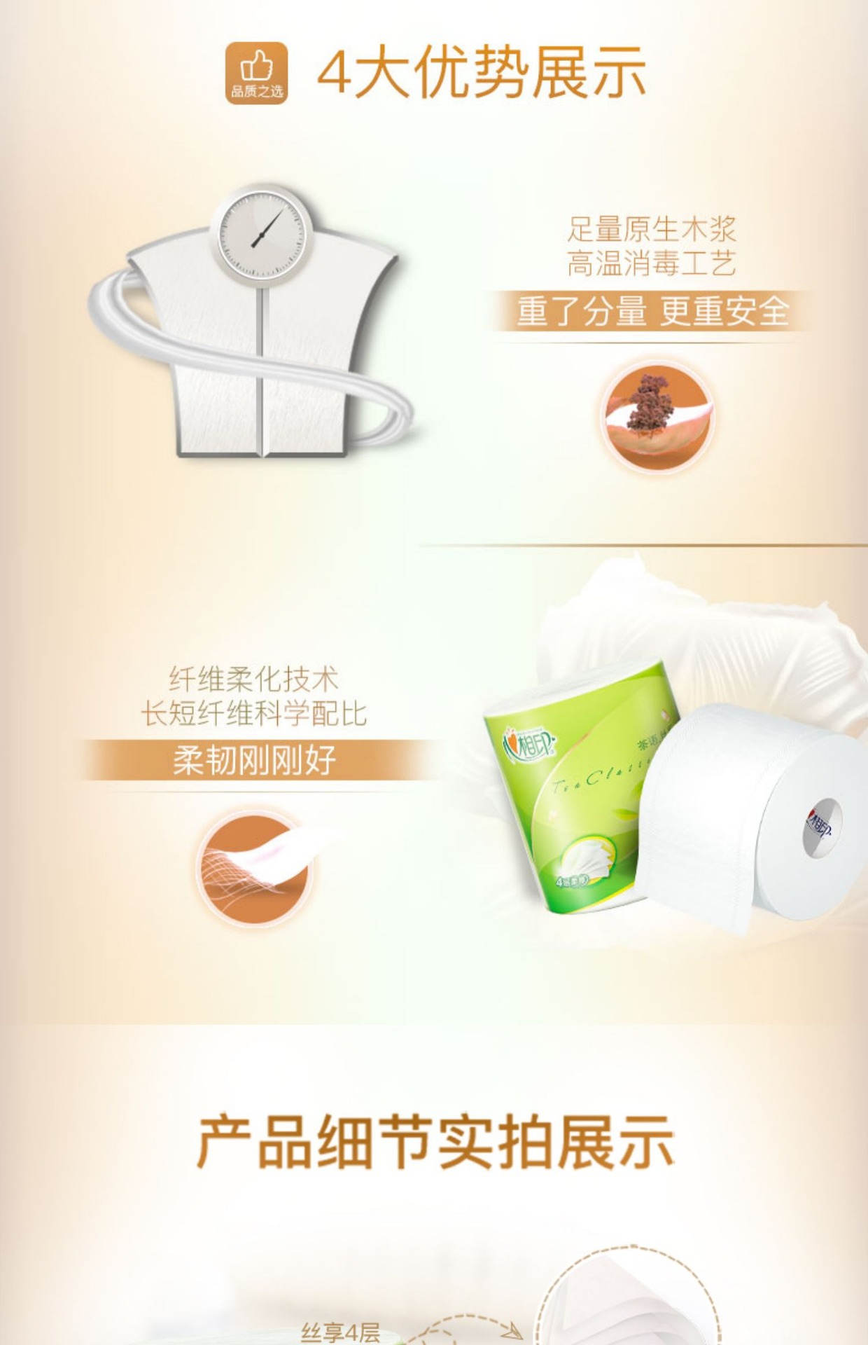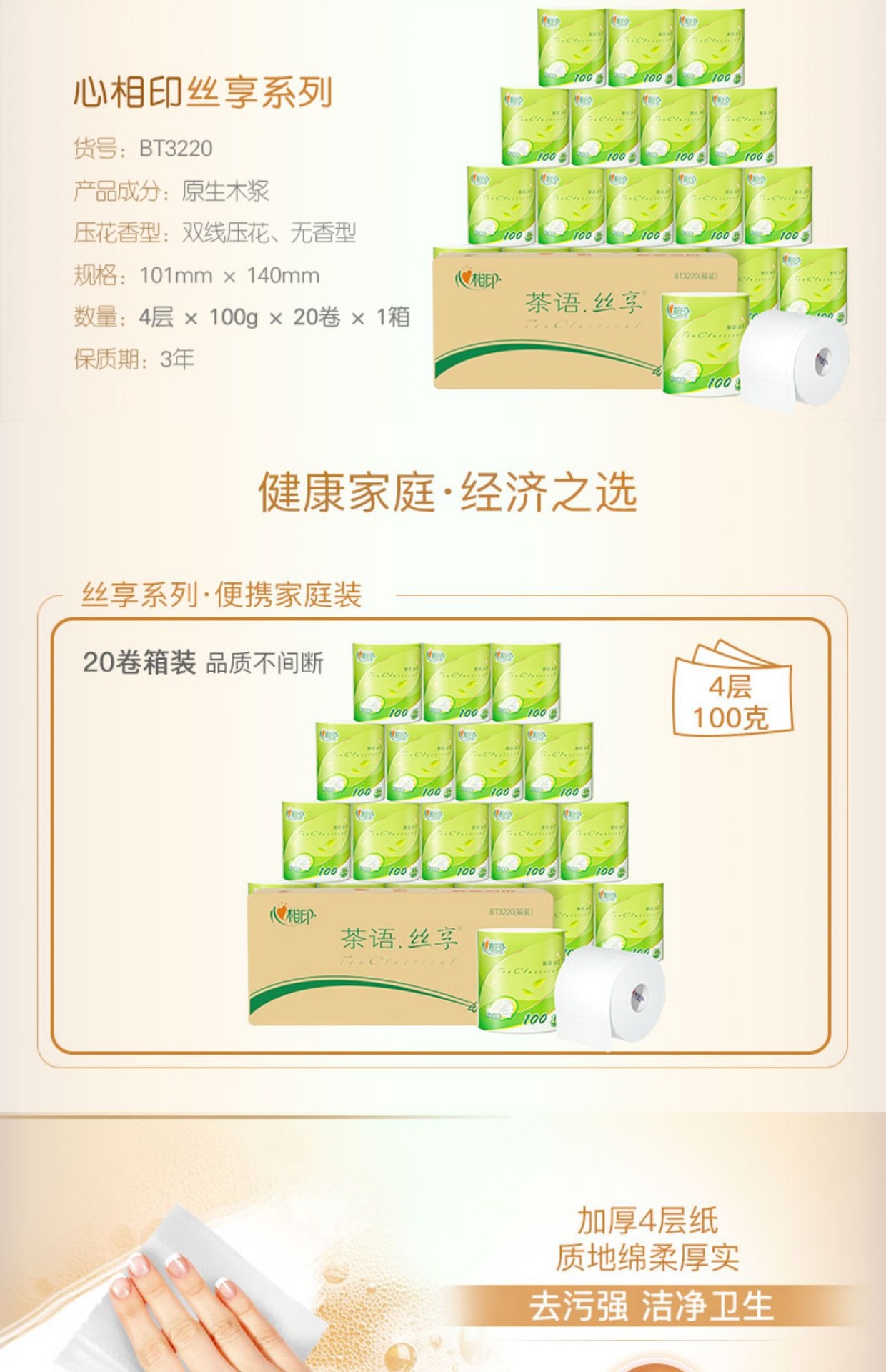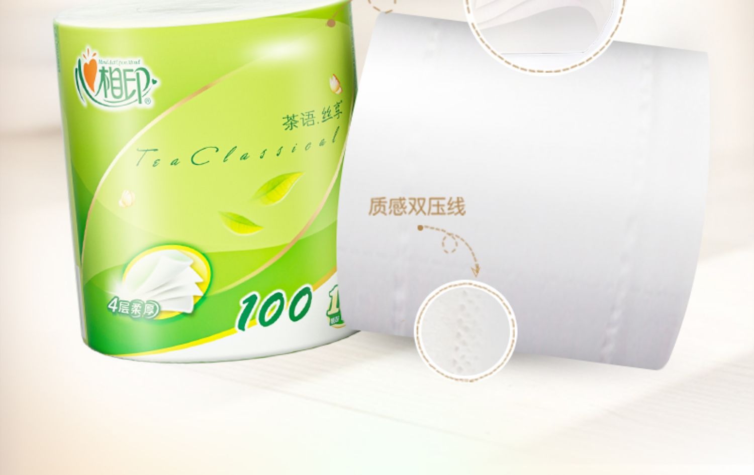 Heart-to-heart printing roll paper tea 100g four-layer toilet paper toilet paper For Home affordable
