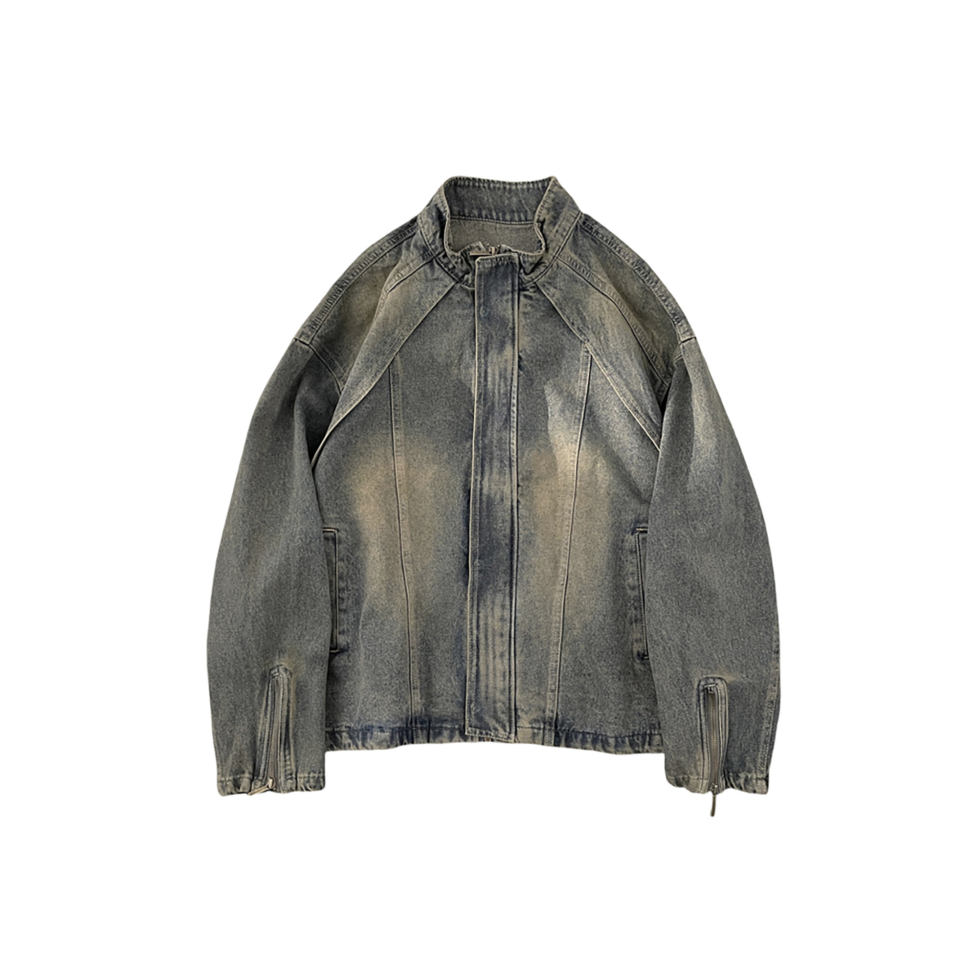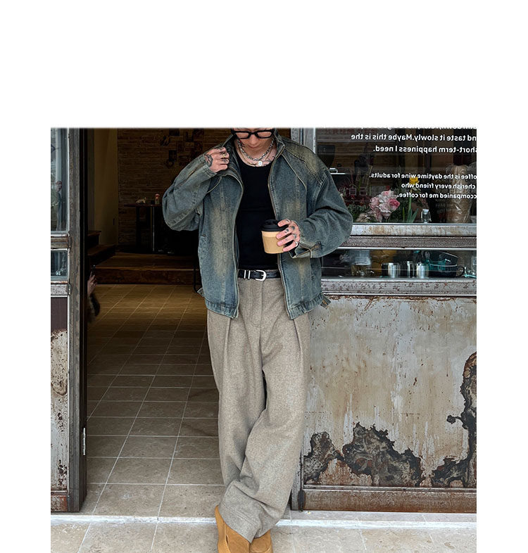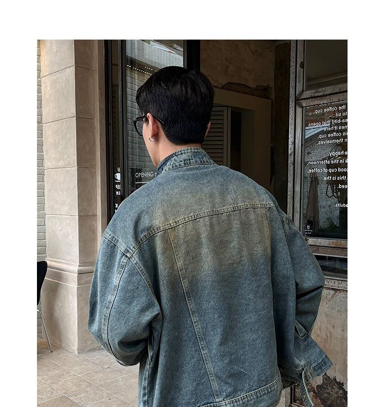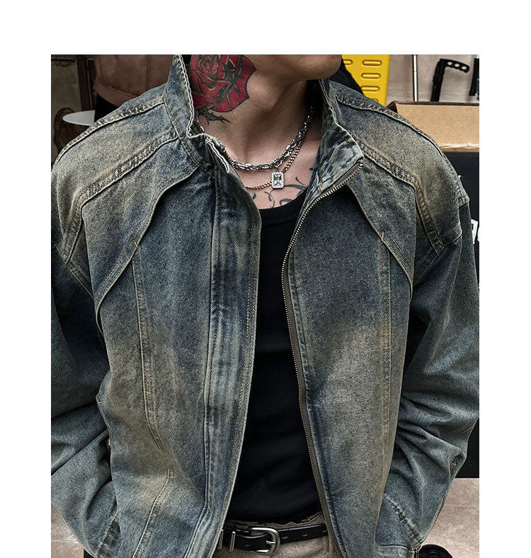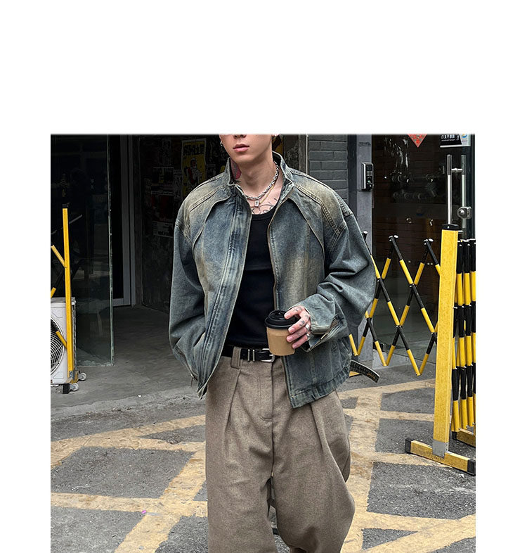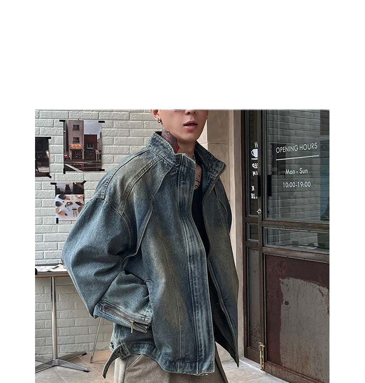 Heavy-Duty Deconstructed Patchwork Denim Jacket for Men, Loose Fit, Trendy Brand, High-End Feel, Cool and Handsome, American Retro Stand-Up Collar Jacket