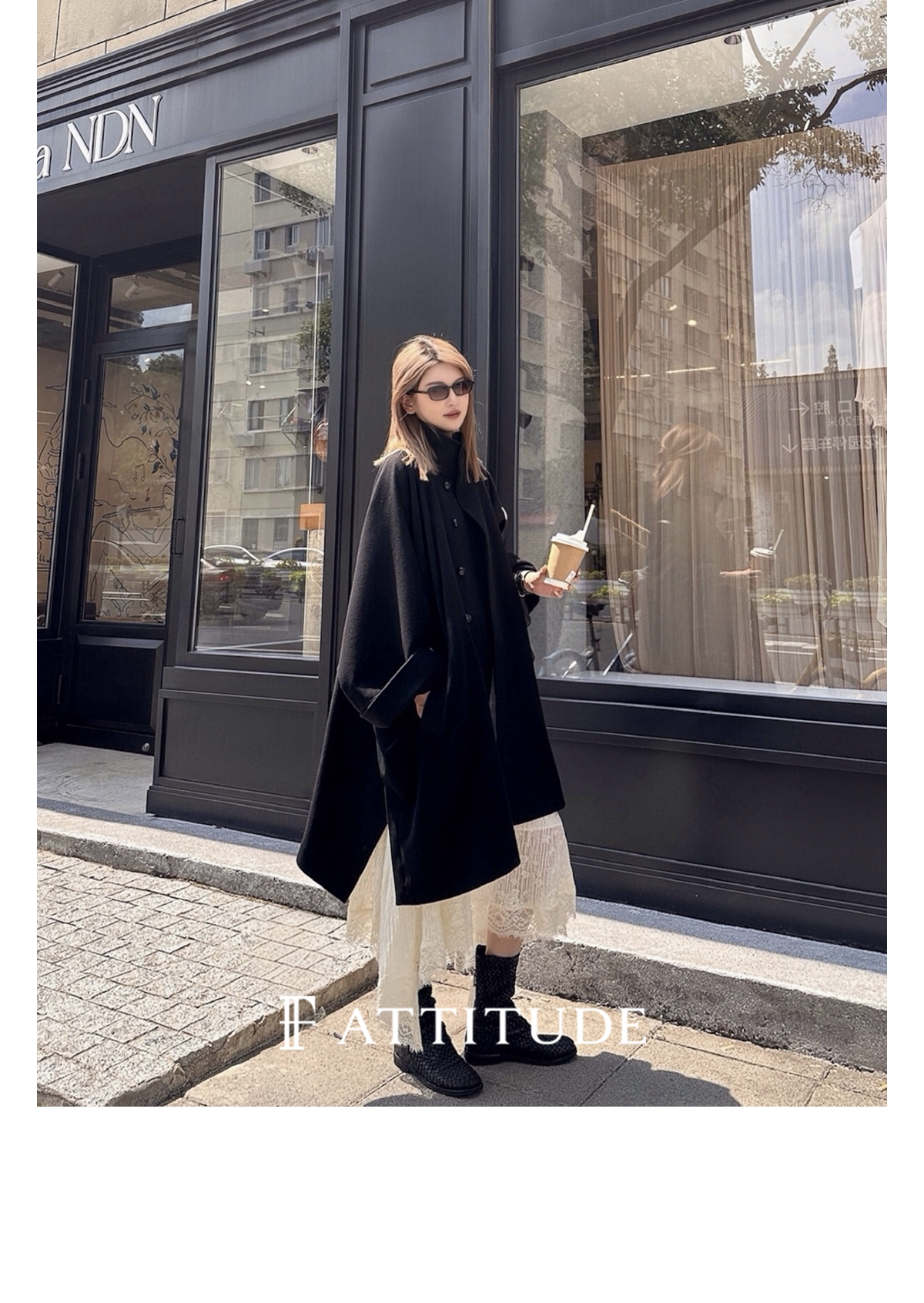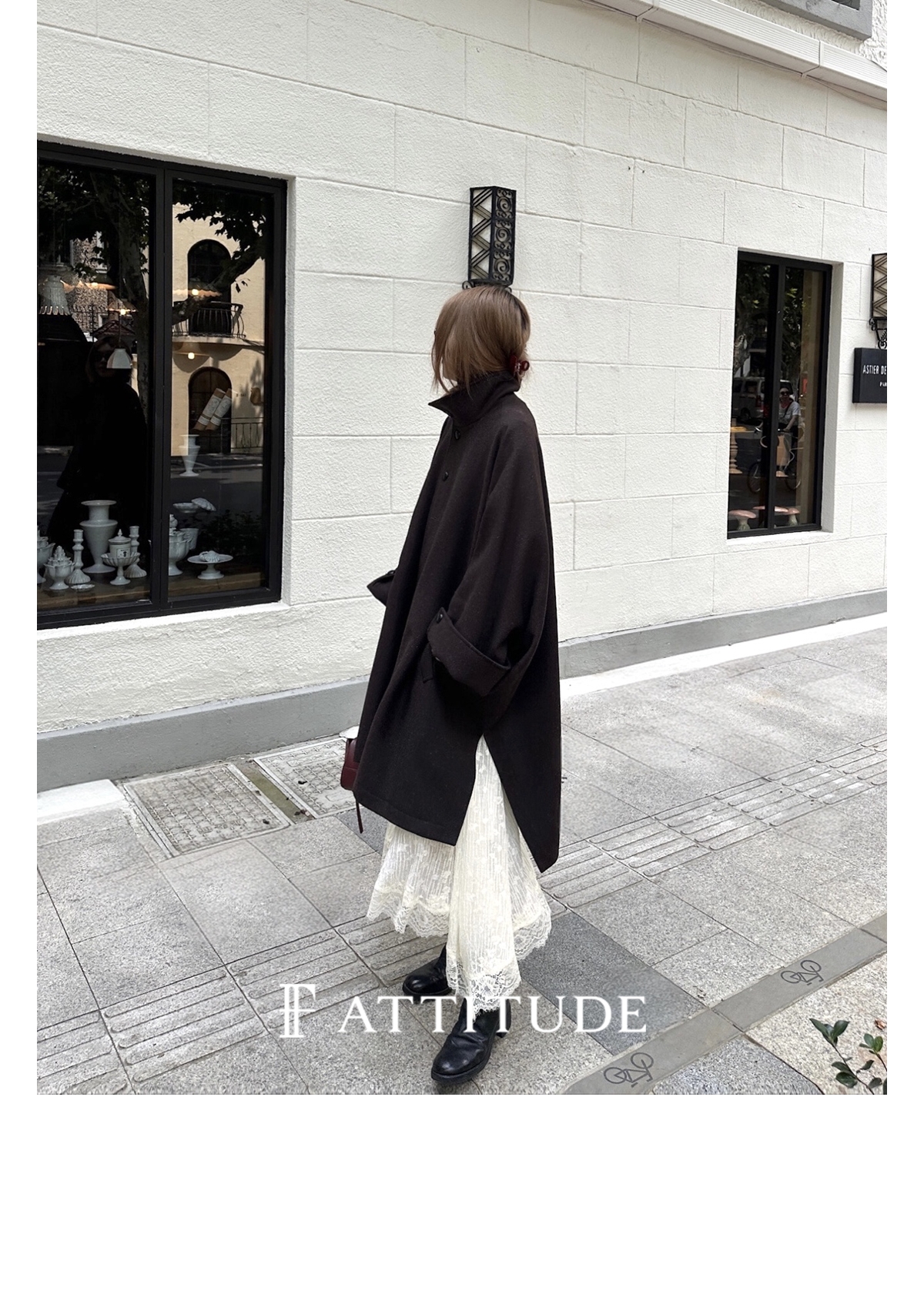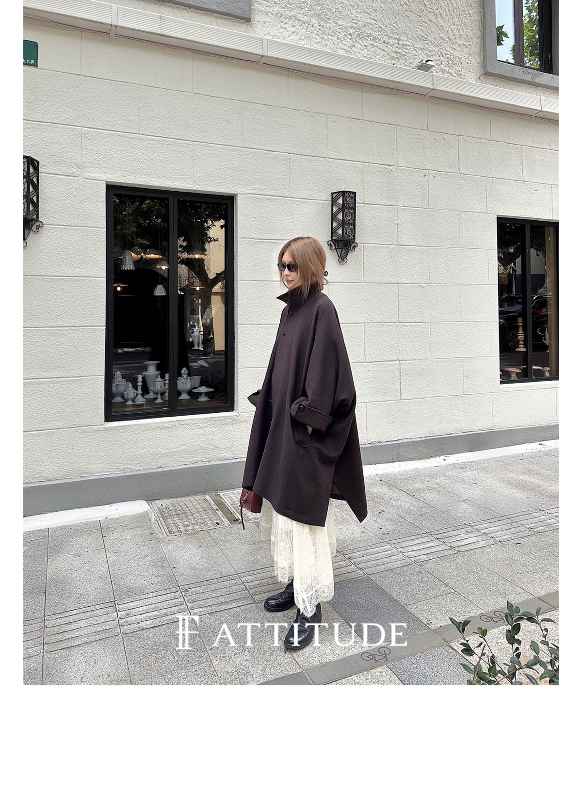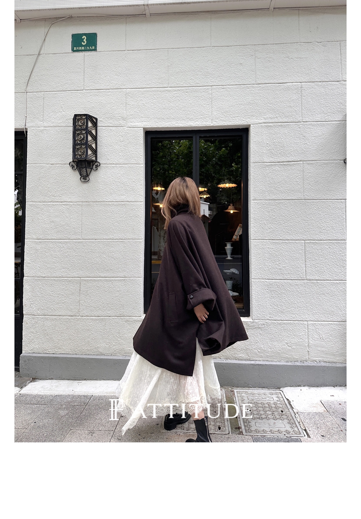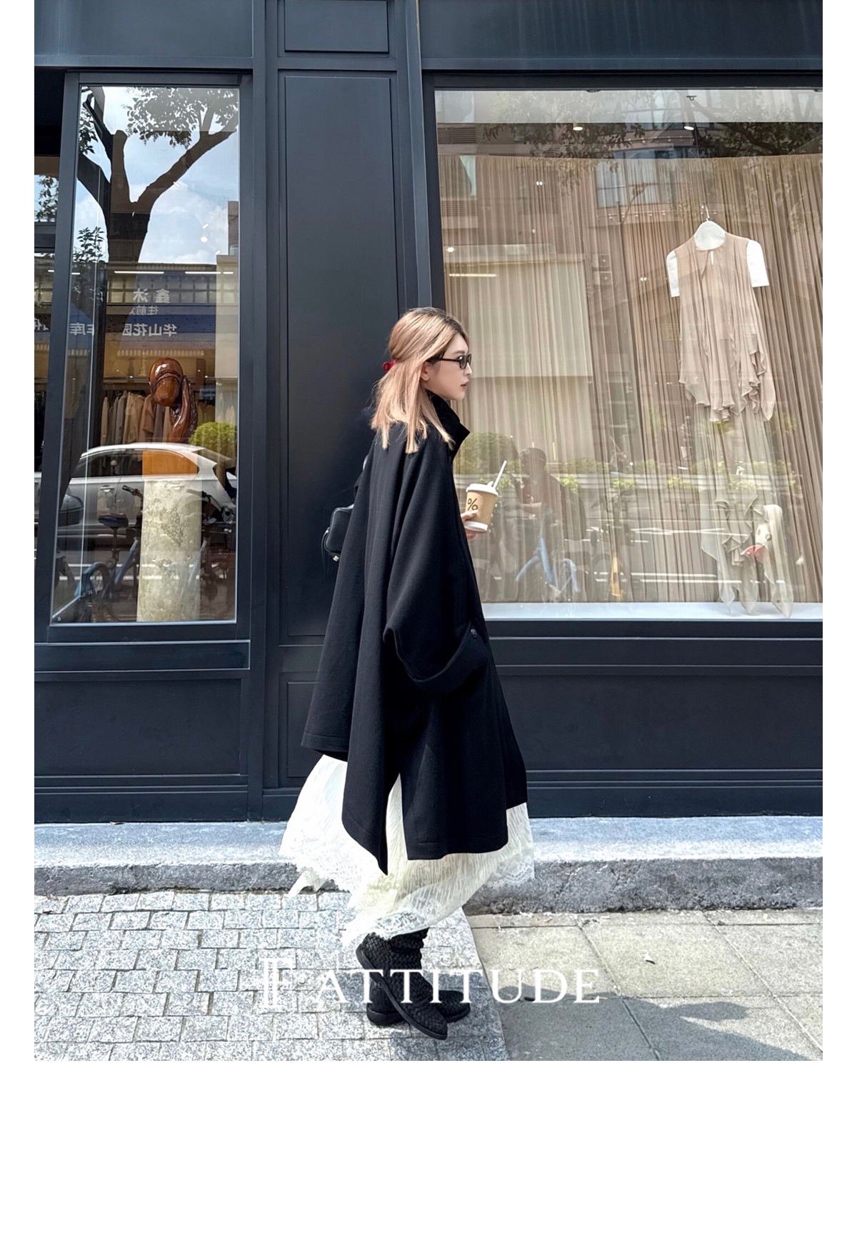 下摆自带廓形 区别于普通直筒版型大衣 侧面看也有型