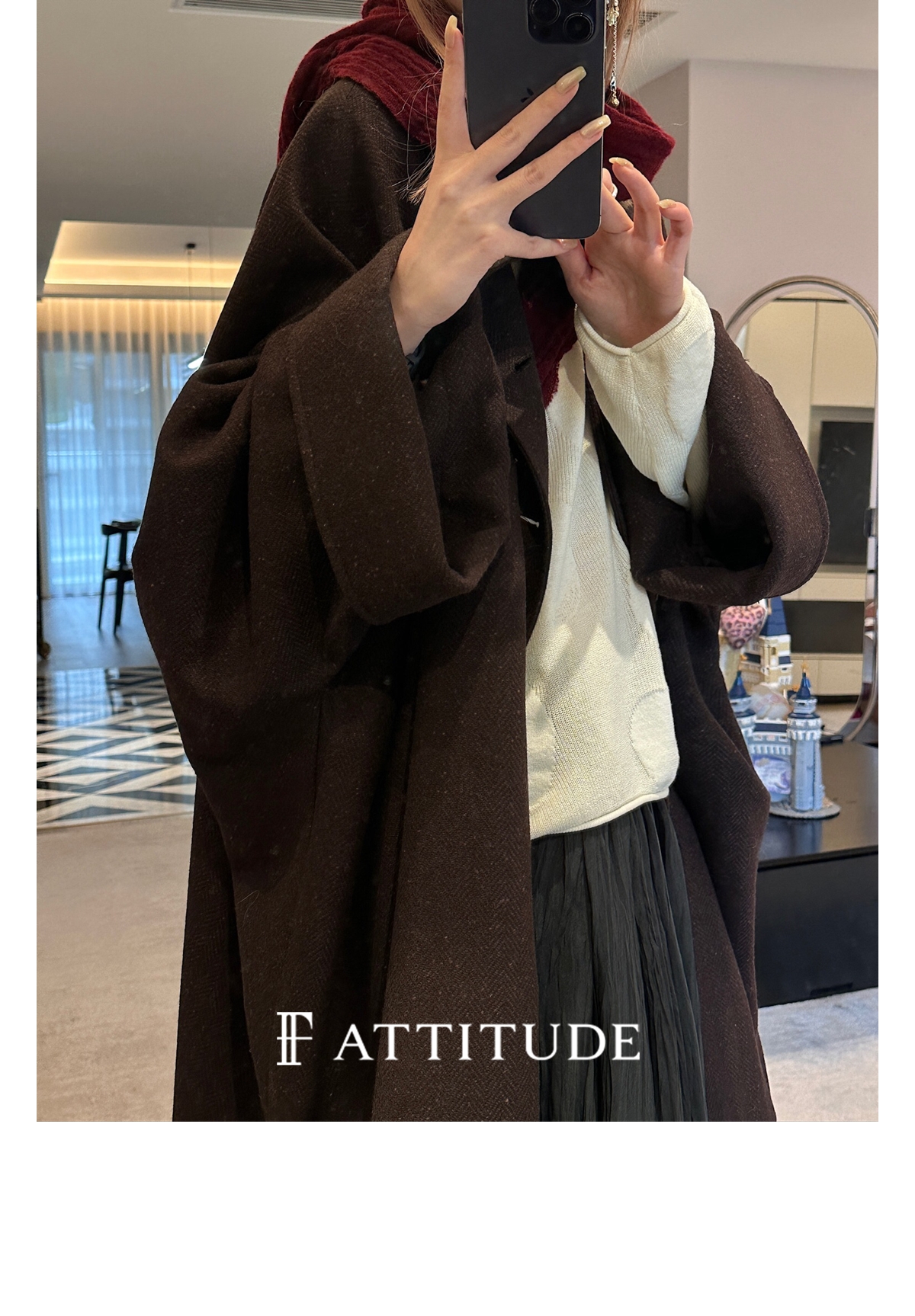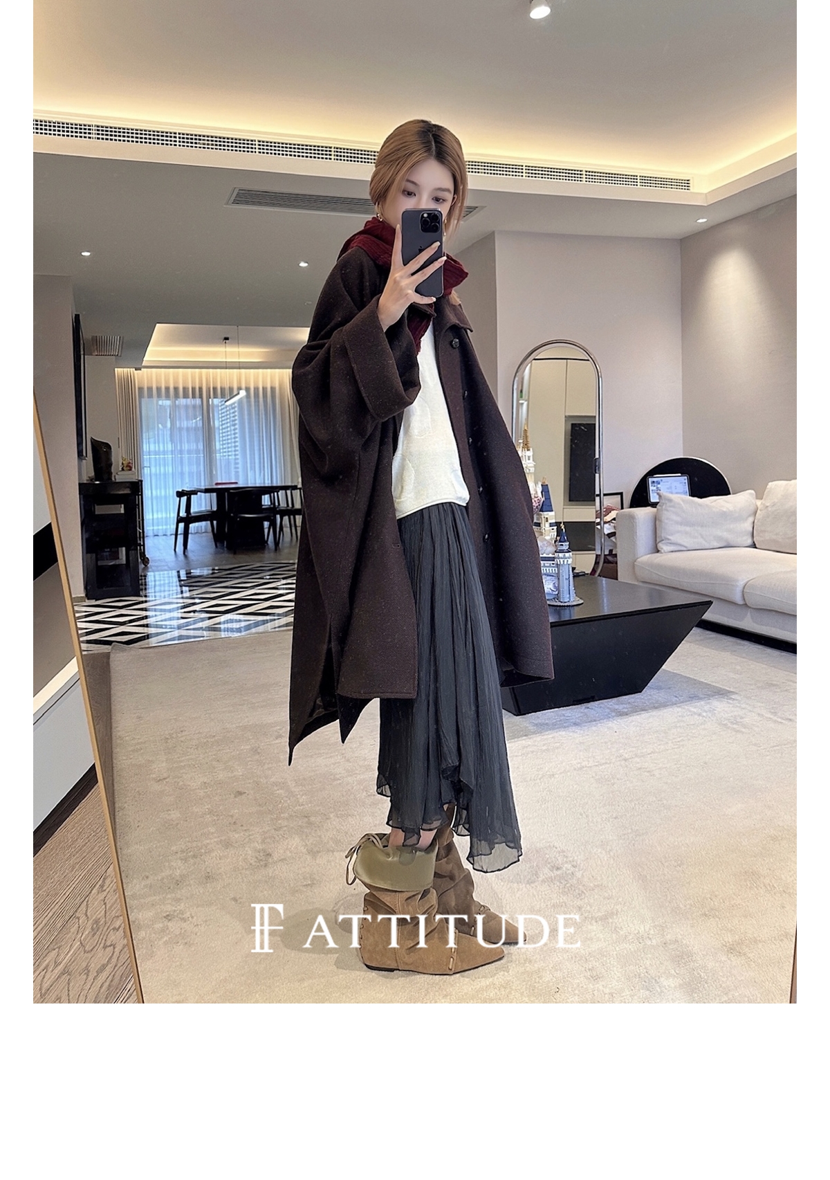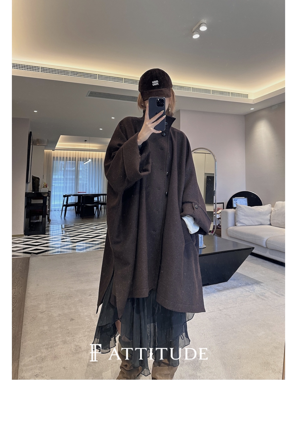 既不紧贴脖子 又不会显得过于张扬 丸美展现大衣的时尚感