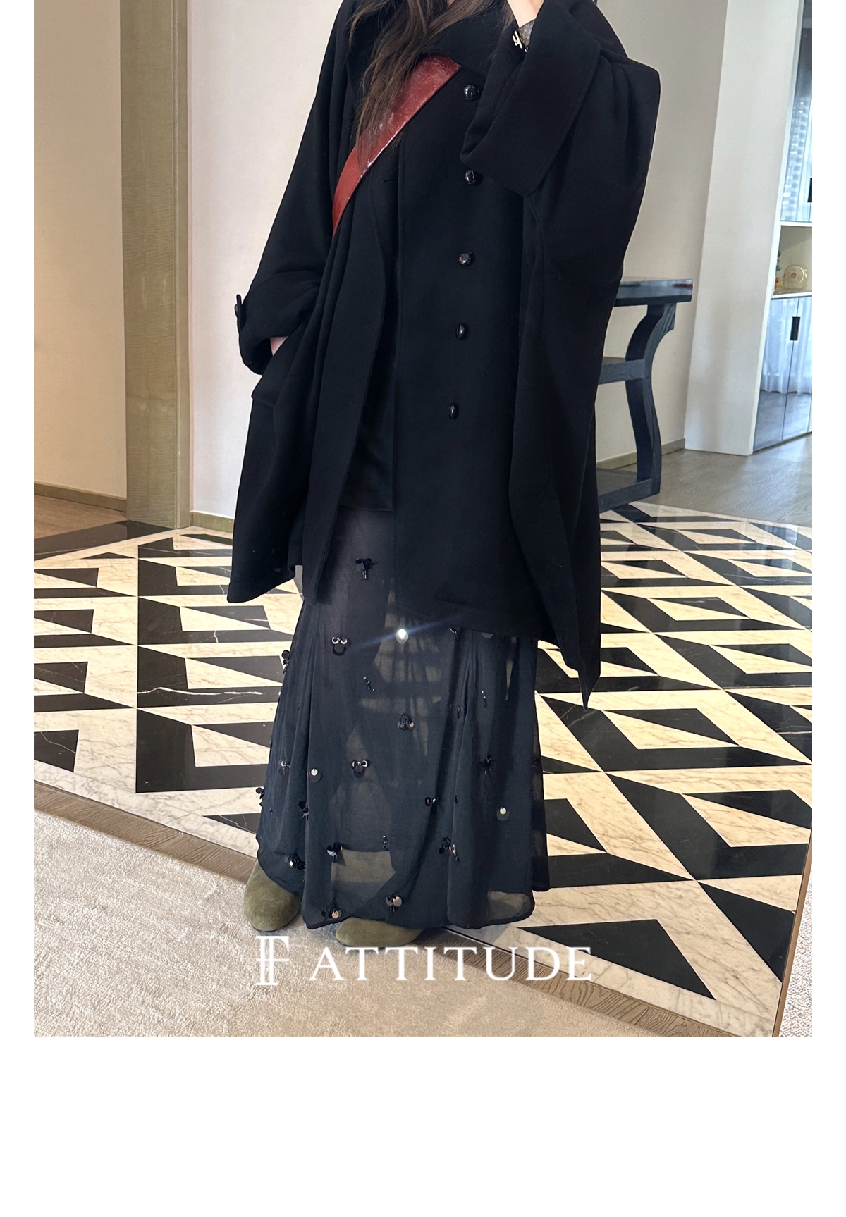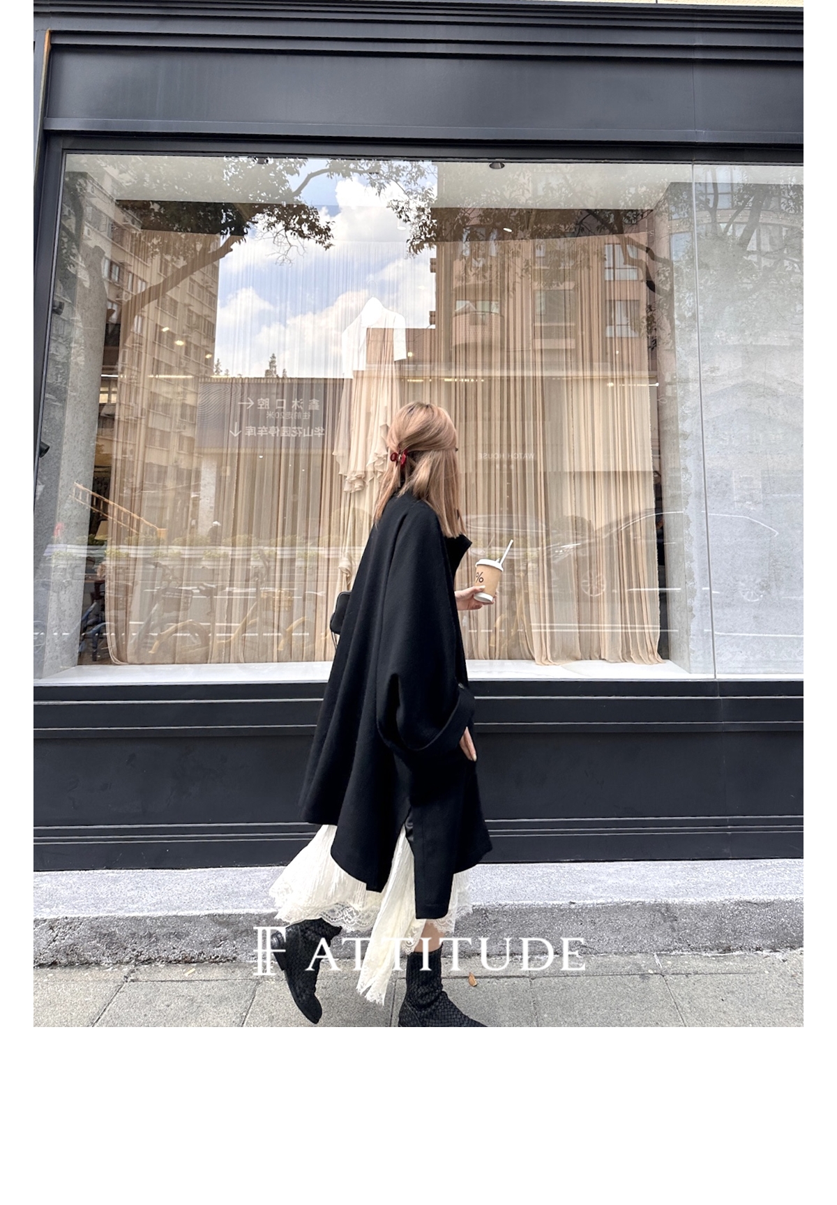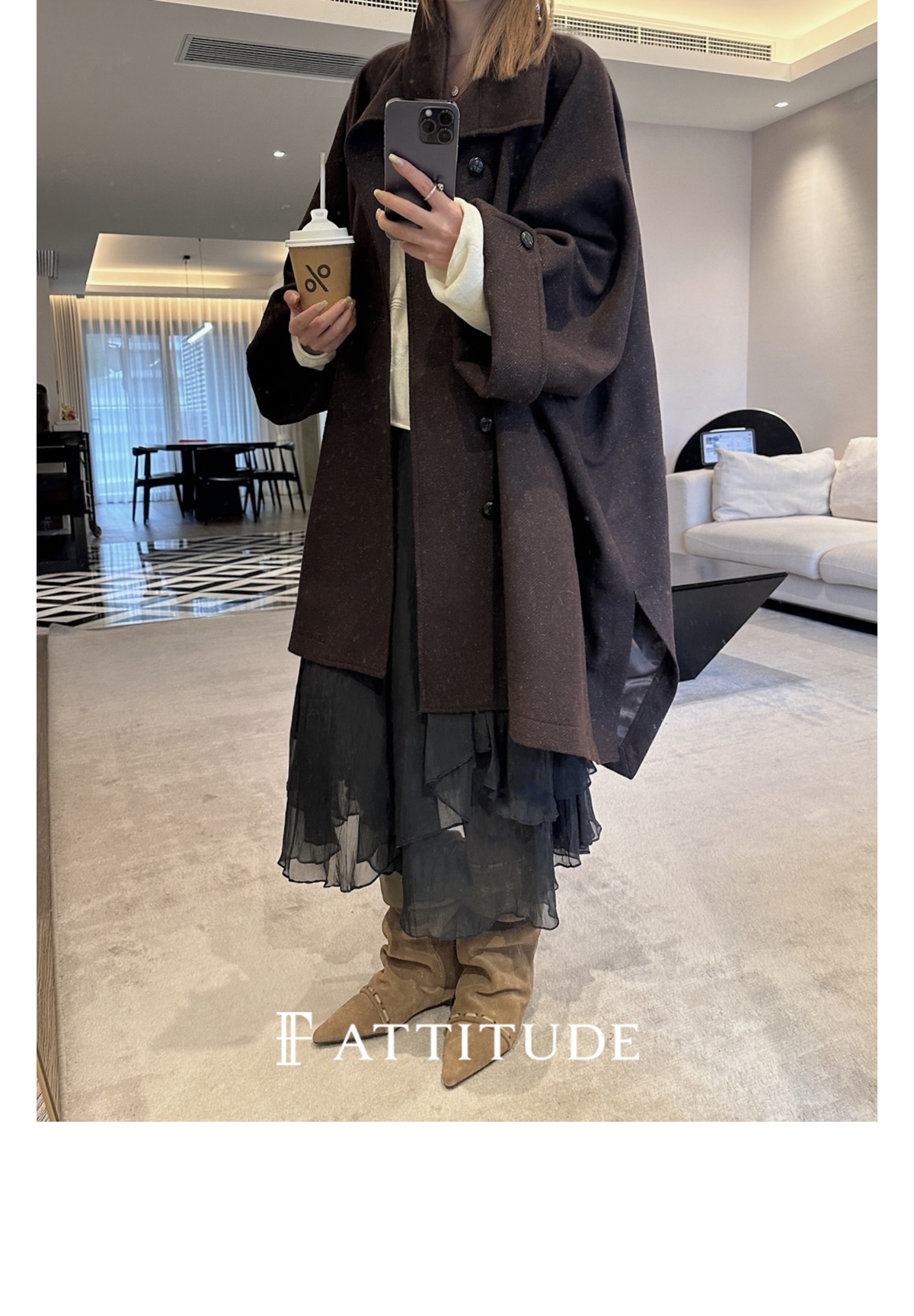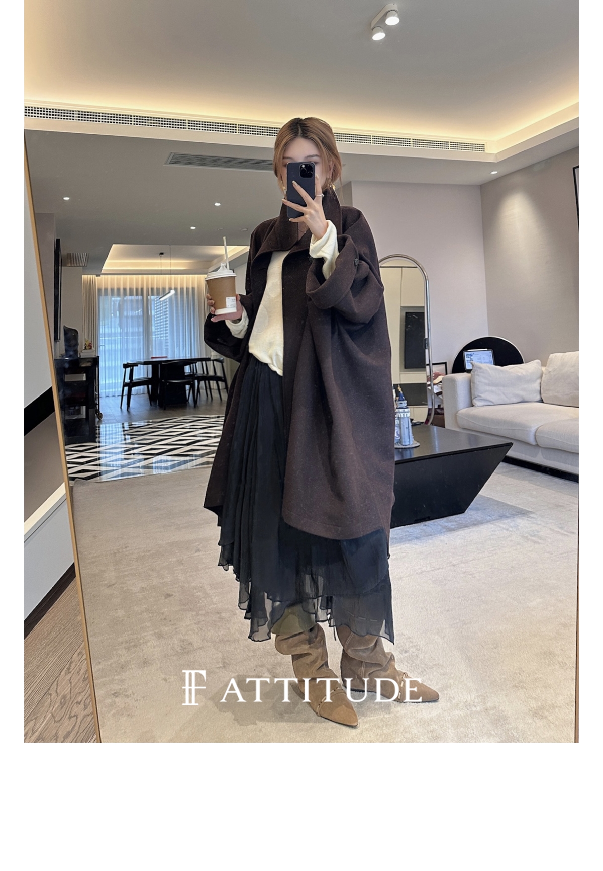 既不紧贴脖子 又不会显得过于张扬 丸美展现大衣的时尚感