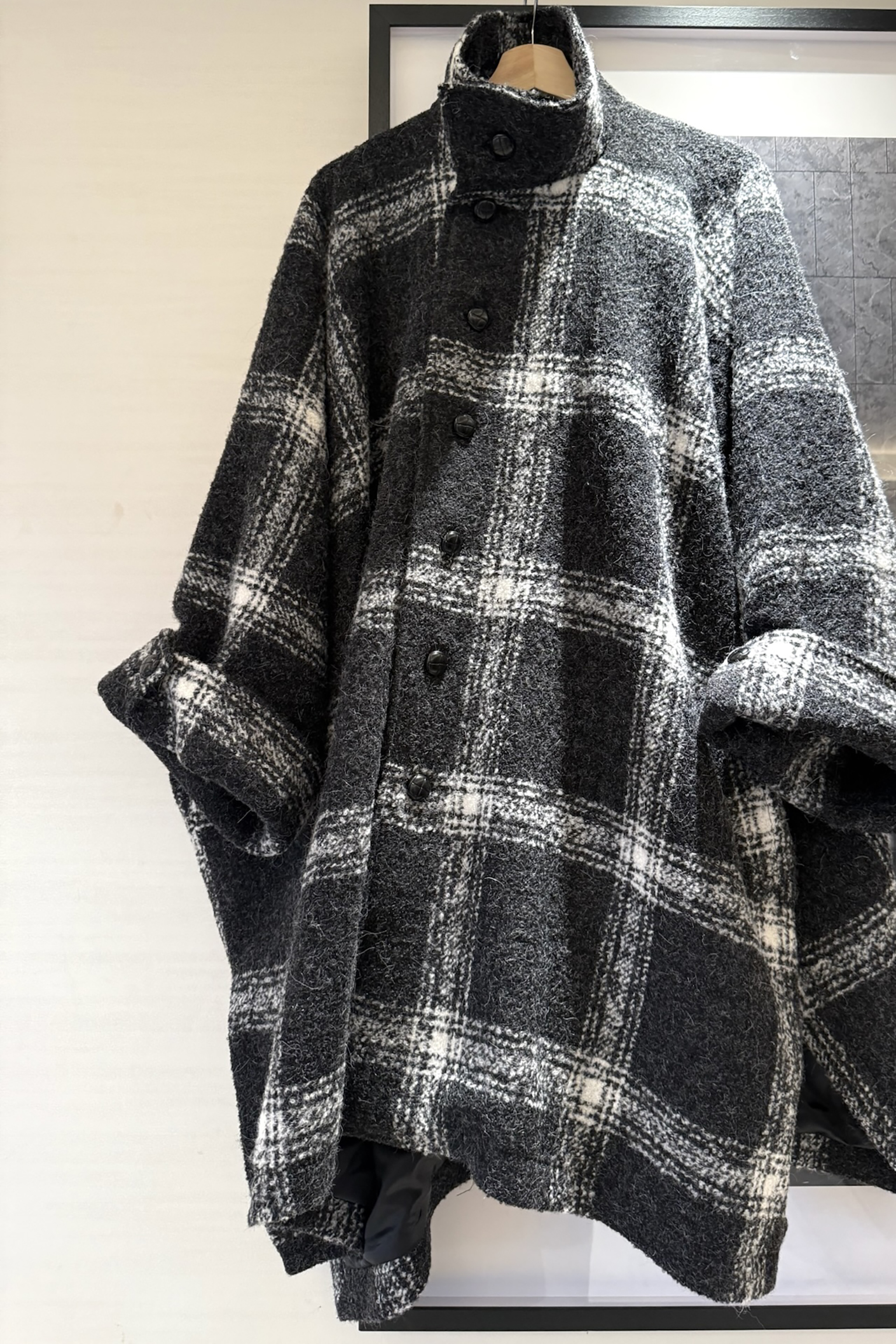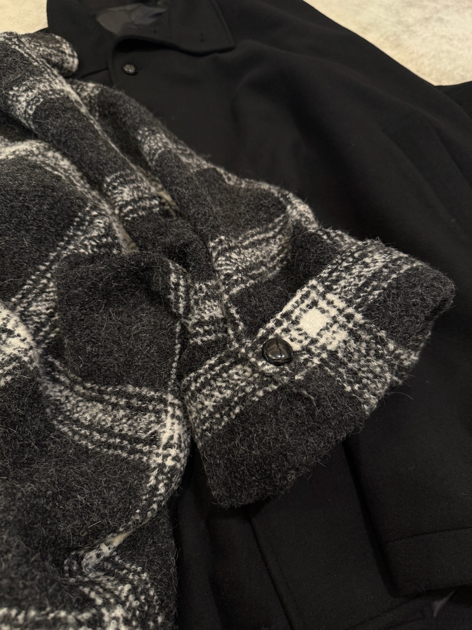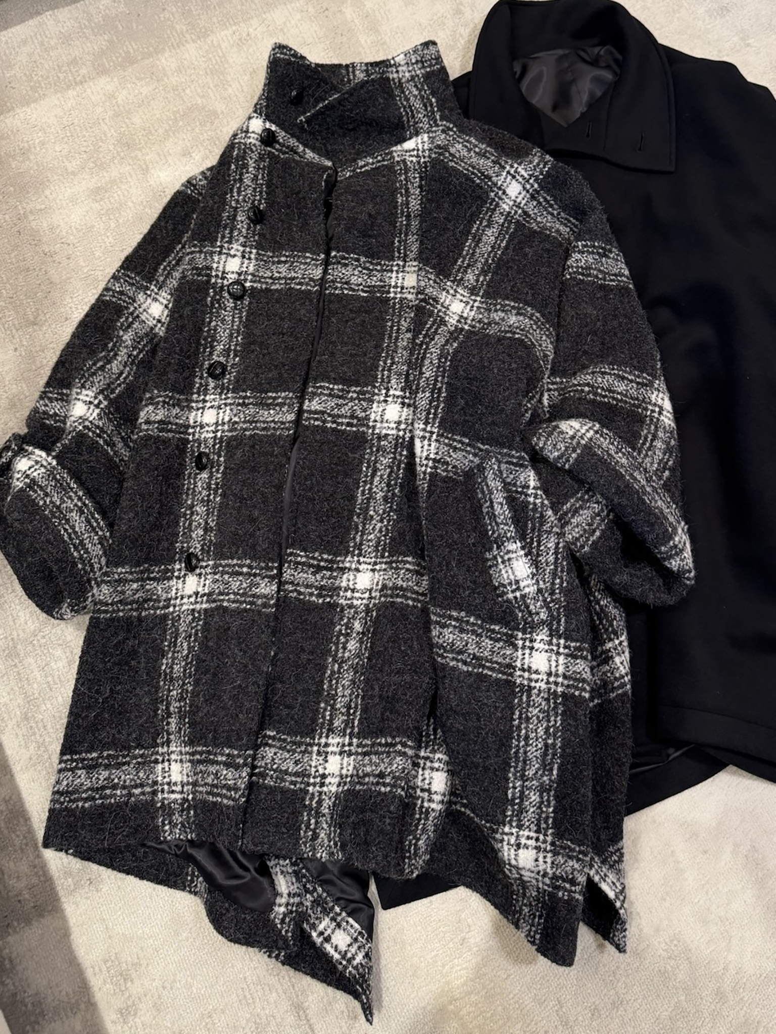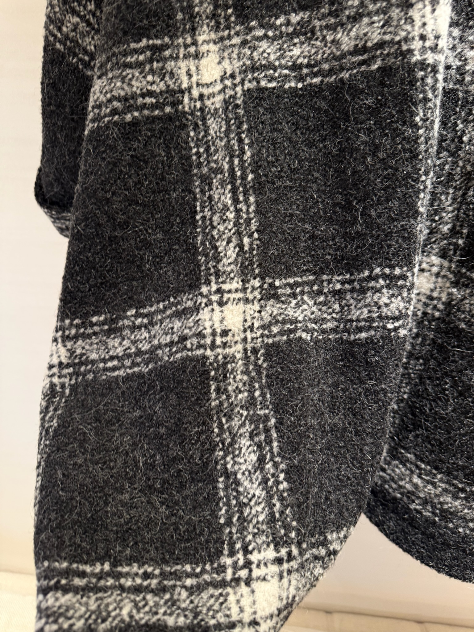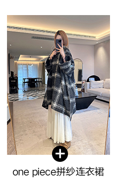 黑白维希模糊格 72%羊毛10%羊驼粗纺尼 也是今冬蕞流行的拉绒风格