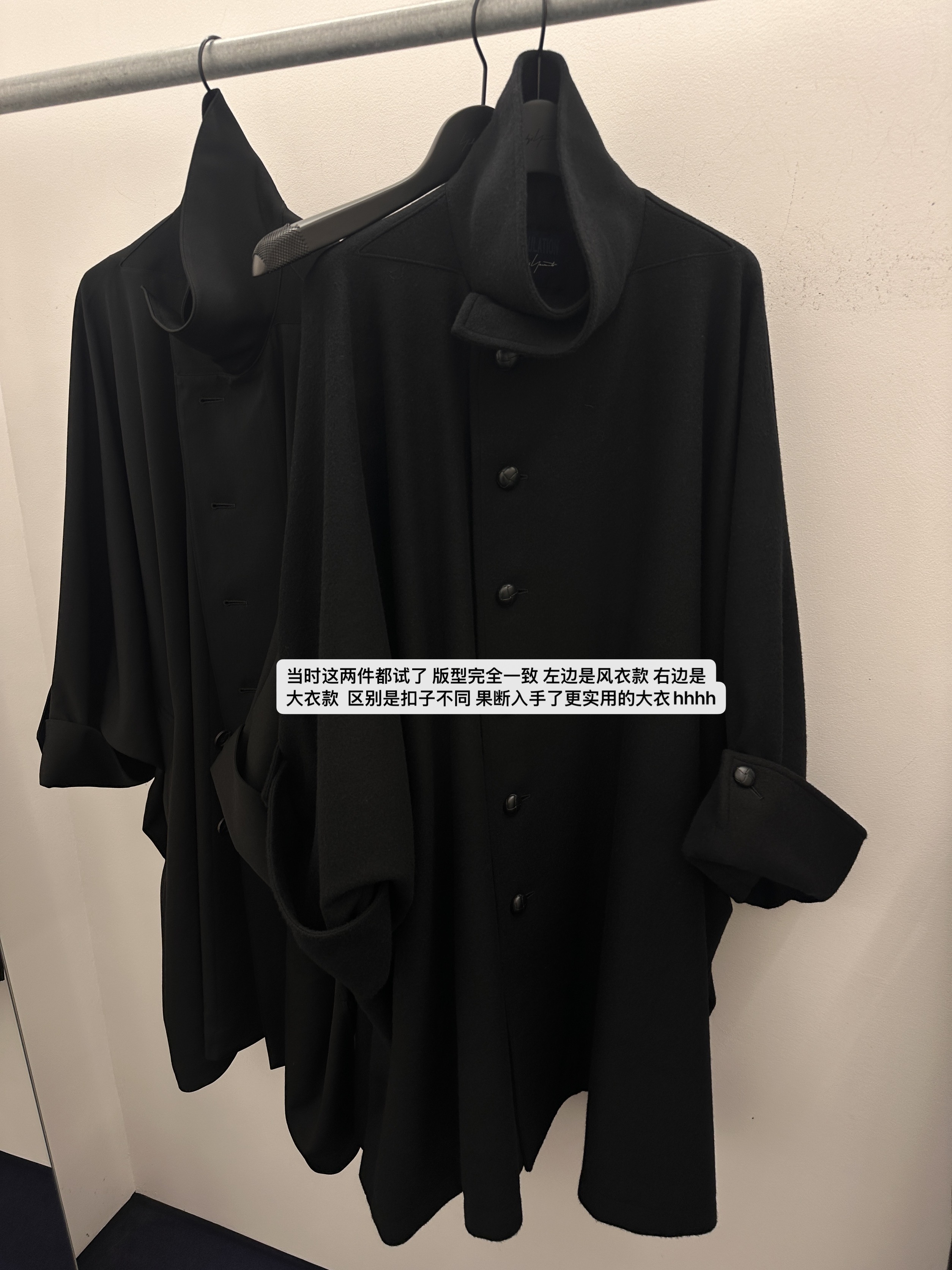 这个版型山本也是用了多种面料做成衣的 风衣和大衣同享一个斗篷版