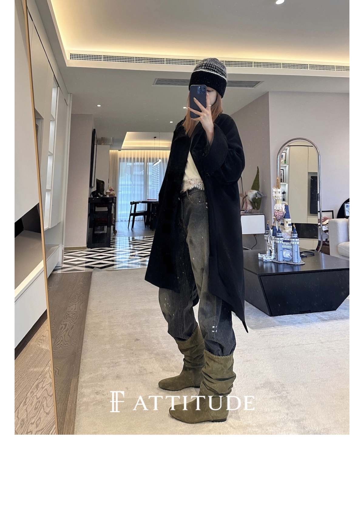 模糊格选用了初剪的阿尔巴卡羊驼毛与美丽诺羊毛的混纺面料