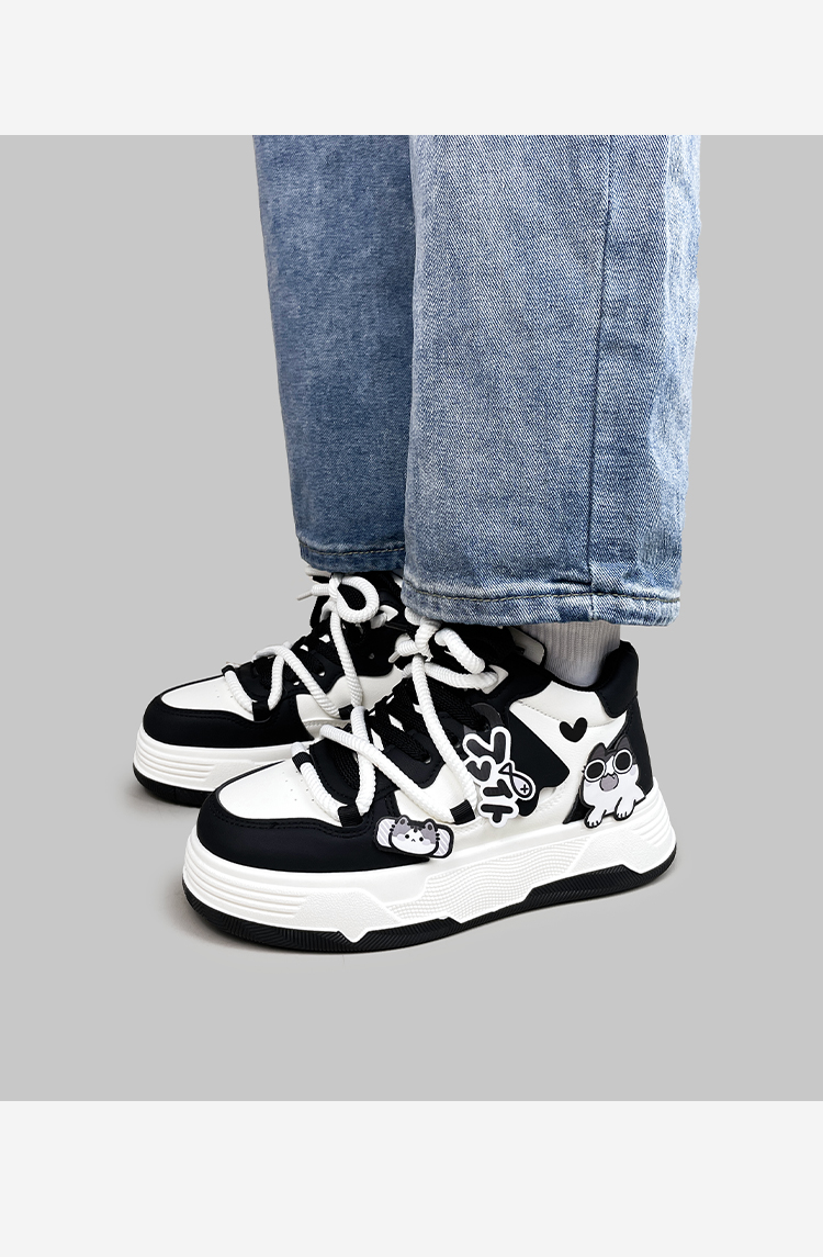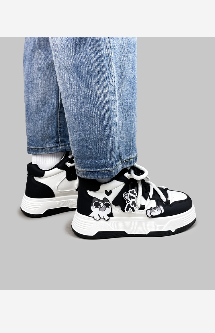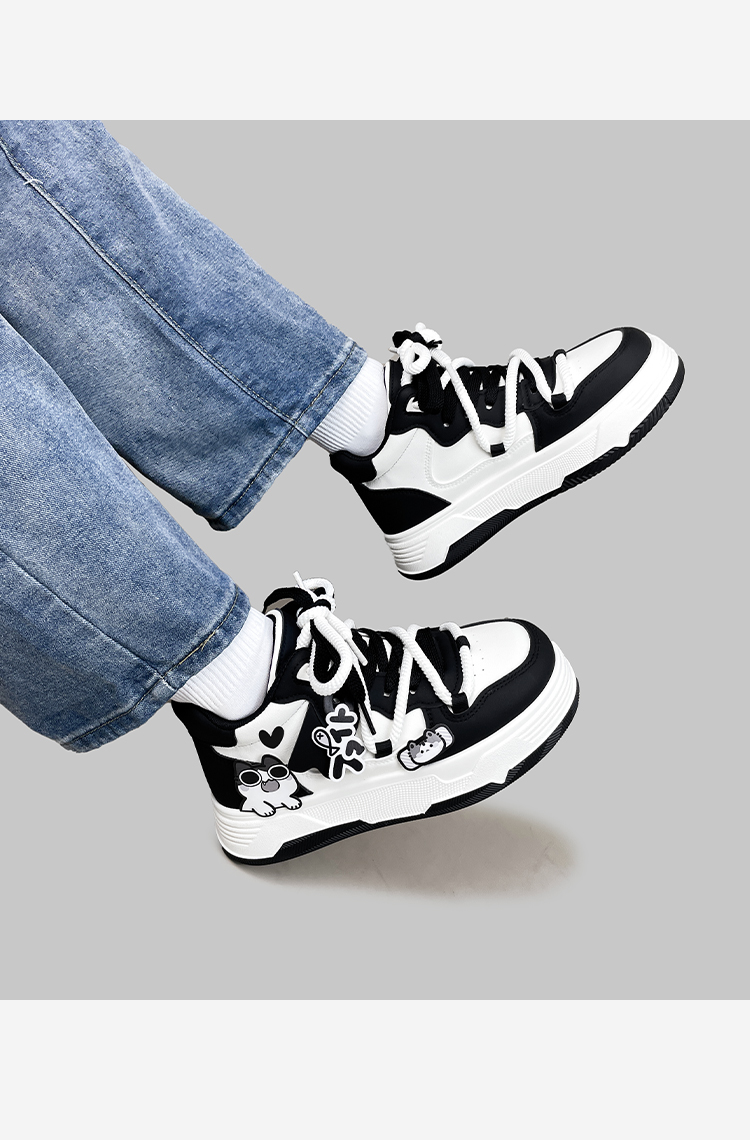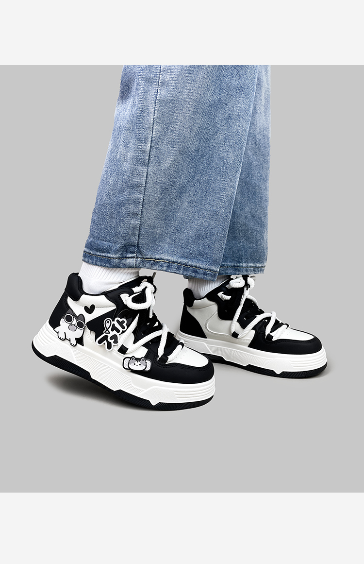 Amy and Mai's New Autumn High-Top Sneakers for Girls, Versatile and Cute, with Fleece Lining for Middle School Students