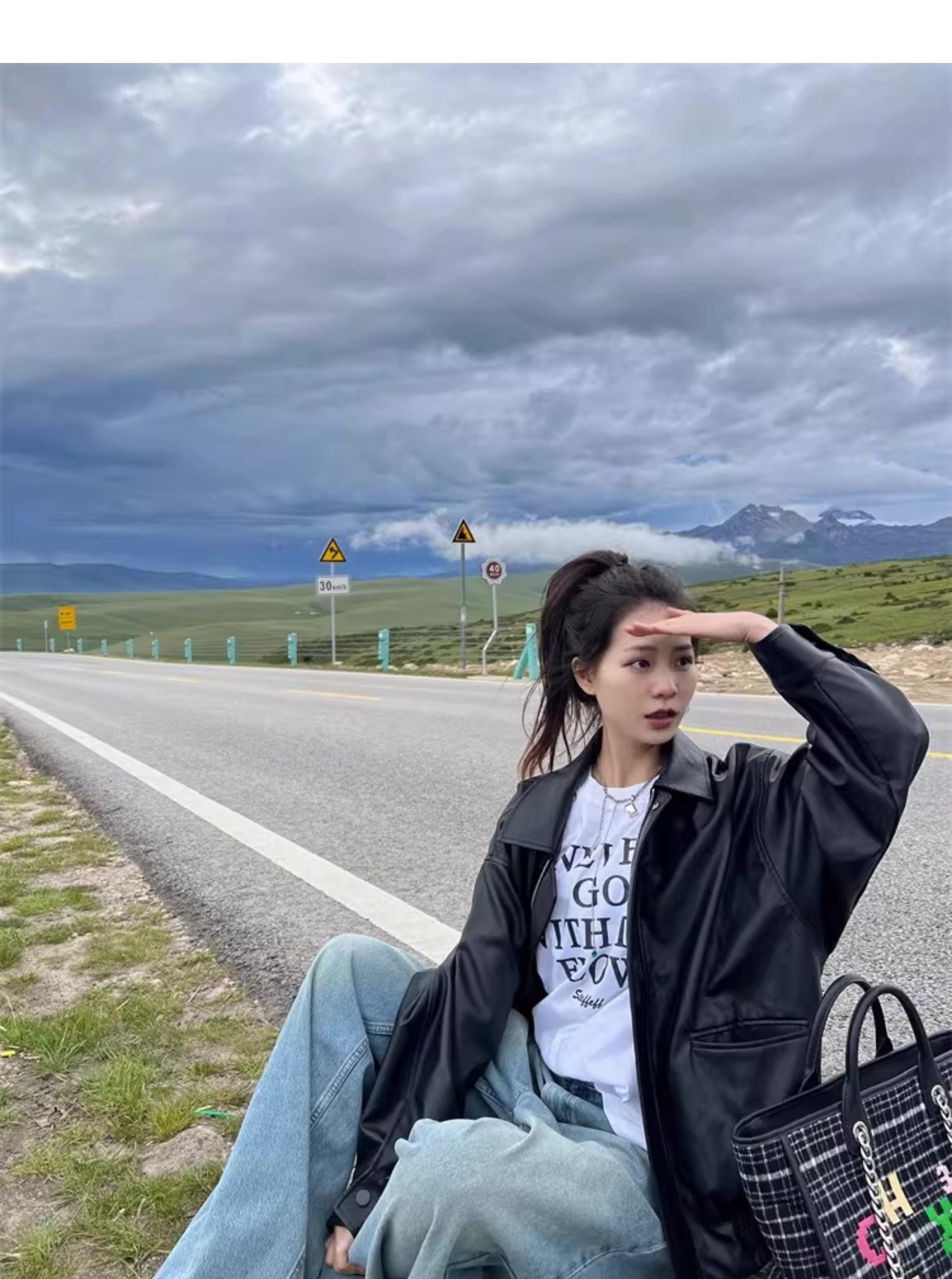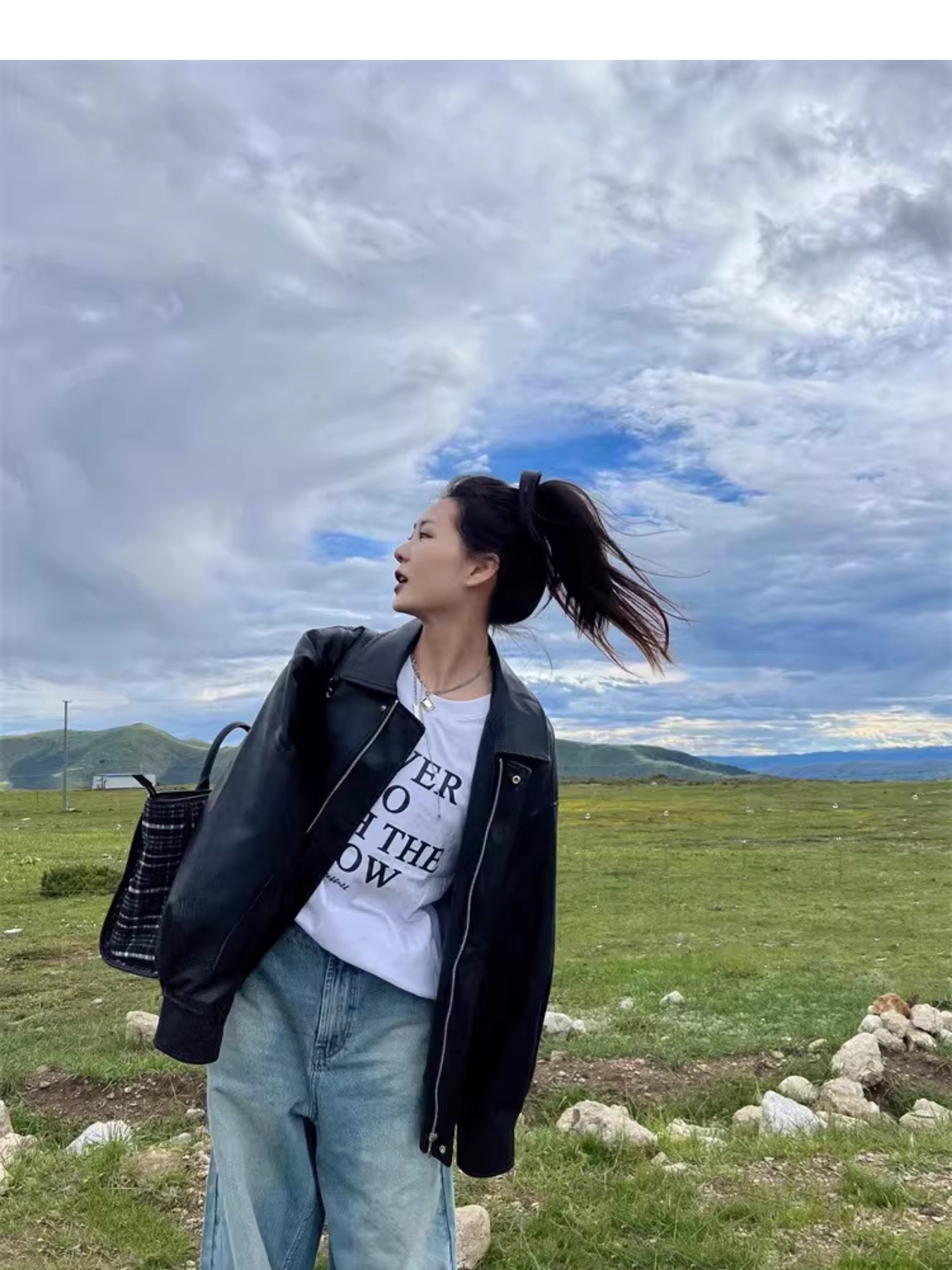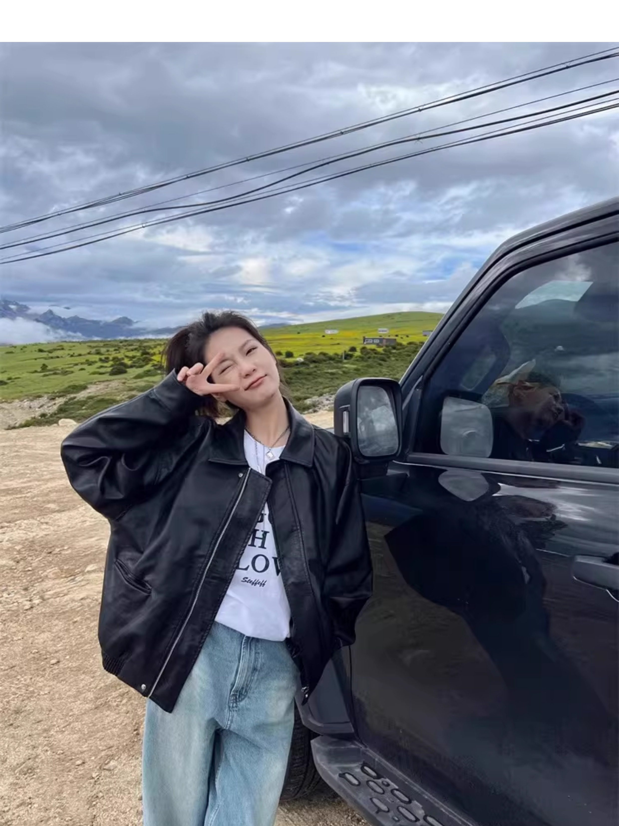 Women's Leather Jacket 2025 New Autumn and Winter High-End Style Petite Fleece-Lined Thickened Biker Leather Jacket Top