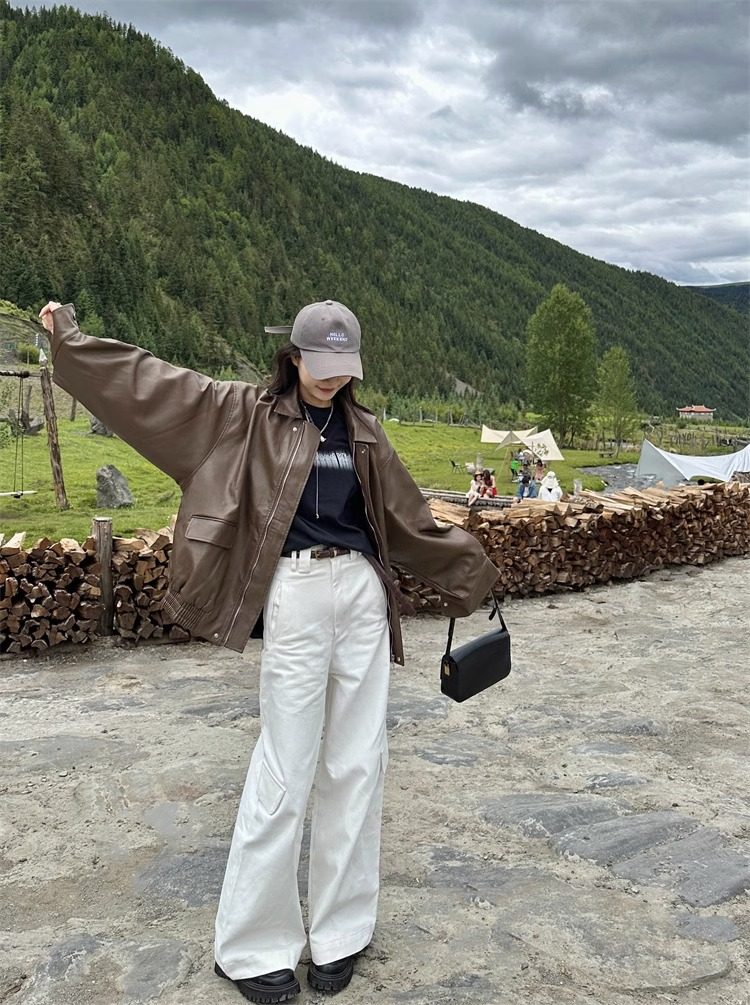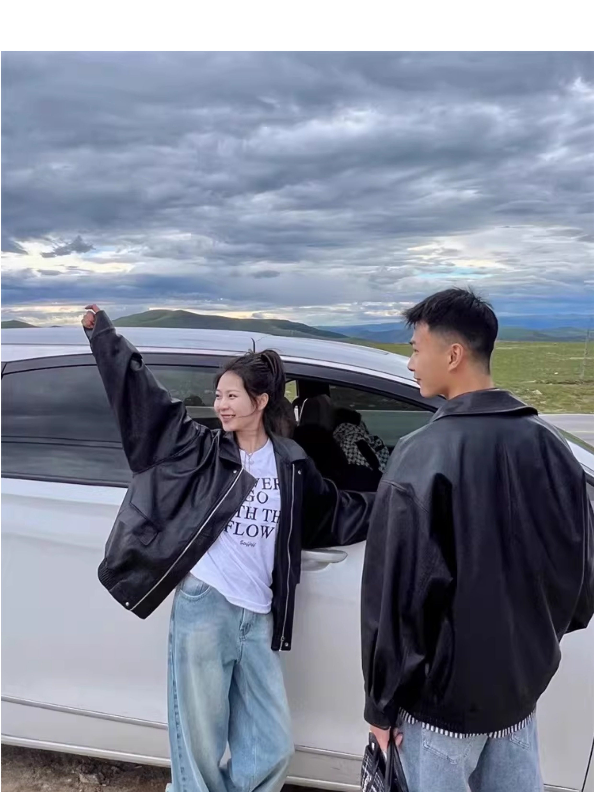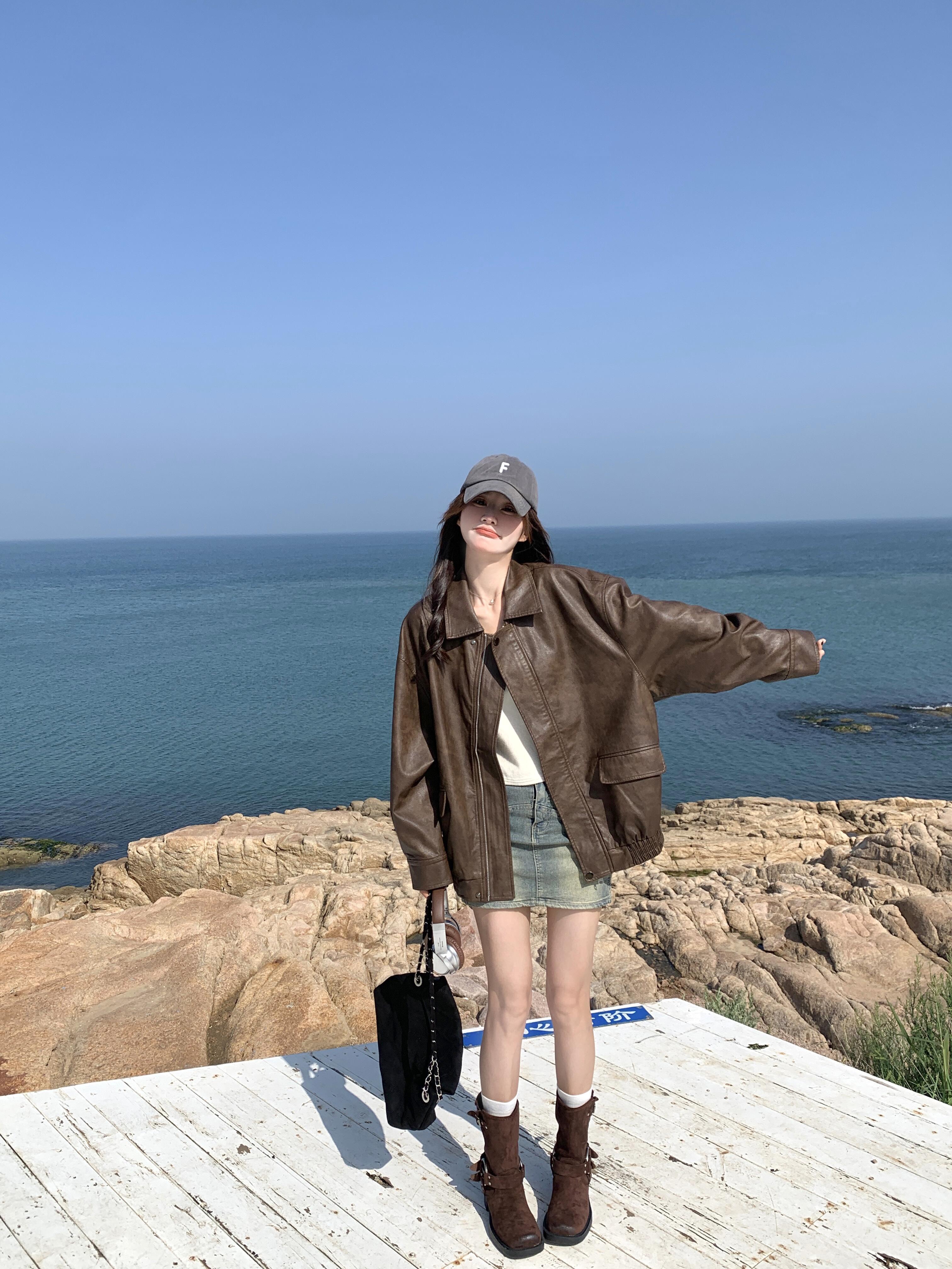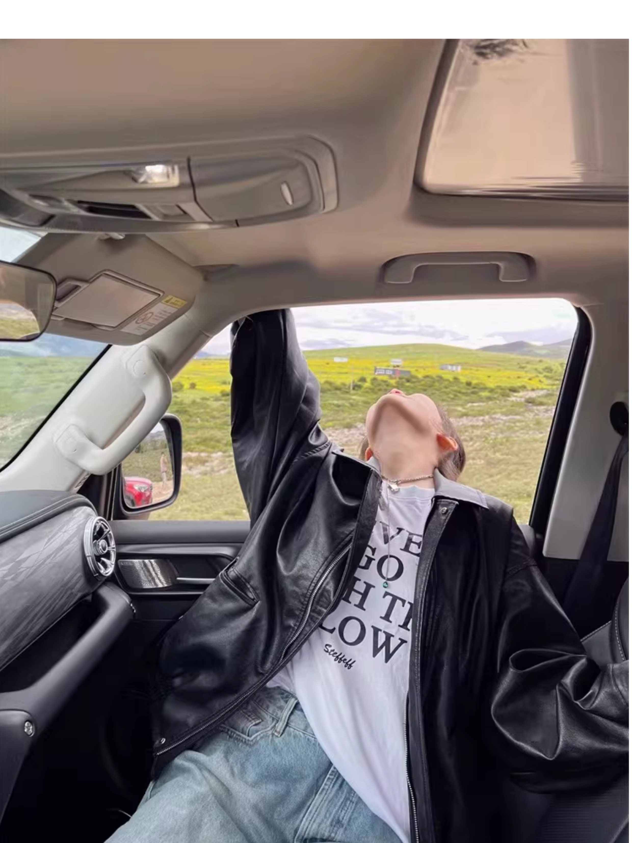 Women's Leather Jacket 2025 New Autumn and Winter High-End Style Petite Fleece-Lined Thickened Biker Leather Jacket Top