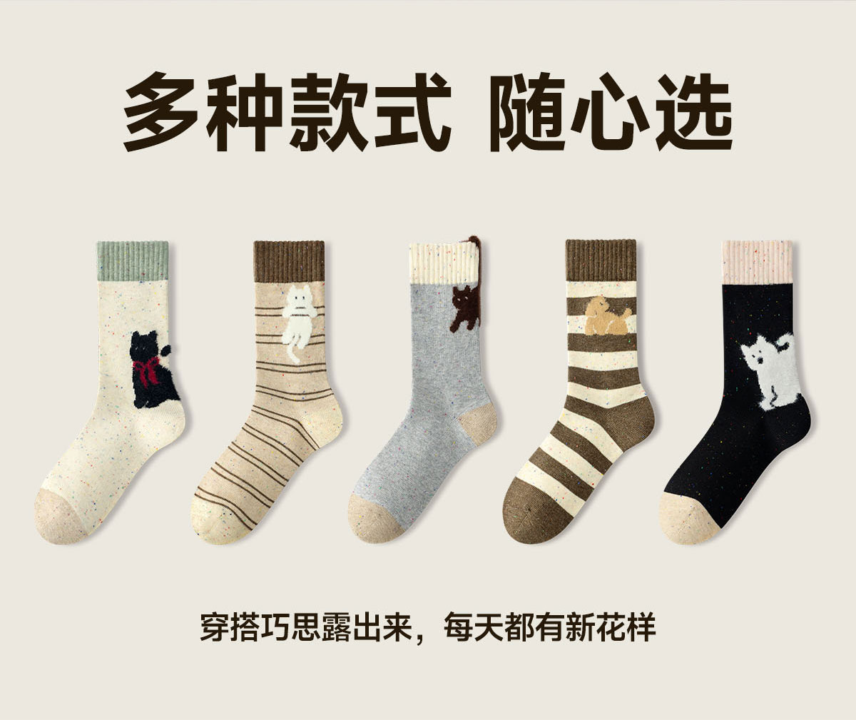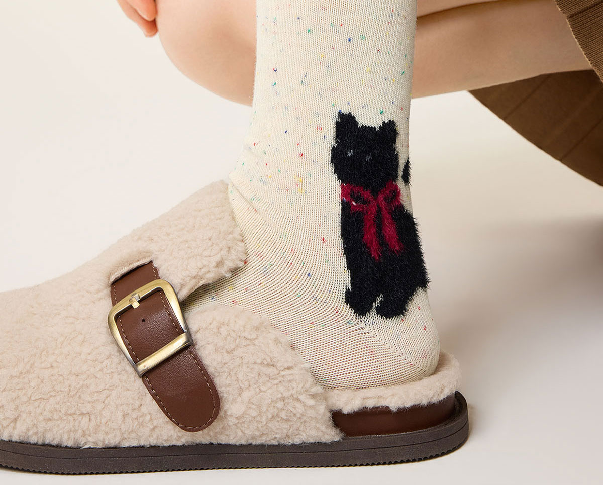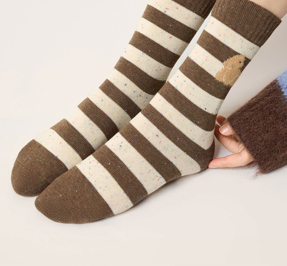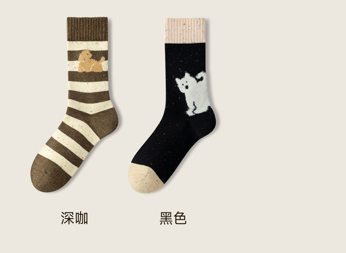 Striped Socks for Women, Cute Cartoon Mid-Calf Socks, Autumn and Winter Retro Melard Style, Winter Deodorant Seamless Cotton Socks