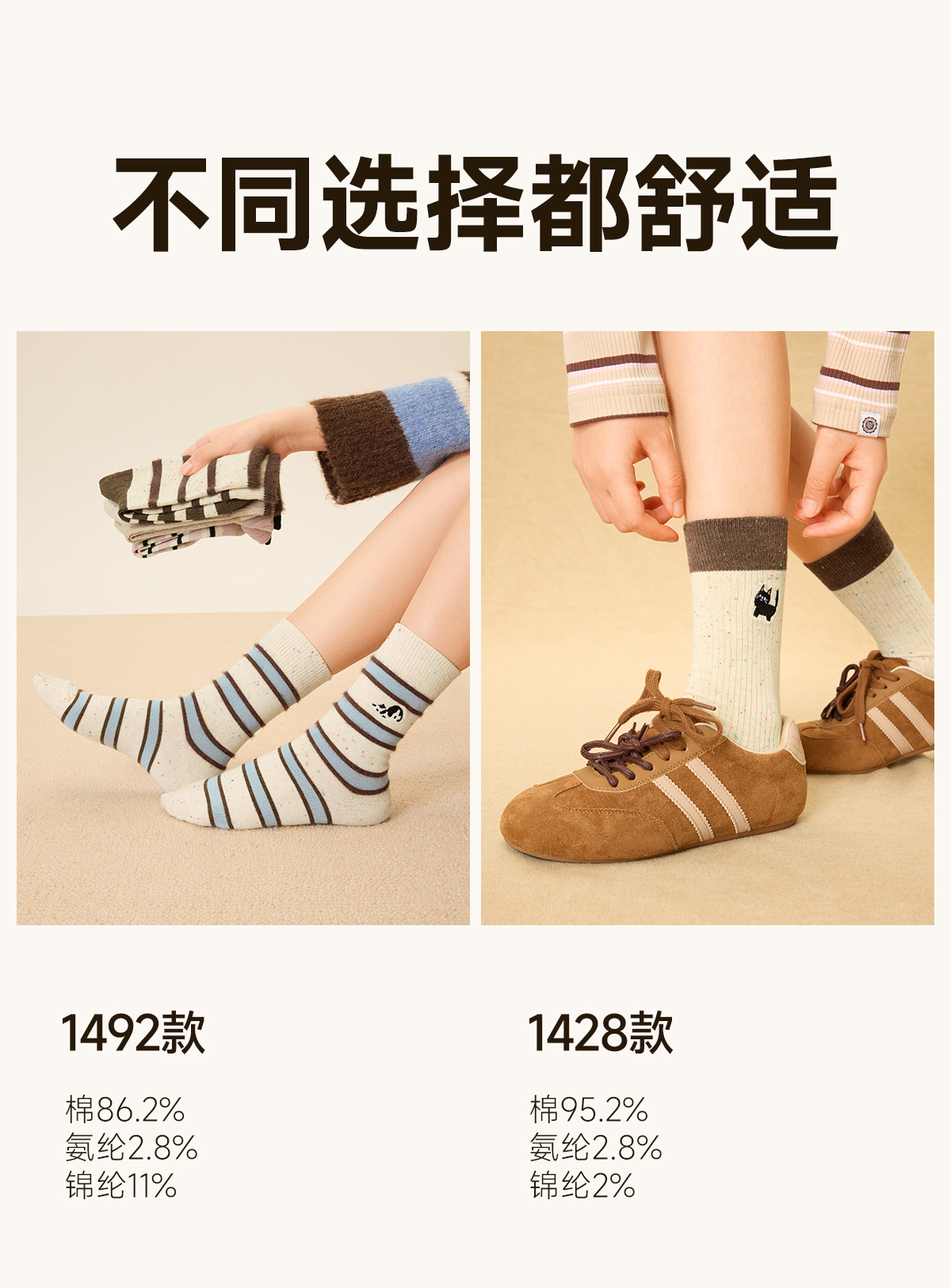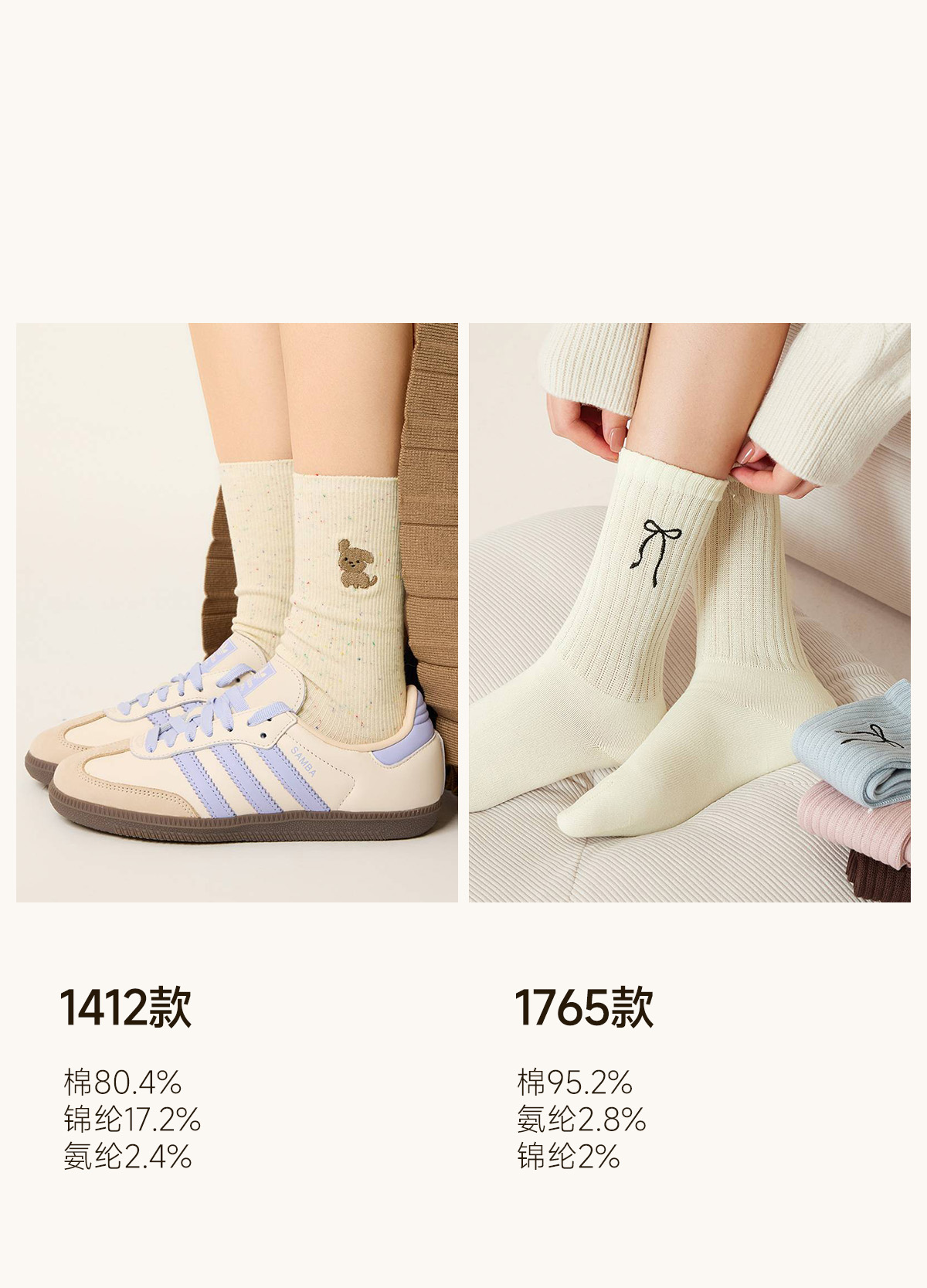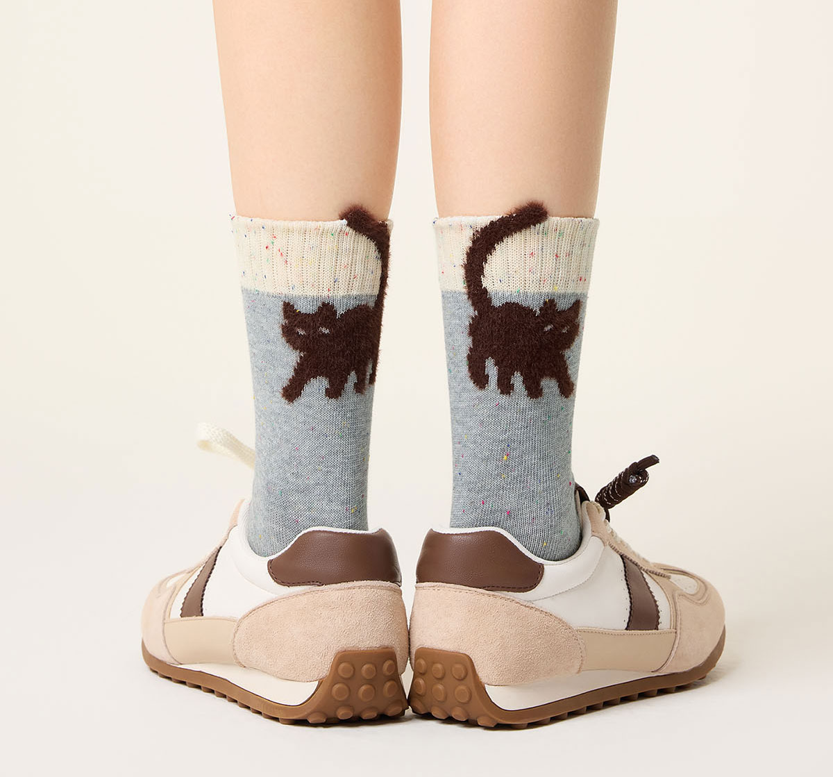 Striped Socks for Women, Cute Cartoon Mid-Calf Socks, Autumn and Winter Retro Melard Style, Winter Deodorant Seamless Cotton Socks