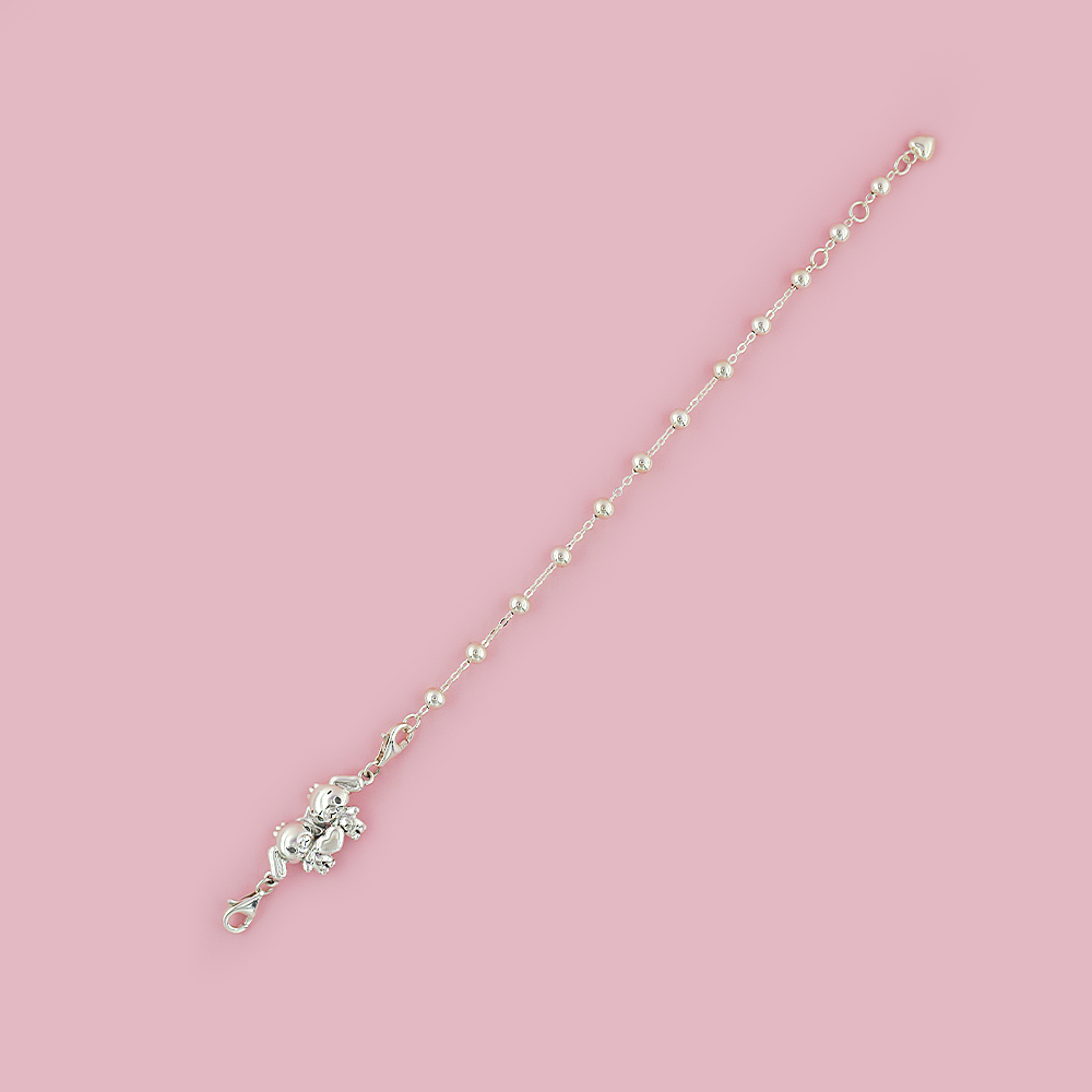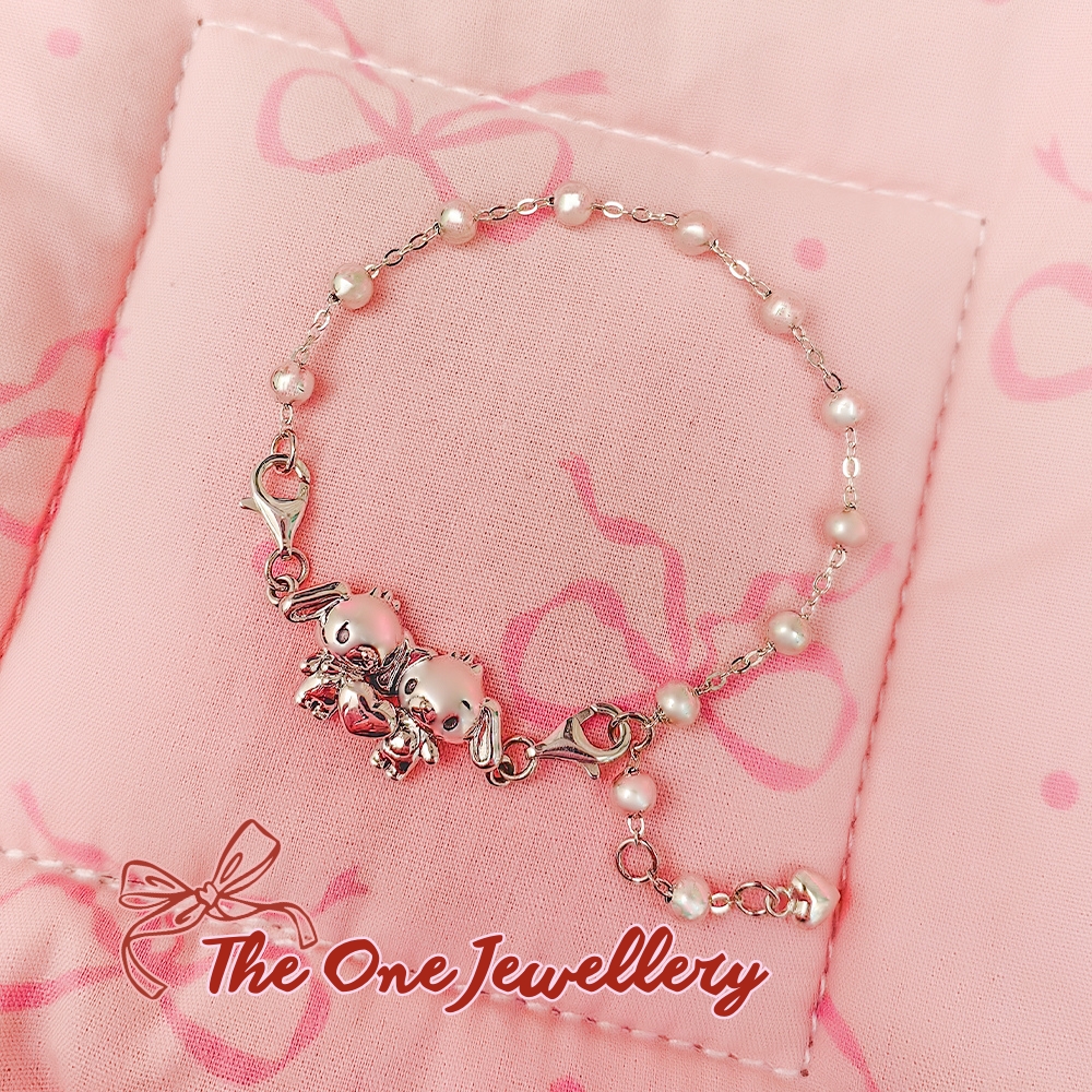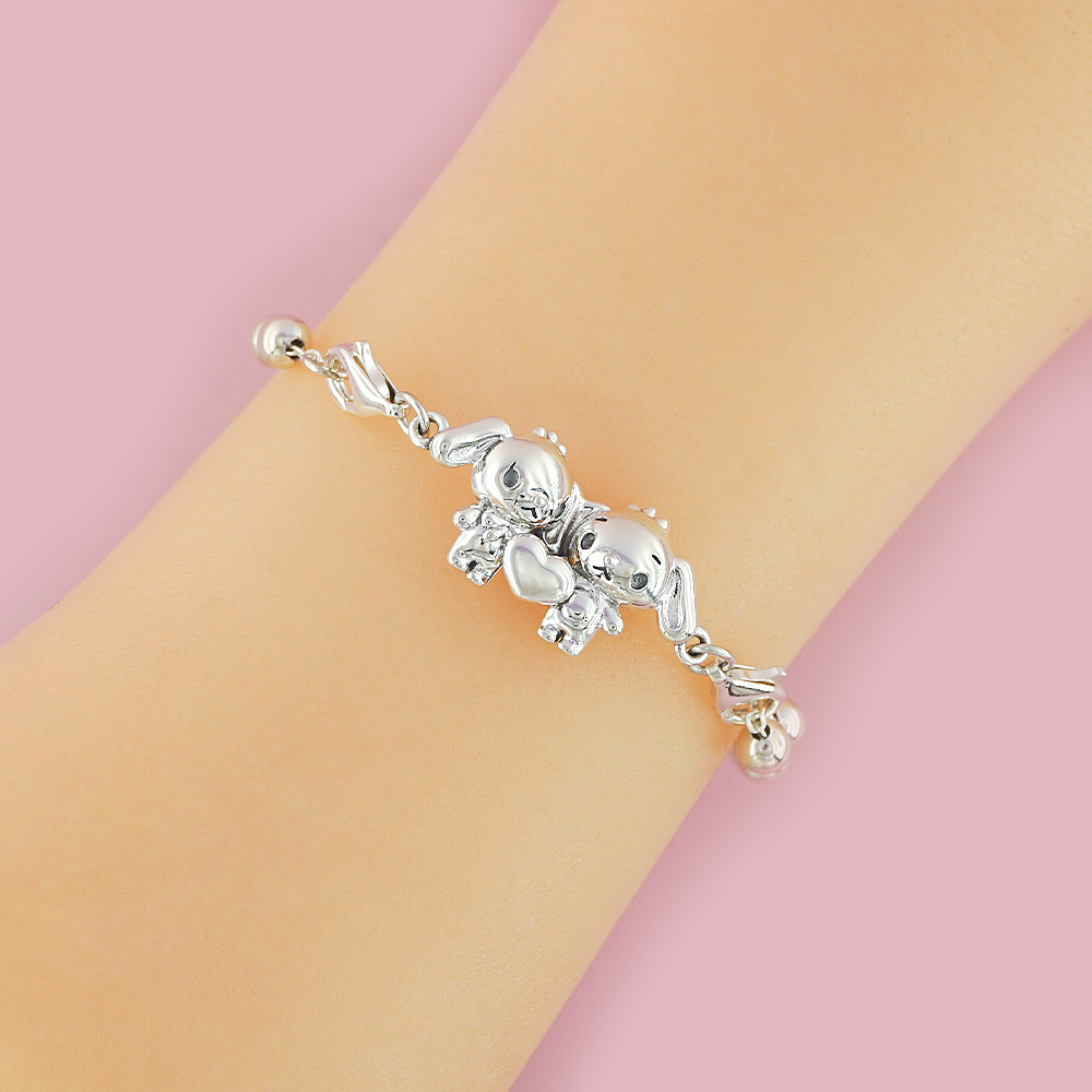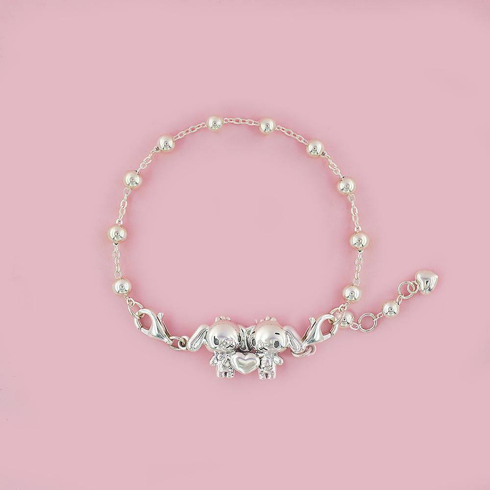 Theone Caramel Rabbit Dessert Rabbit Holding Heart Beads 925 Silver Bracelet Vintage Birthday Gift