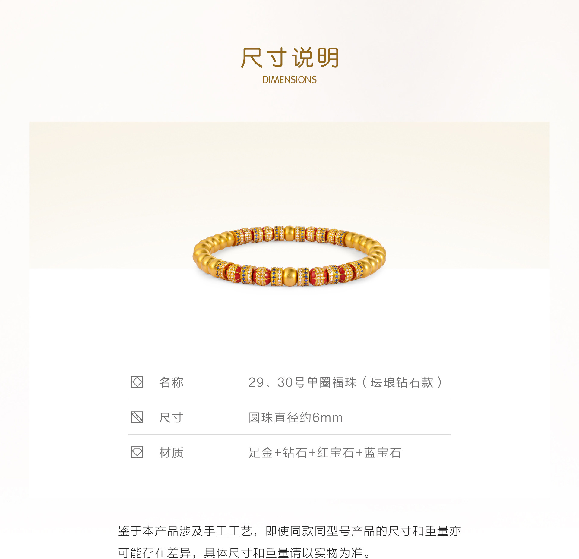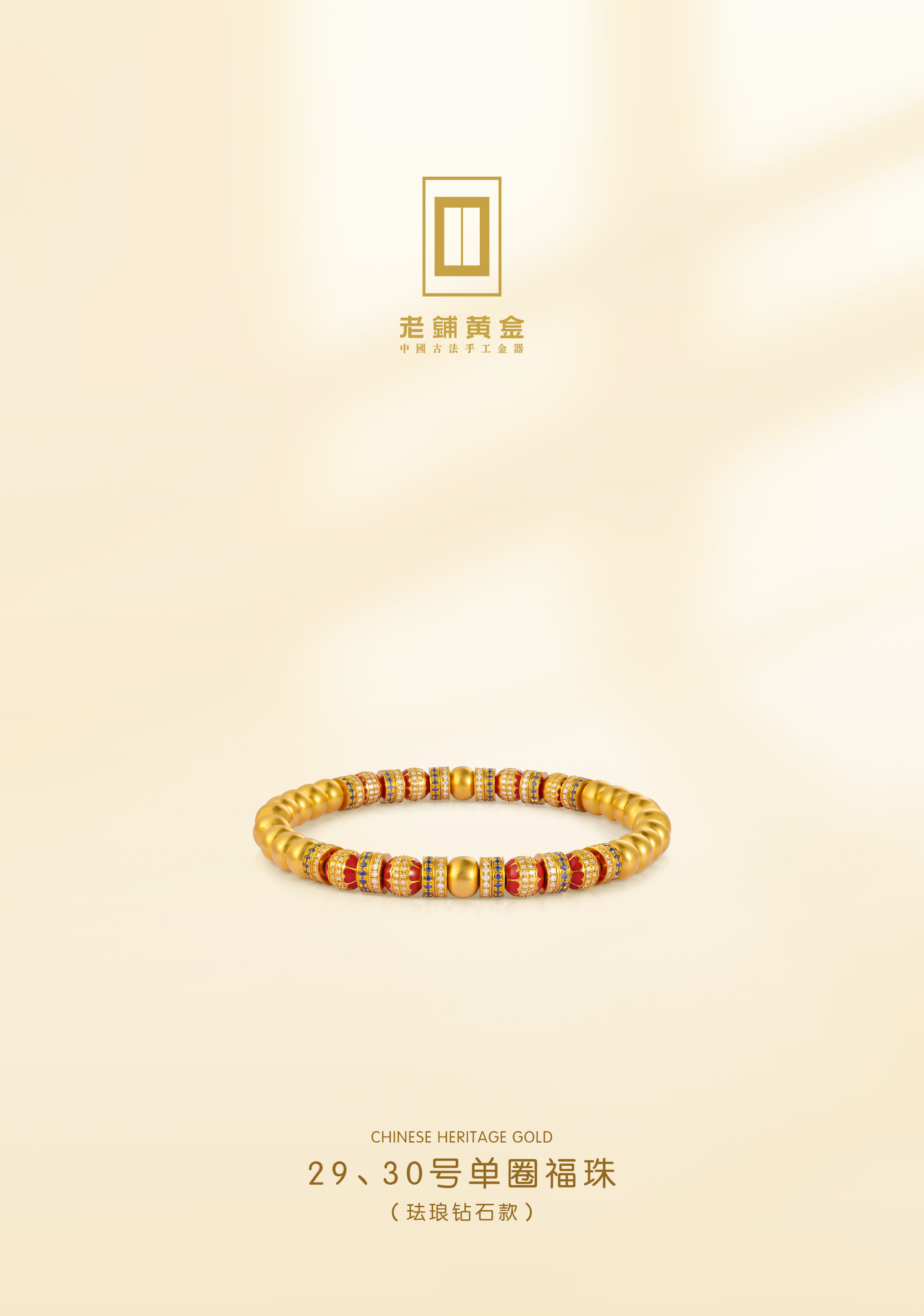 Old Store's Gold Traditional Handmade Pure Gold Bracelet· Old Store's Gemstone Single Circle Fortune Bead