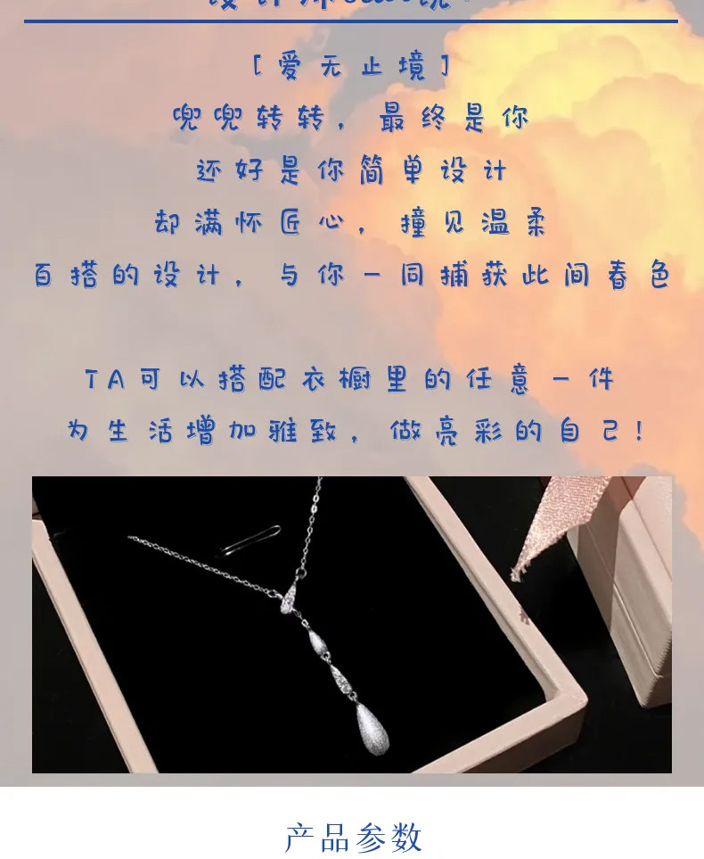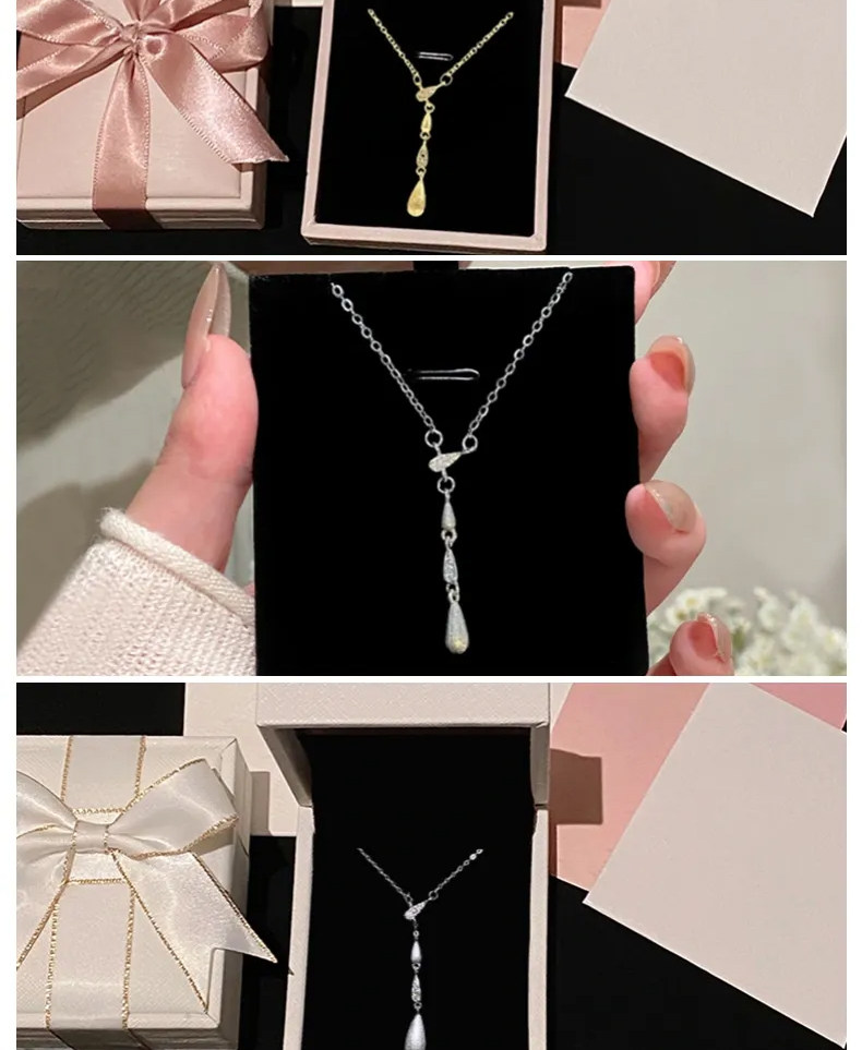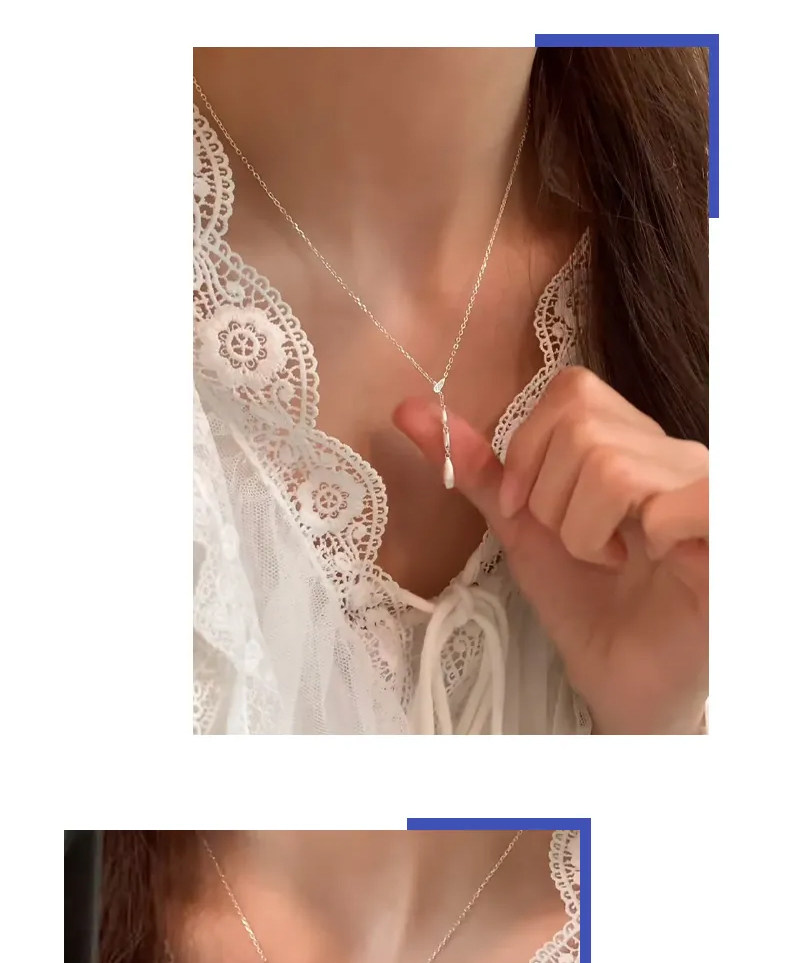 S999 Sterling Silver Water Drop Sparkling Diamond Necklace Women's Clavicle Chain High-End Elegant Niche Accessory Gift for Girls
