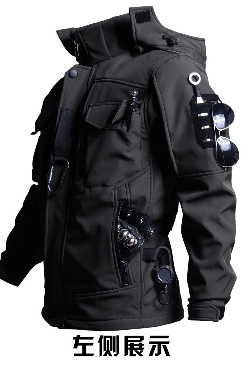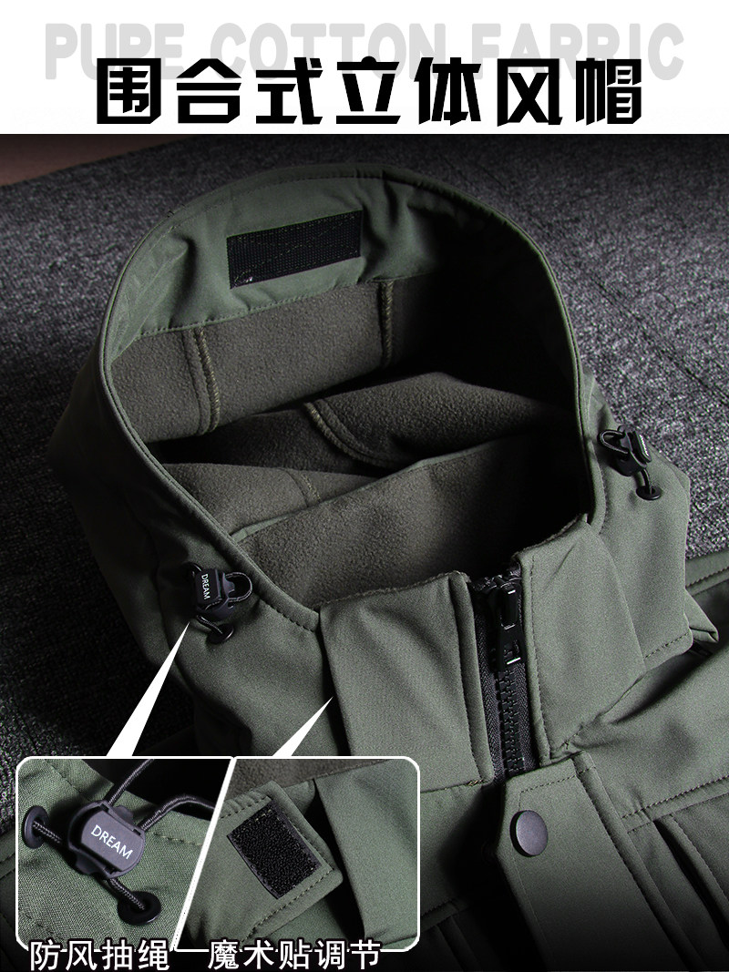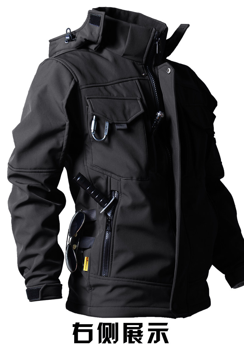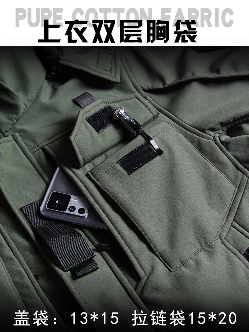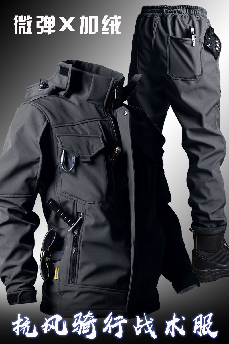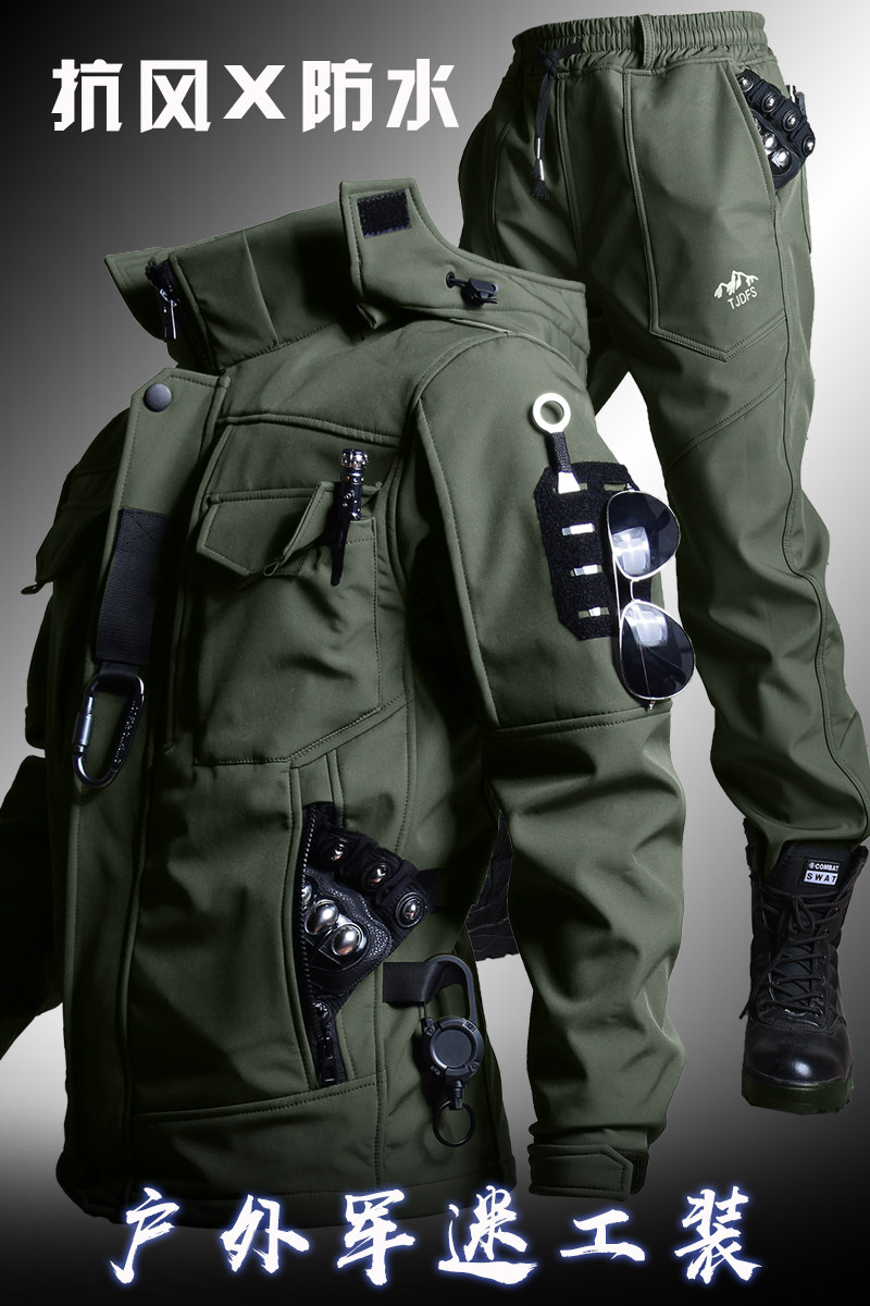 Outdoor Fleece-Lined and Thickened Tactical Softshell Jacket Set for Men, Fishing and Cycling Clothing, Waterproof and Windproof Jacket