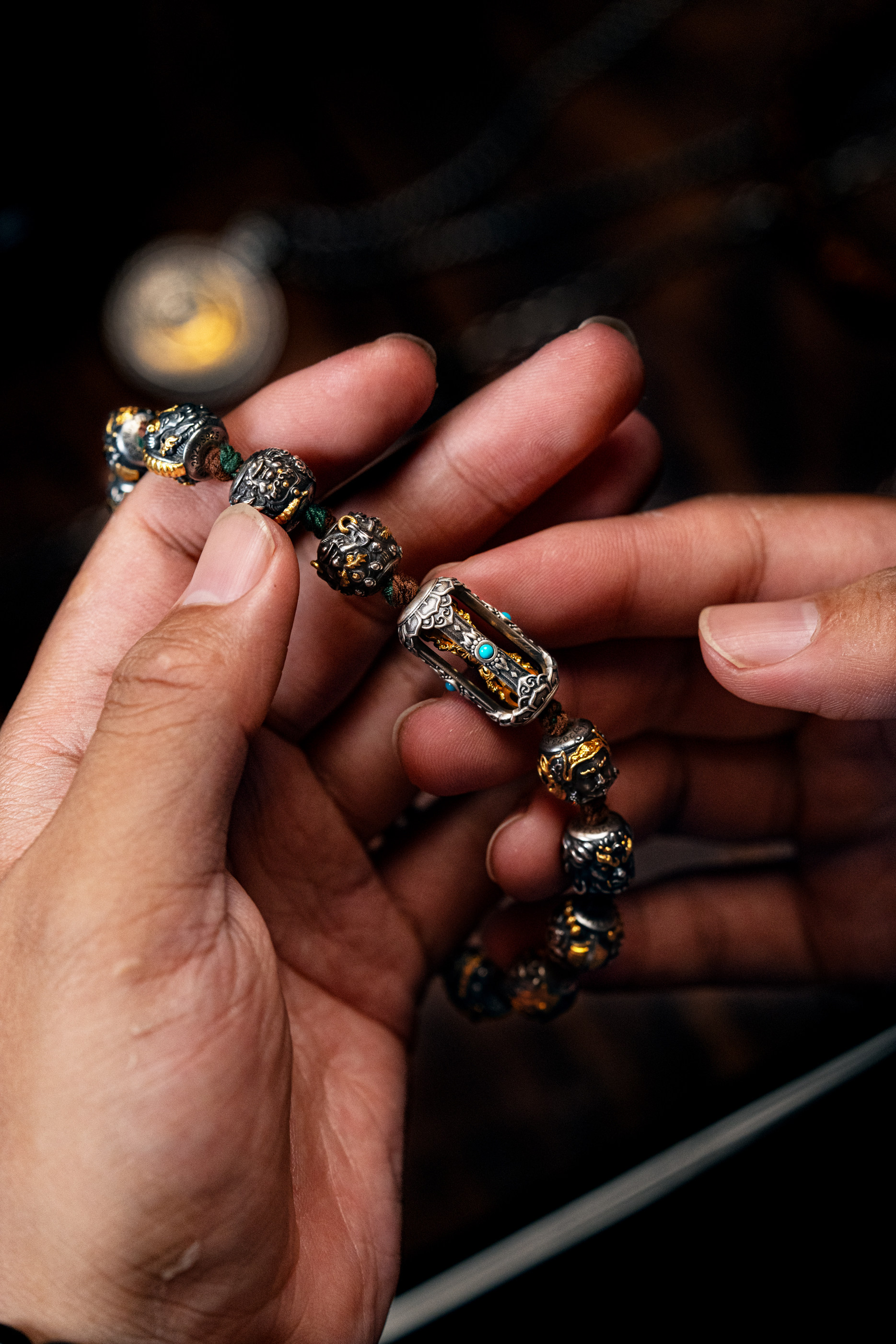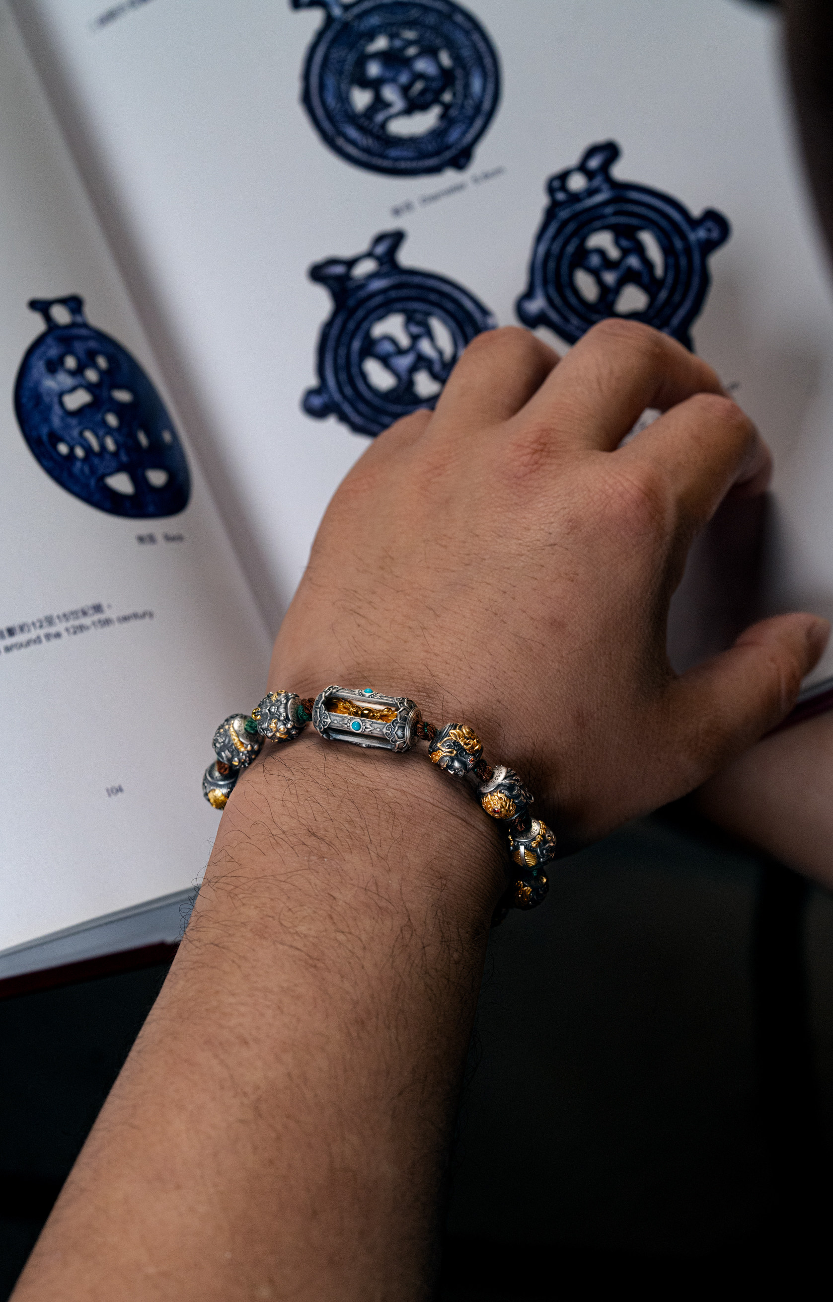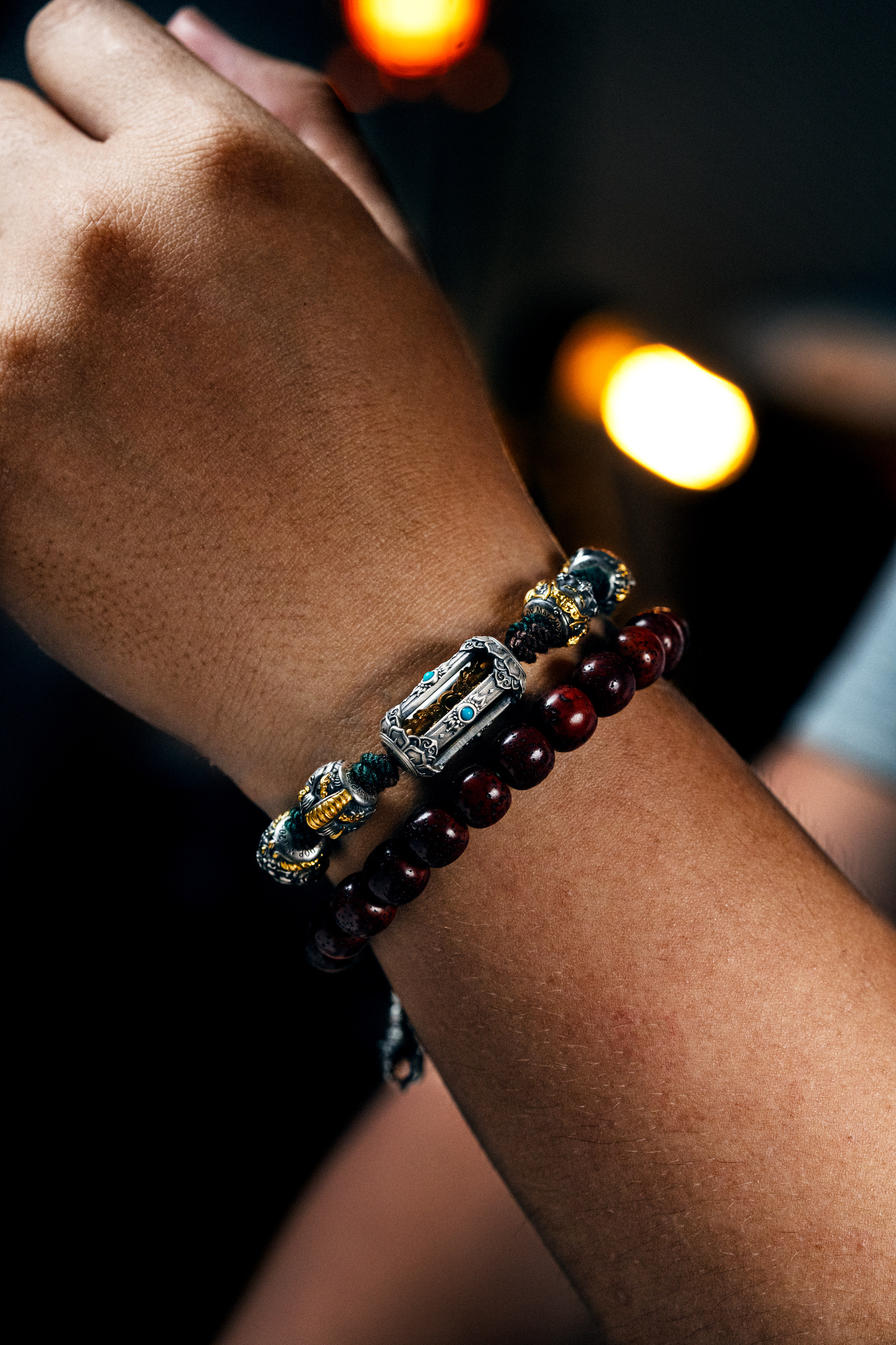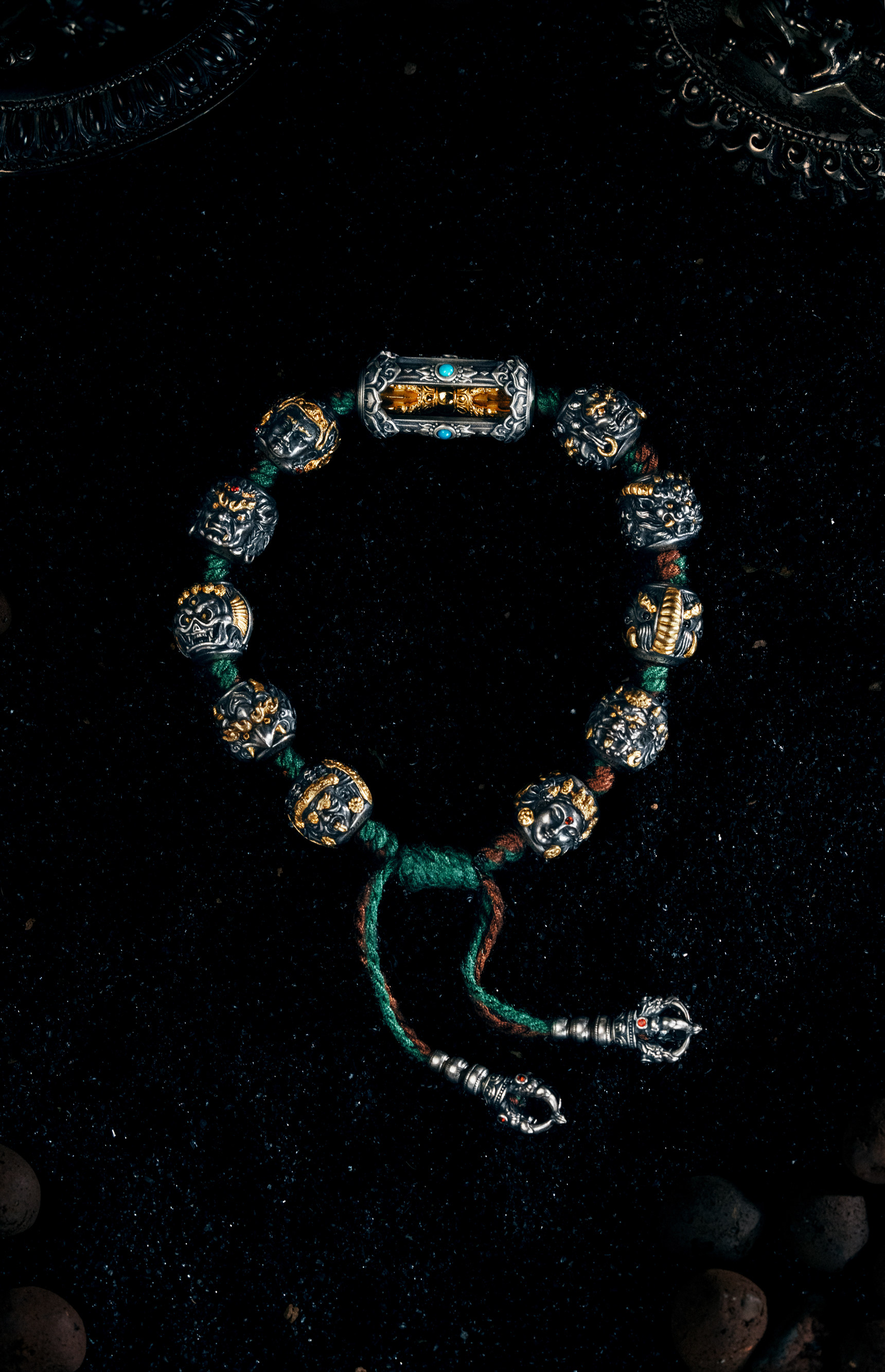 Original Design by This Craftsman: Tibetan-Style Beaded Bracelet with Tibetan-Style Top Bead, Hand-Woven Bracelet with 925 Silver Beads