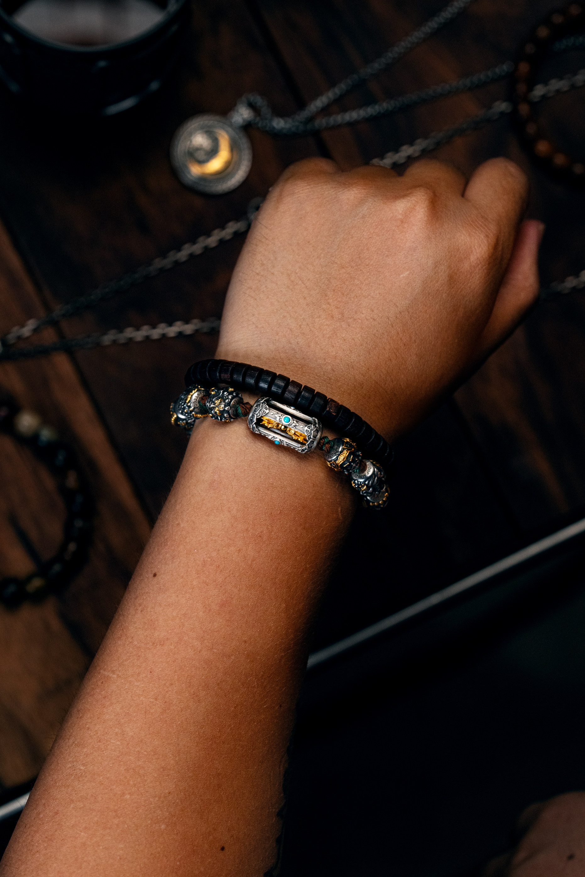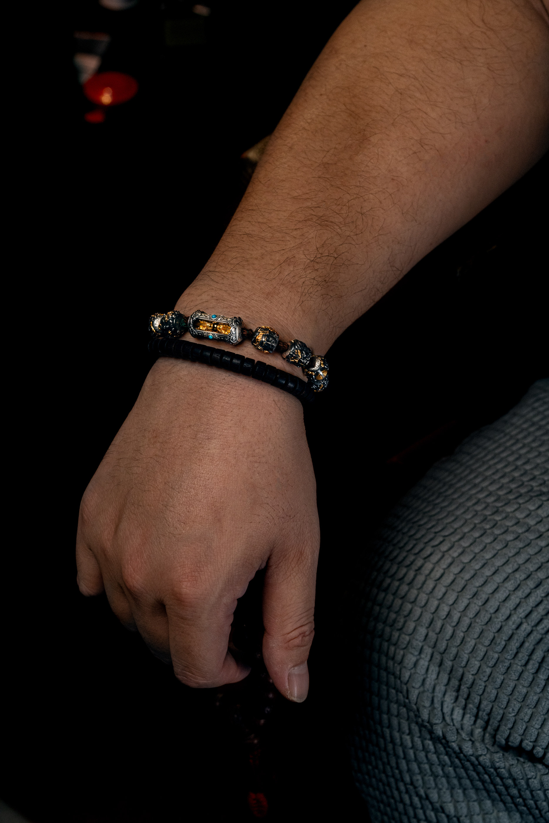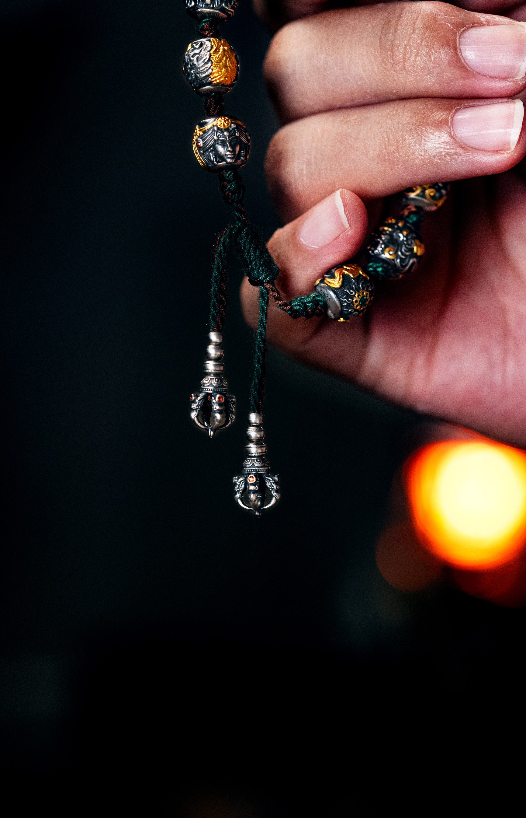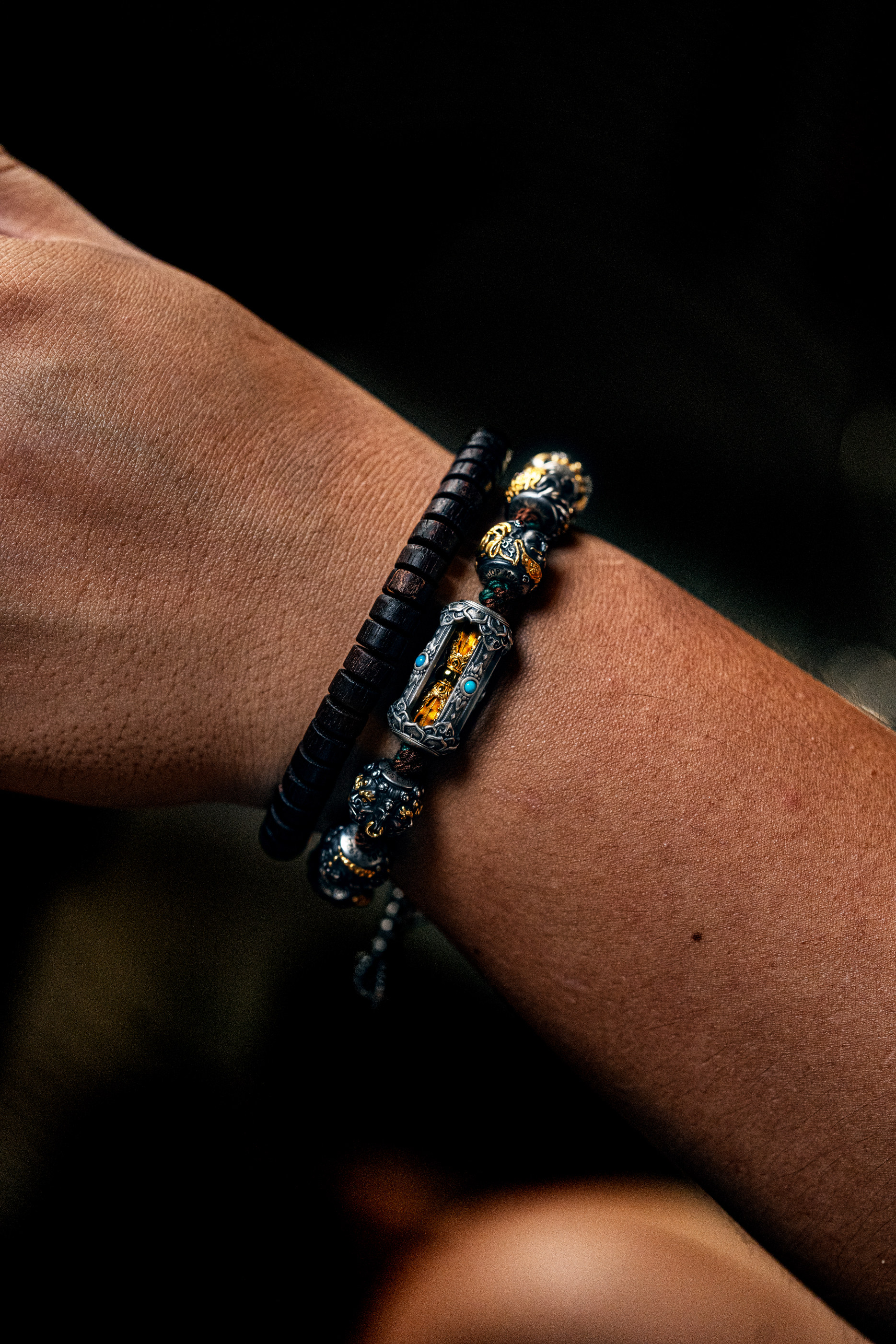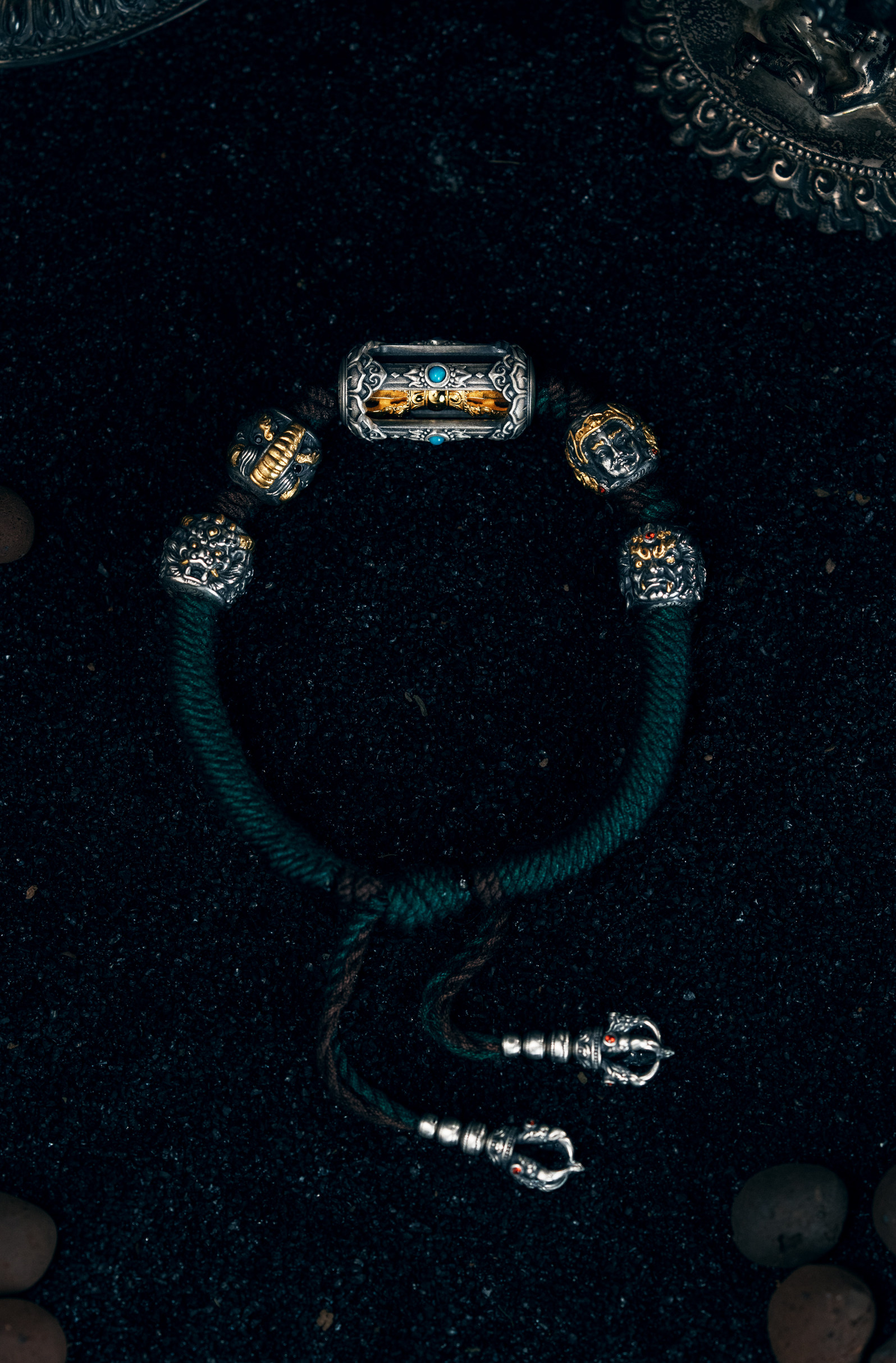 Original Design by This Craftsman: Tibetan-Style Beaded Bracelet with Tibetan-Style Top Bead, Hand-Woven Bracelet with 925 Silver Beads