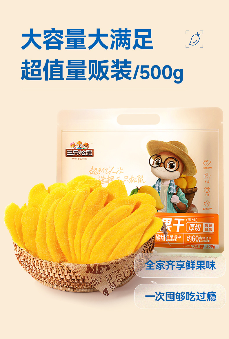 Three Squirrels Wholesale Bag Hand Teared Mango Dried 500g