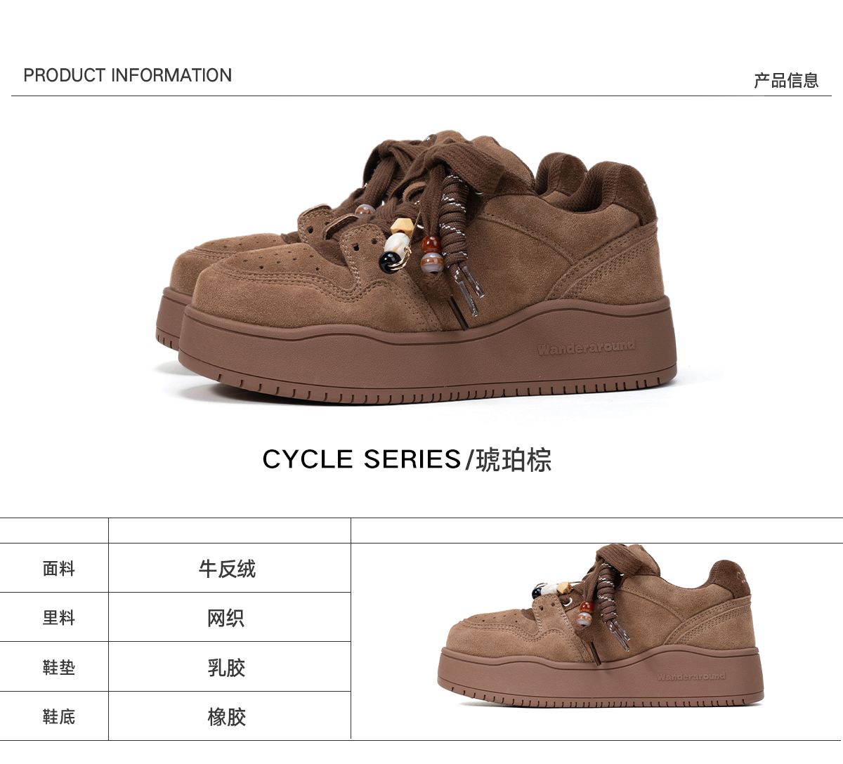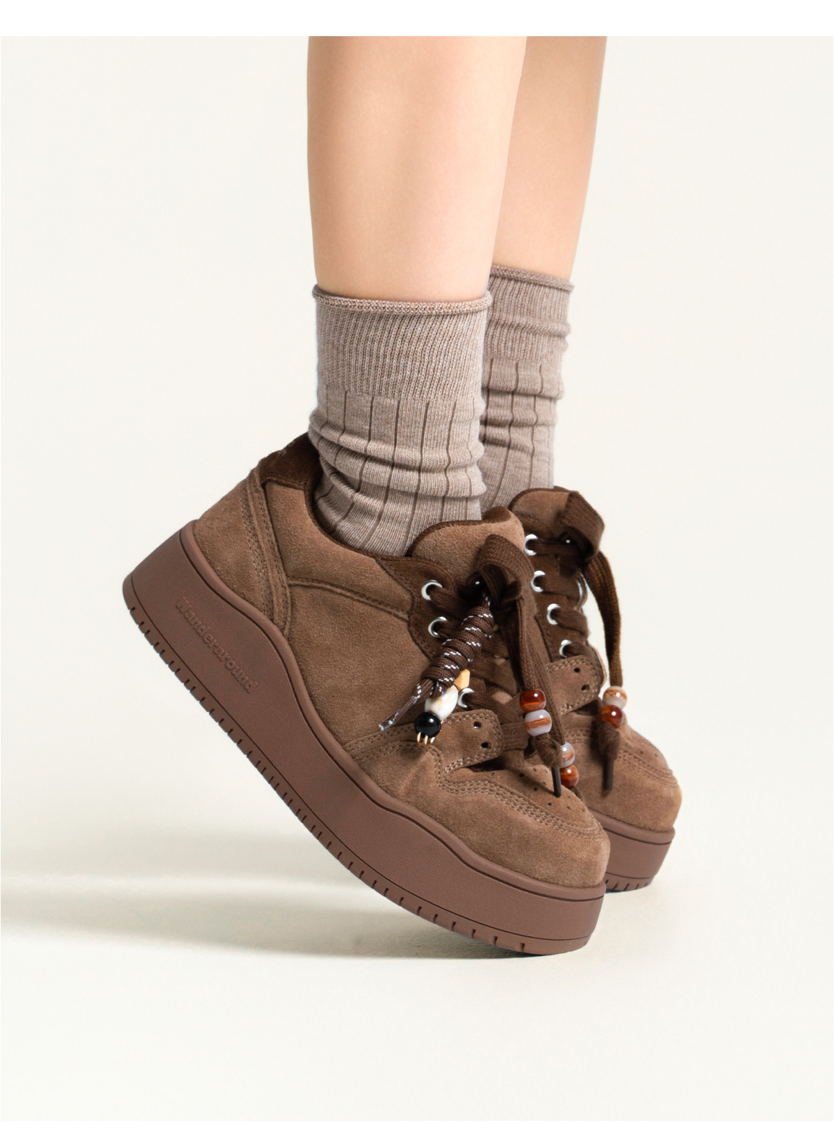 Wander Around 2025 New Autumn Retro Brown Thick-Soled Height-Increasing Casual Sneakers for Women