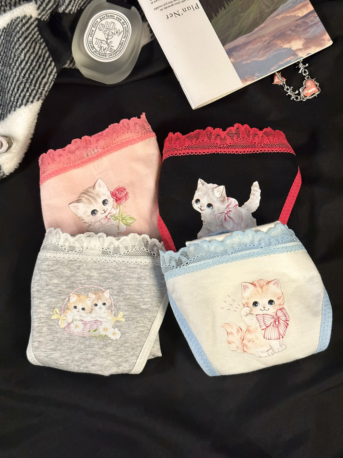 Cute Cat Head~ These Pure Cotton Panties Are Bursting with Dopamine! Y2K Hot Girl Style Is Perfect for the Early Autumn Vibe~
