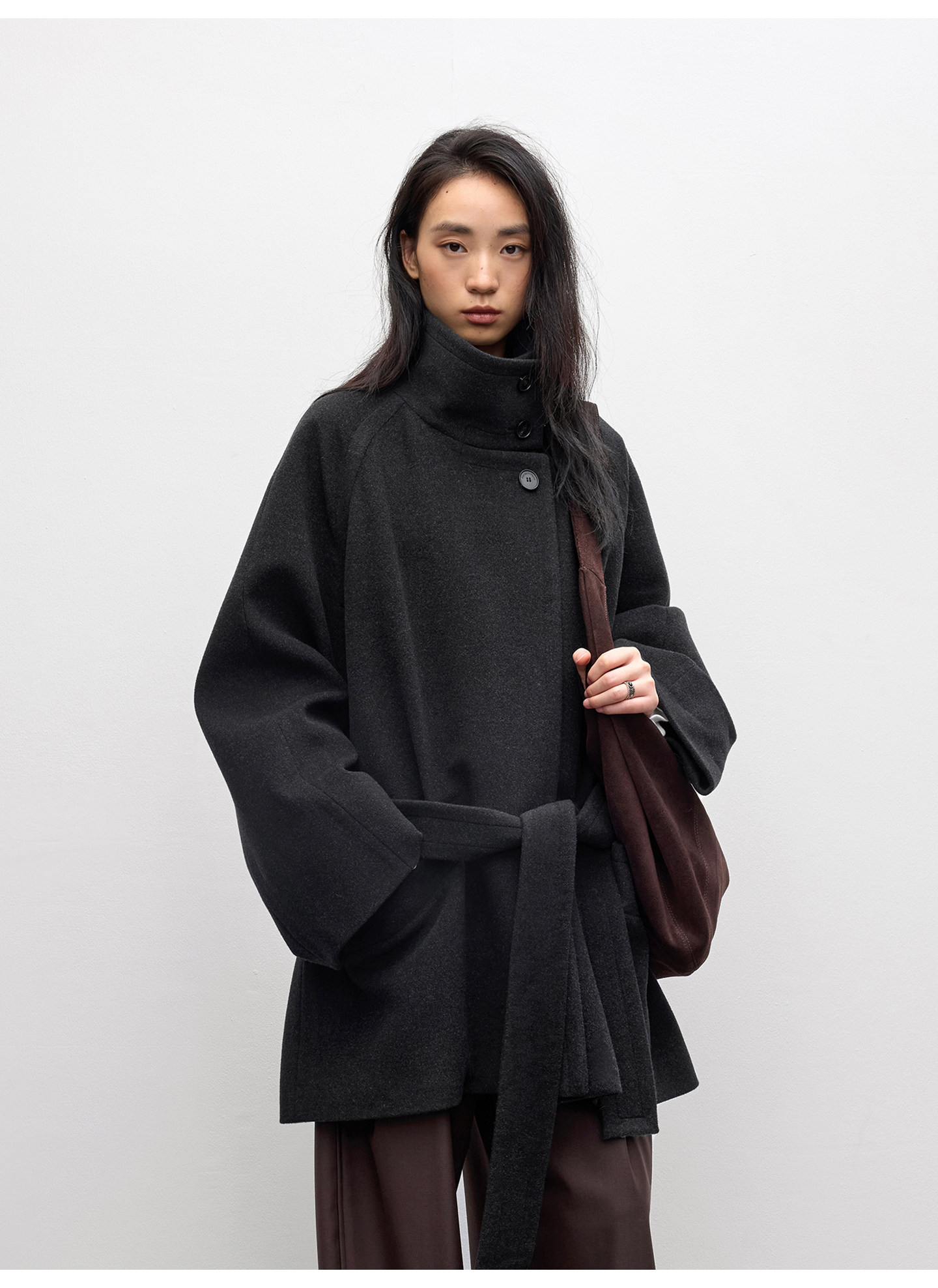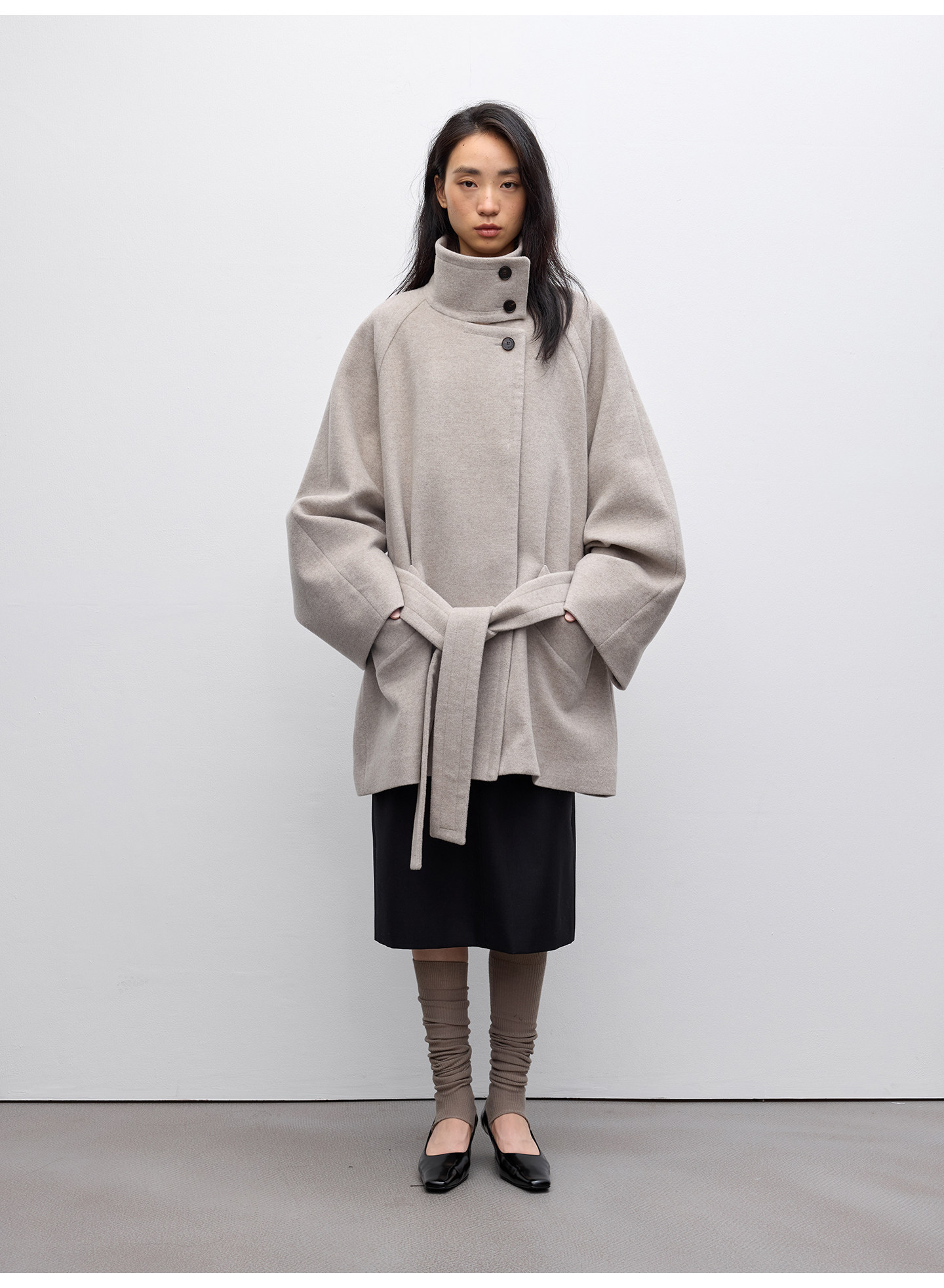 Randompiece25 Winter New Alpaca Wool Blend Stand Collar Oversized Wide Cuff Short Wool Coat