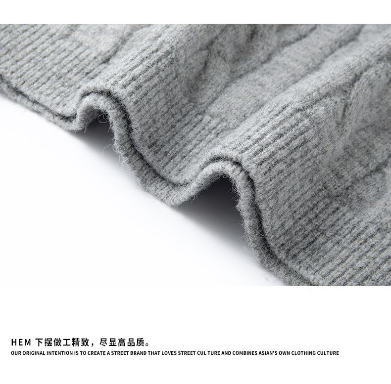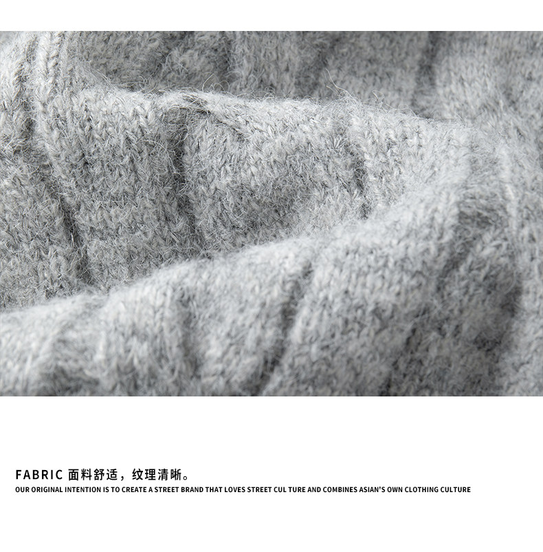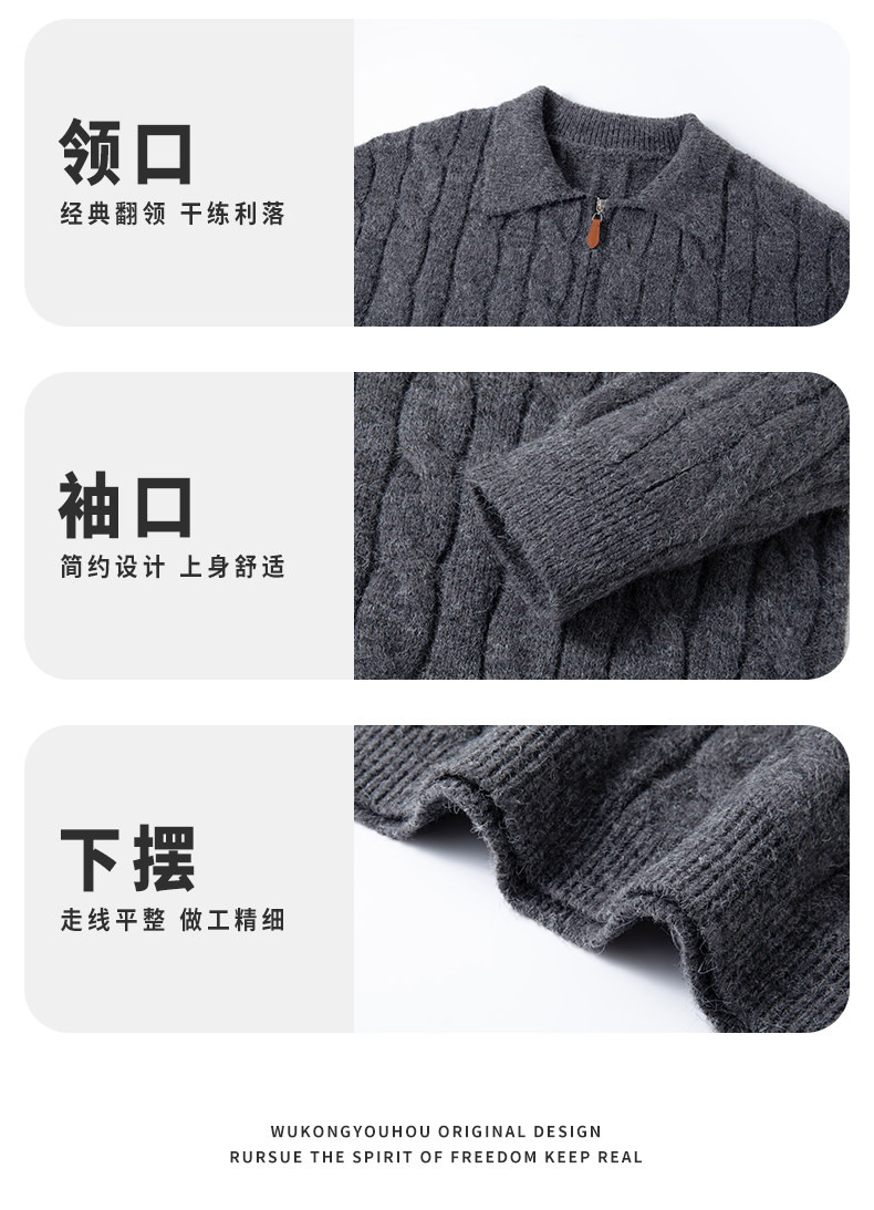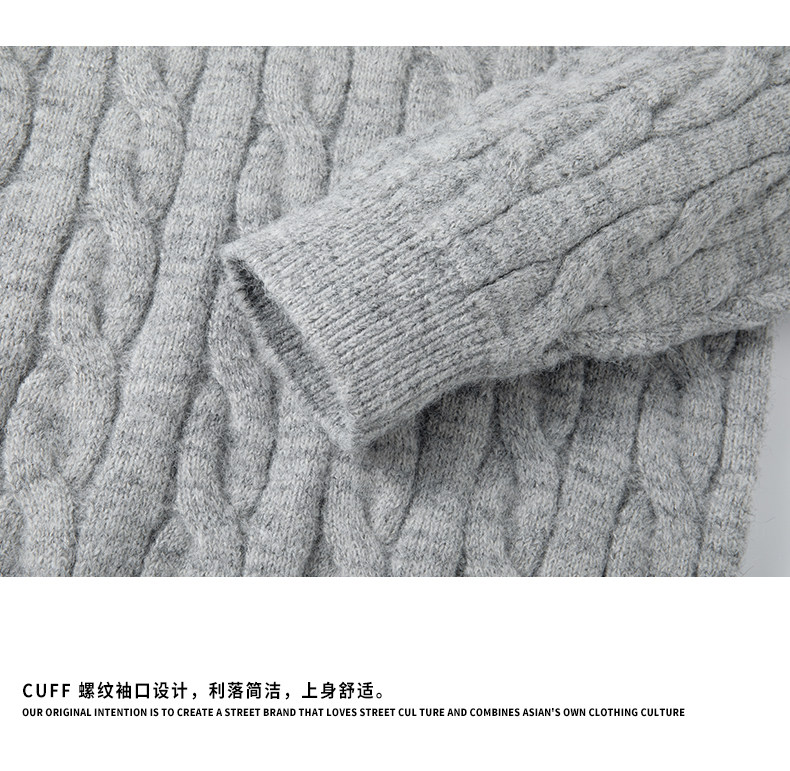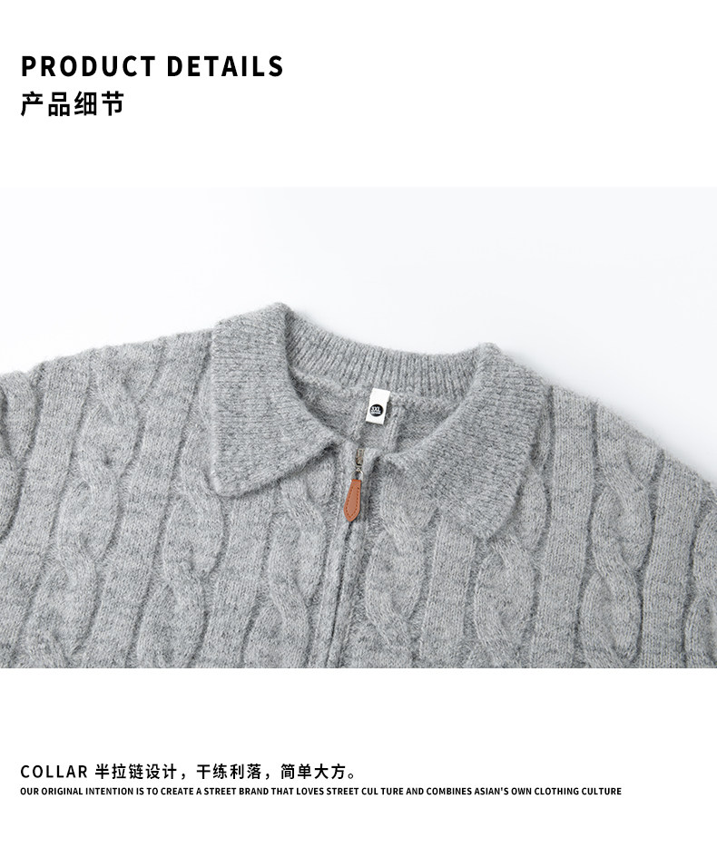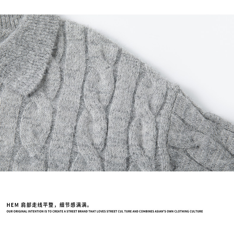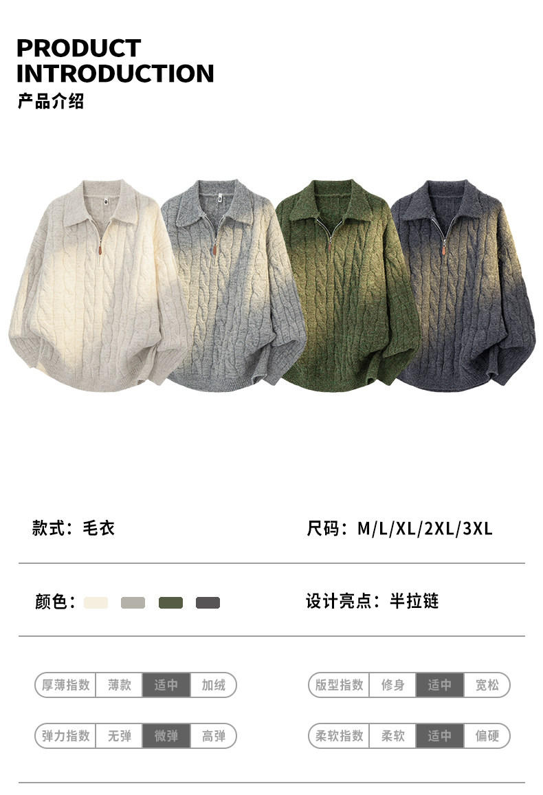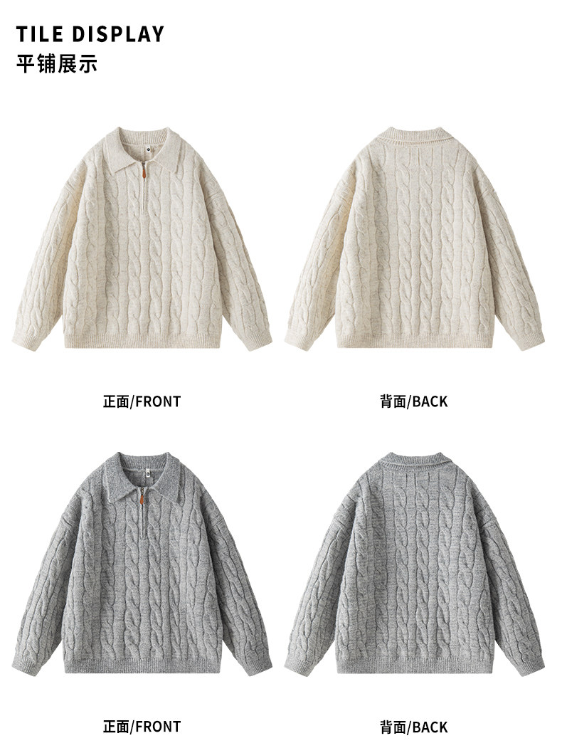Wassup Shark Retro Style Lapel Half-Zip Cable Knit Sweater Men's Loose Lazy Style Pullover Sweater