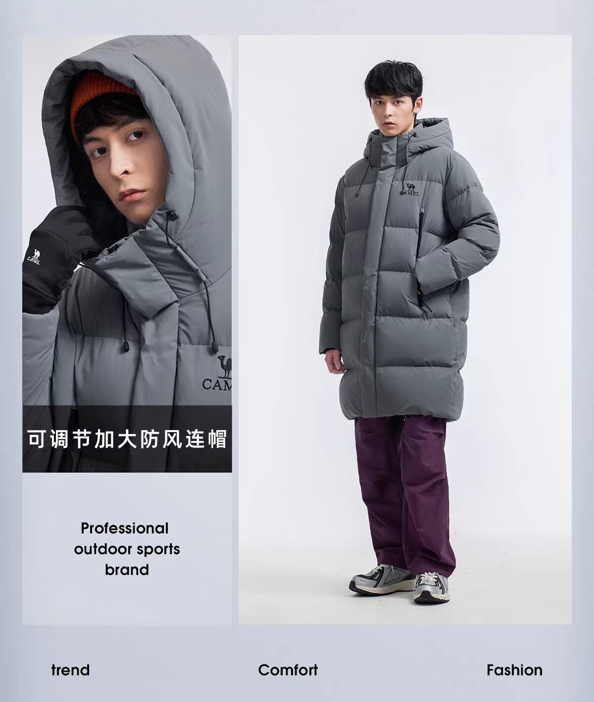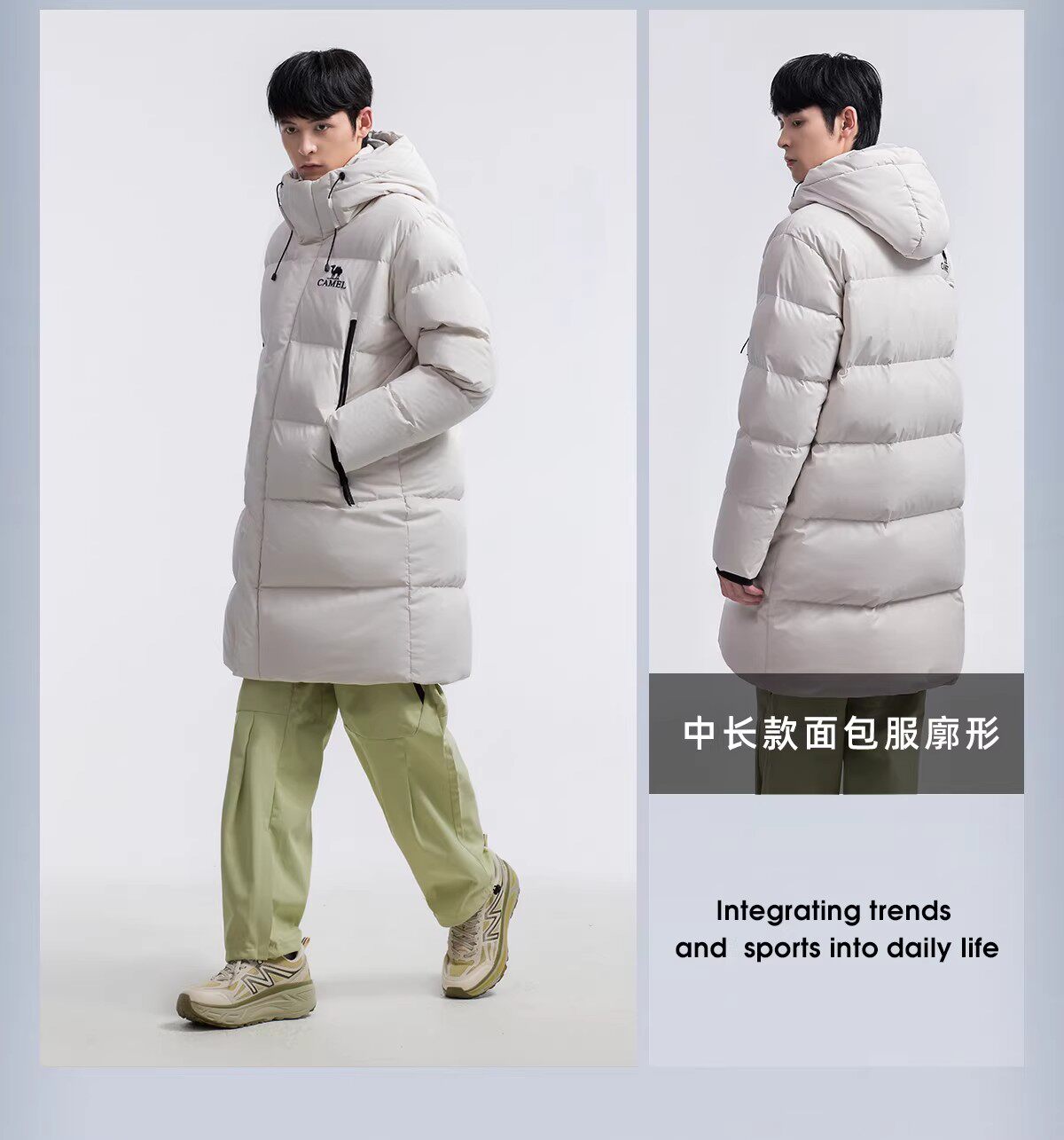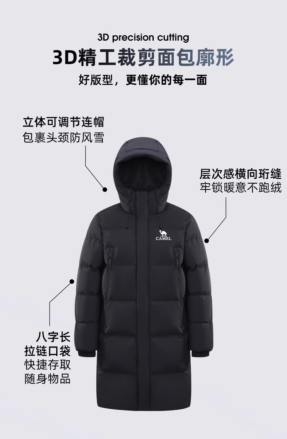 Camel Sports Mid-Length down Jacket for Men 2025 Winter New Thickened Warm Water-Repellent down Jacket Windproof Coat for Women