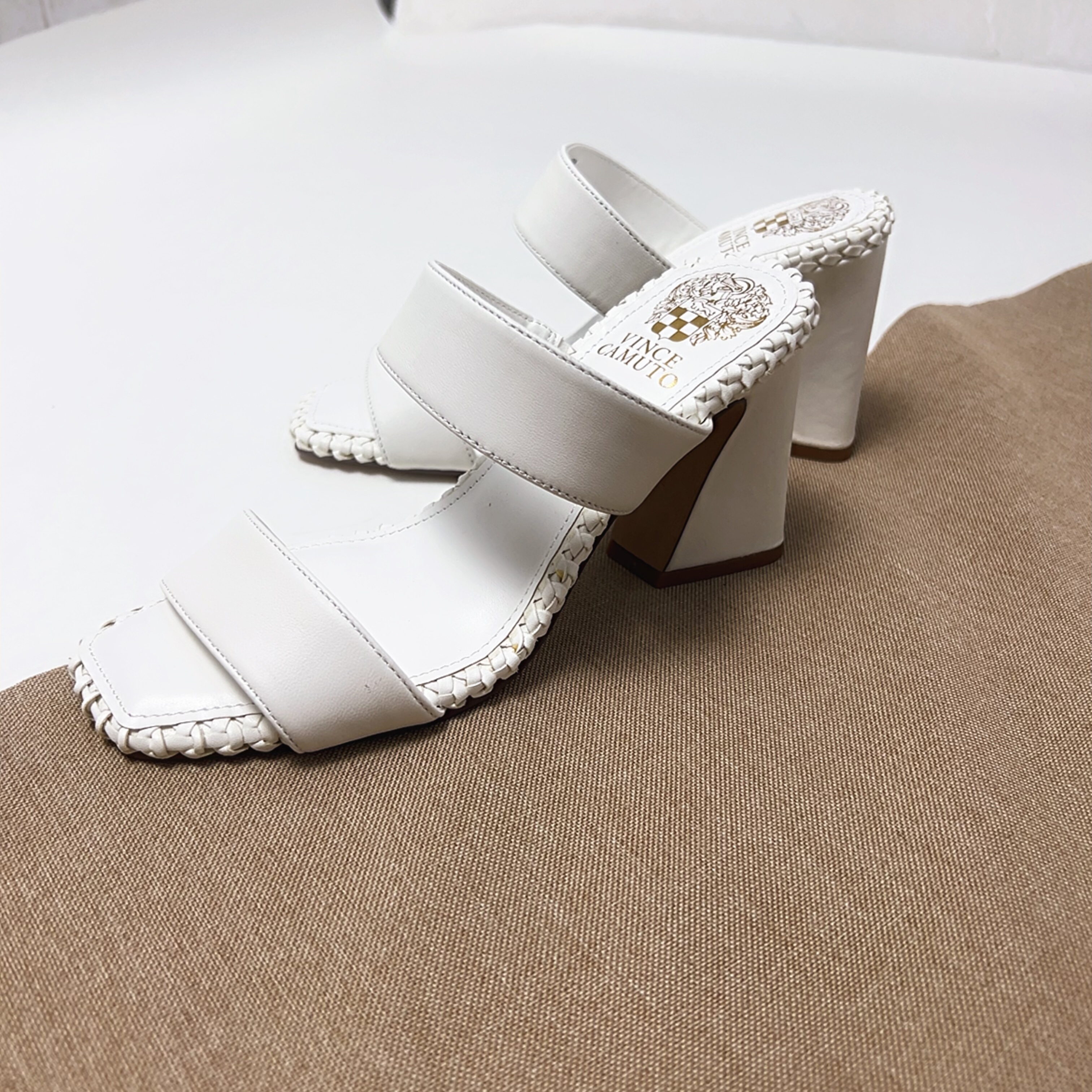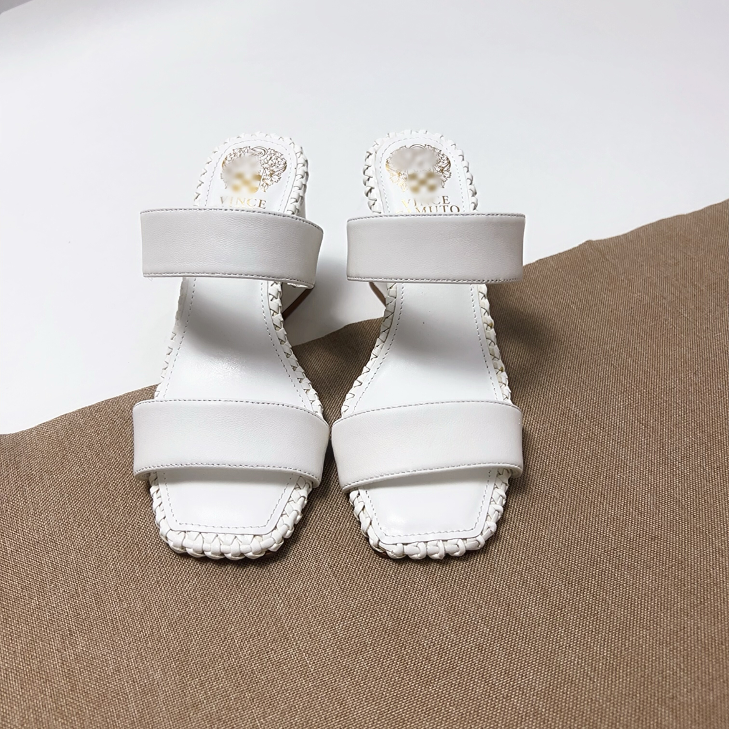 Sample Store Vc New Square-Toe Genuine Leather Strappy Chunky High-Heeled Sandals, about 8.5cm