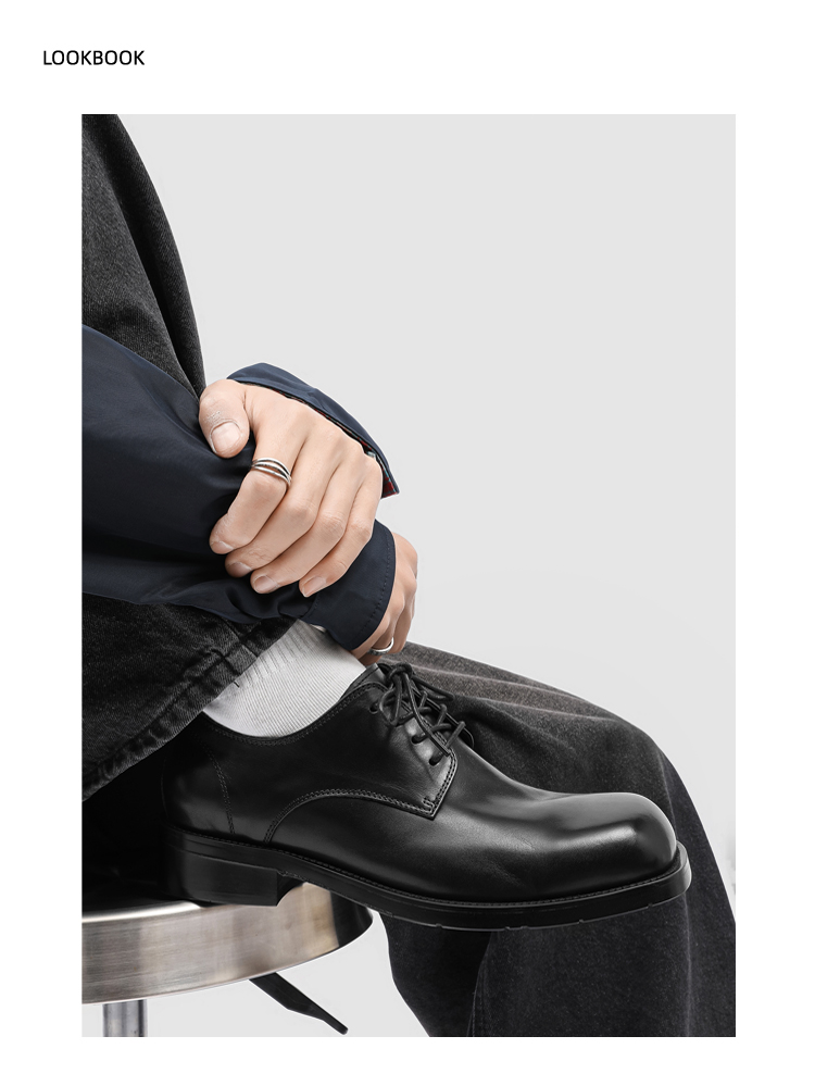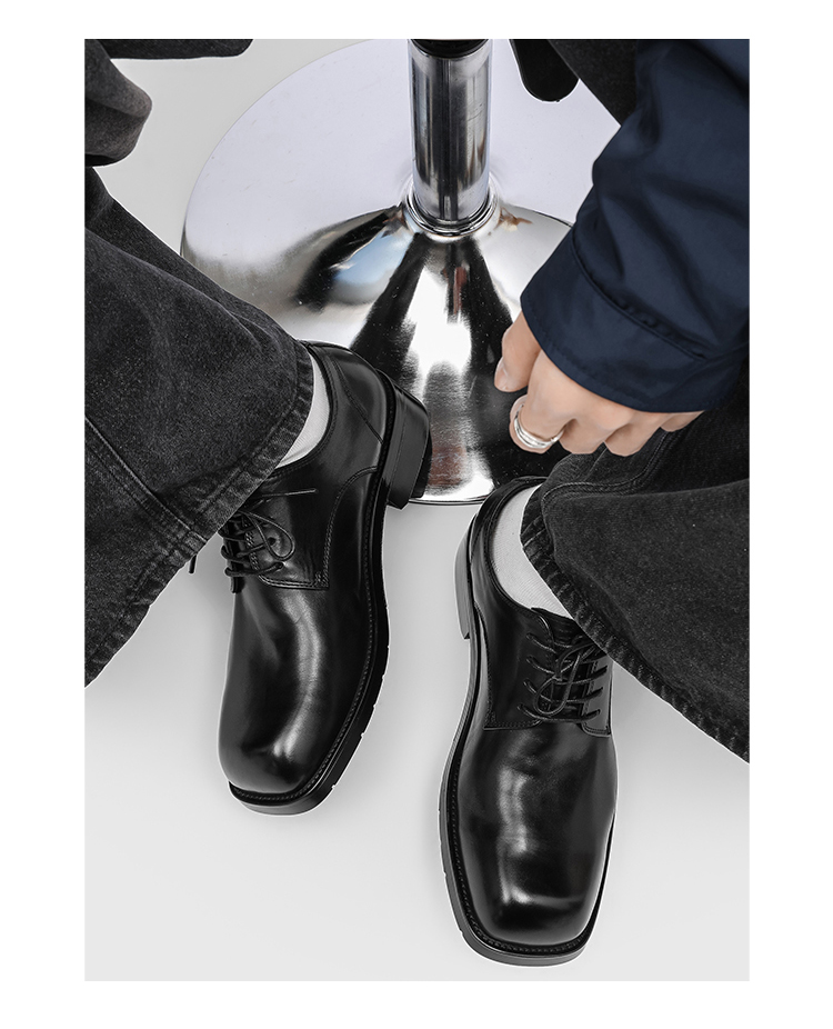 Rzaaz Elegant Square-Toe Lace-Up Leather Derby Shoes, High-Quality, Height-Increasing, Everyday Commuting Men's Formal Versatile Leather Shoes