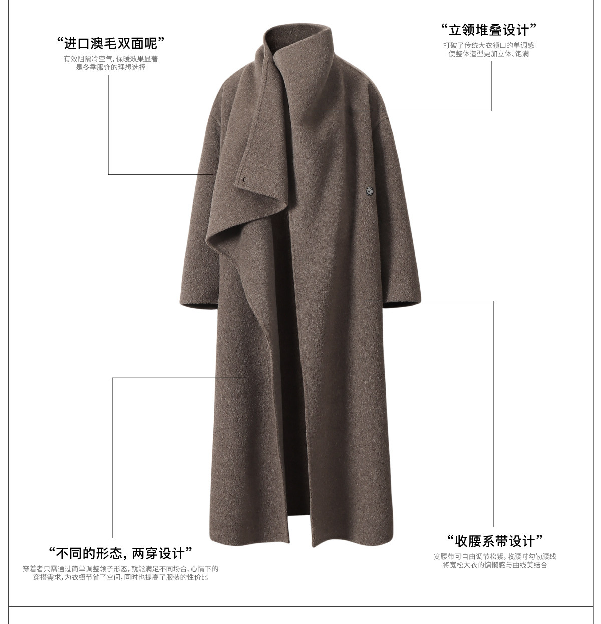 Single Moment 25Aw Winter High-End Warm Stand-Up Collar Long All-Wool Double-Sided Woolen Coat
