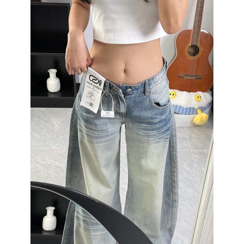 American Retro Scimitar Jeans for Women, Autumn 2025 New Low-Waist Loose Straight Wide-Leg Floor-Length Sickle Pants