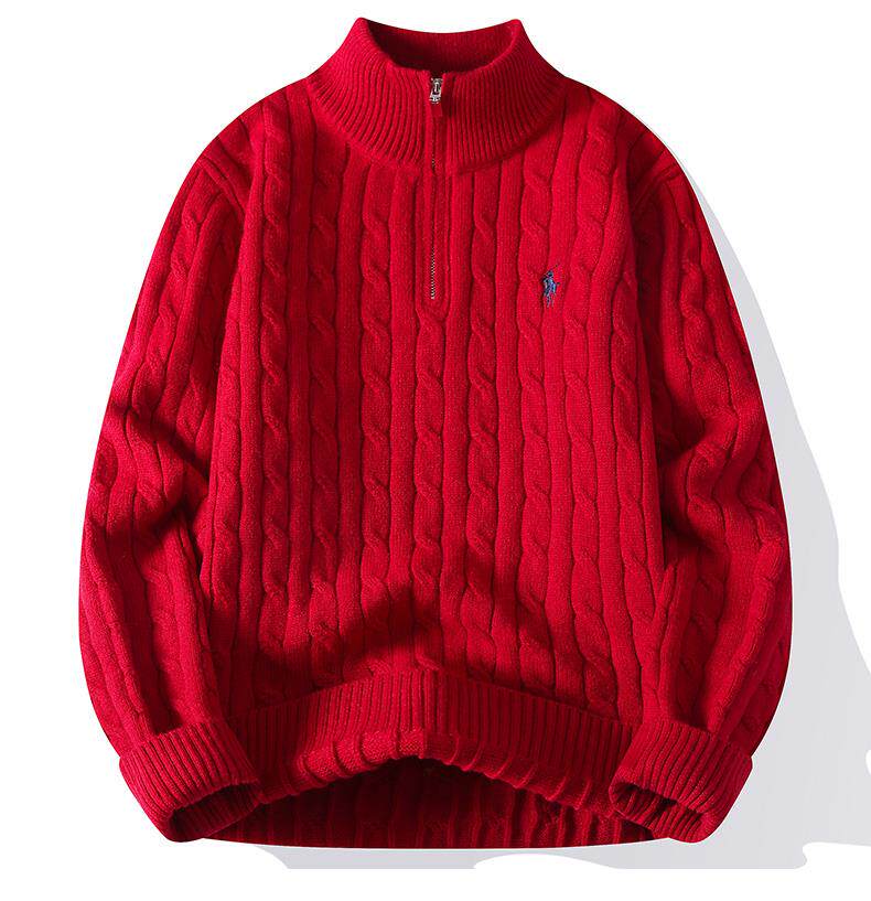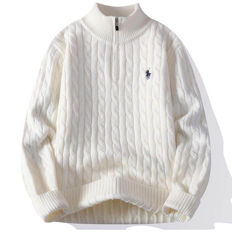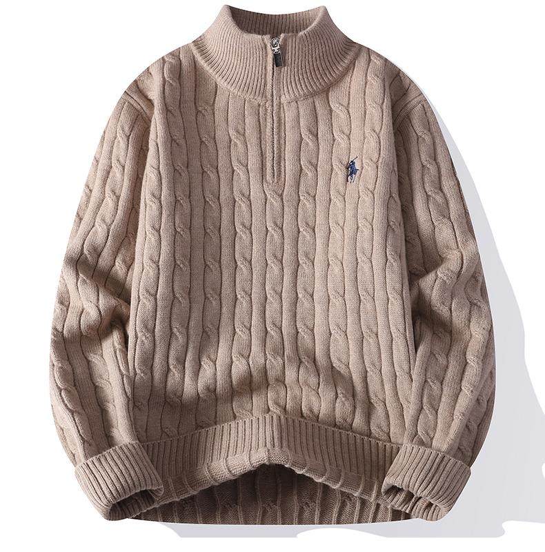 Cable Knit Half-Zip Sweater for Men, Autumn and Winter, Loose Casual Stand-Up Collar Knitwear, Men's High-End Pullover Jacket