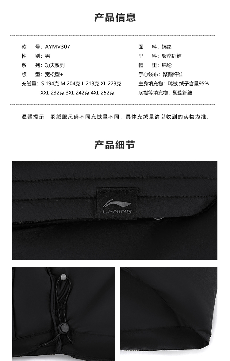 China Li-Ning Kung Fu Series down Jacket Men's 2025 New Top Winter Loose Sportswear