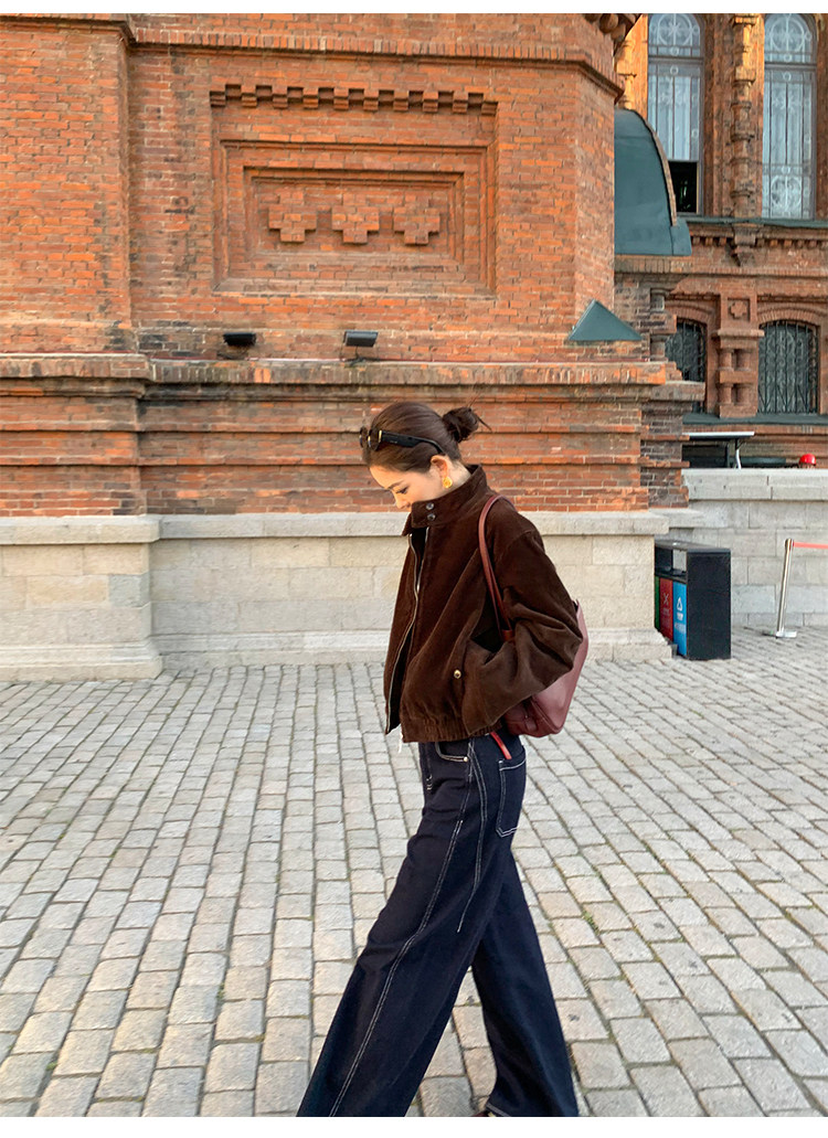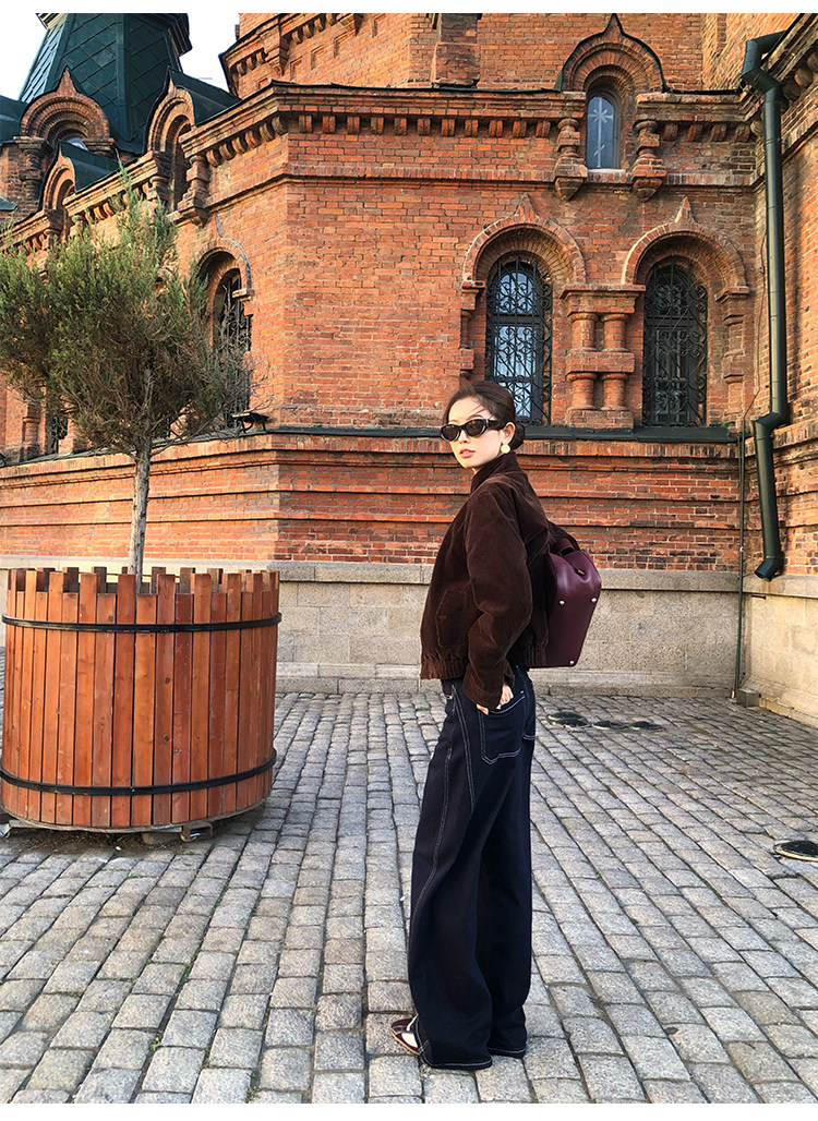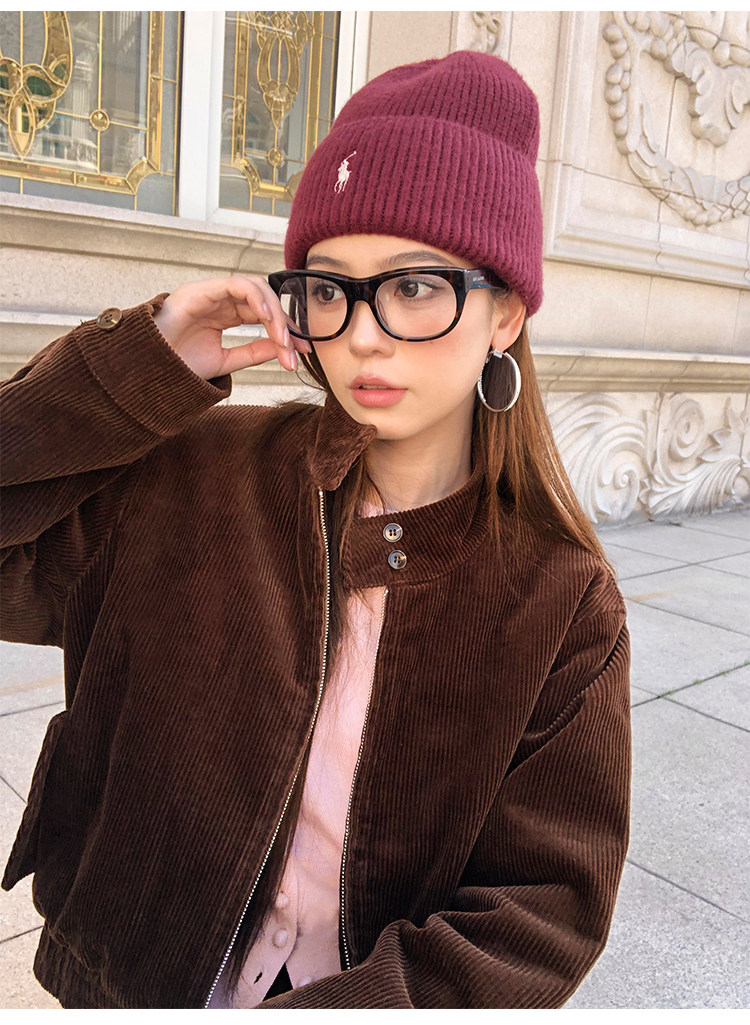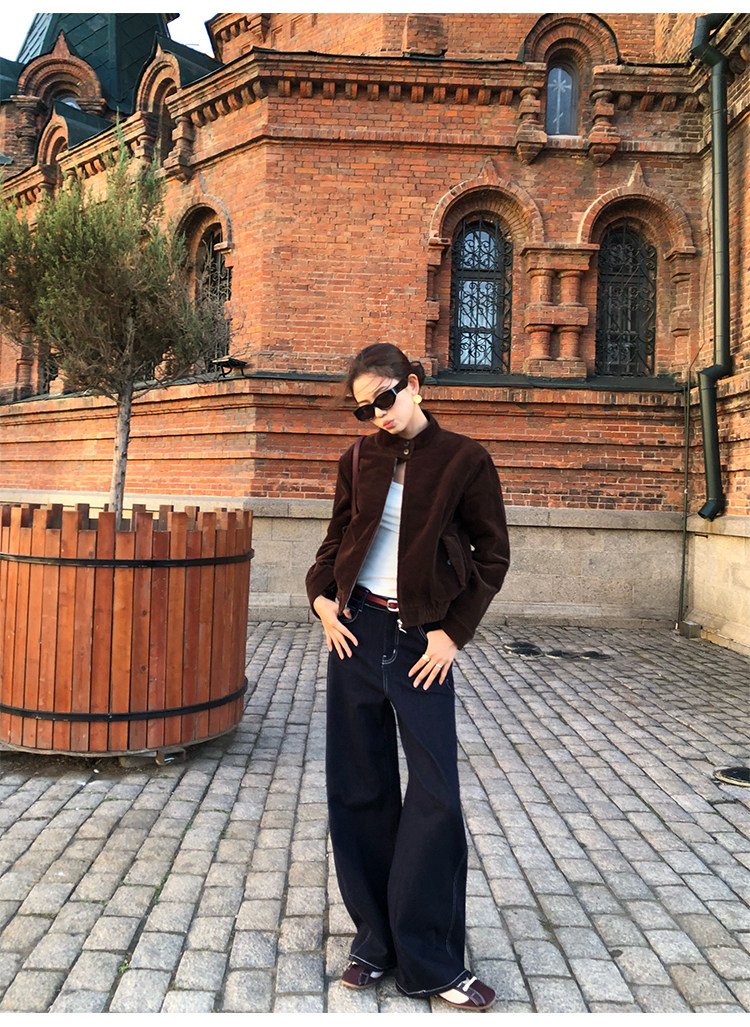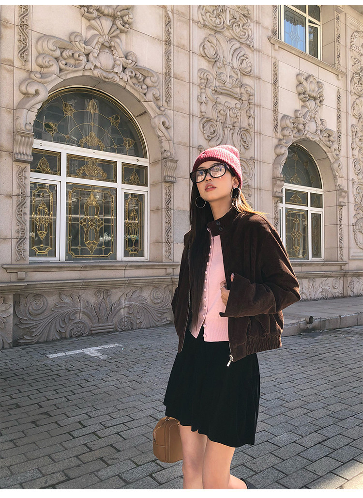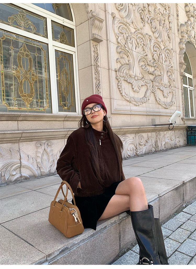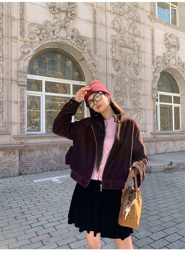 Pusumede Timeless Style Retro Corduroy Stand Collar Cotton Jacket Women's Loose Casual Jacket Top