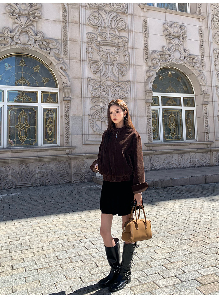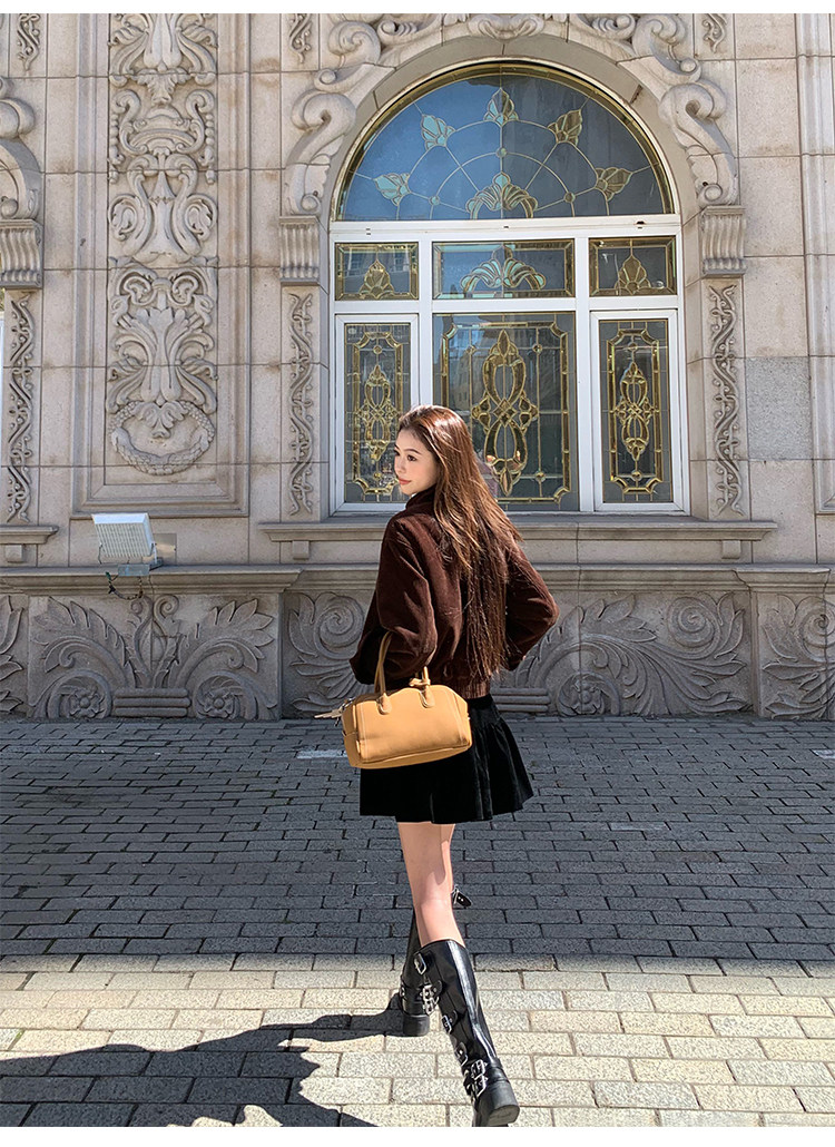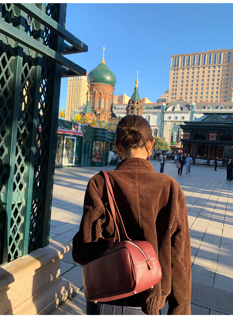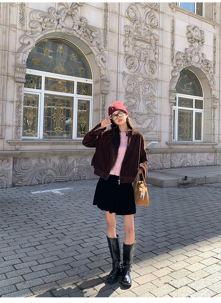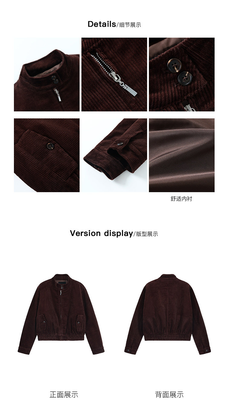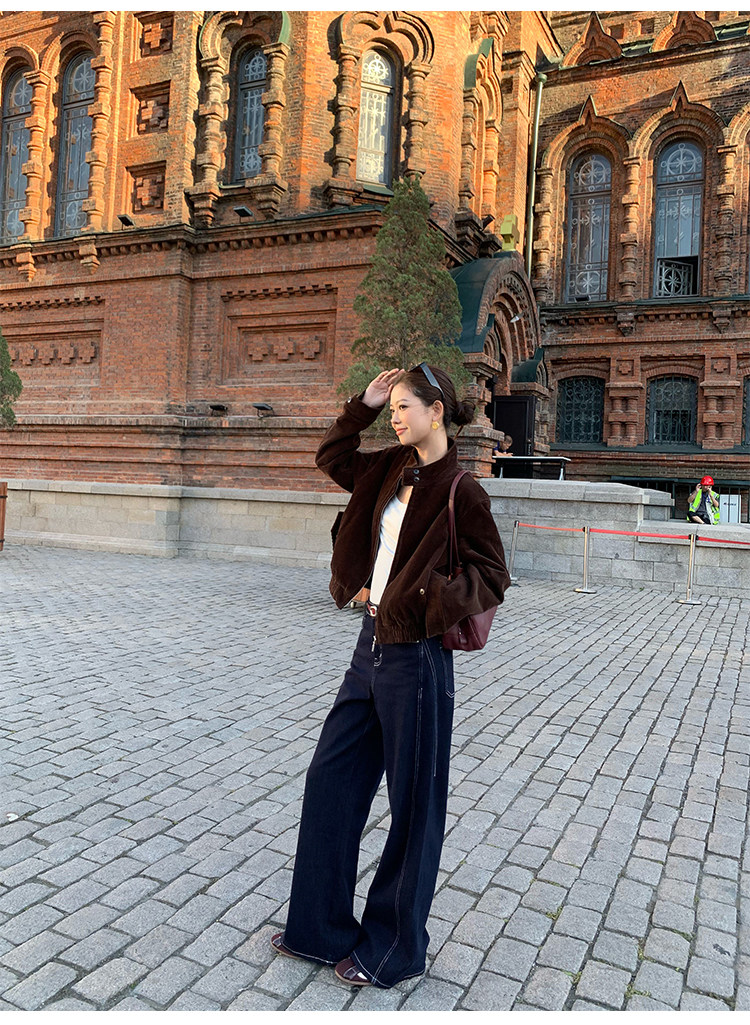 Pusumede Timeless Style Retro Corduroy Stand Collar Cotton Jacket Women's Loose Casual Jacket Top