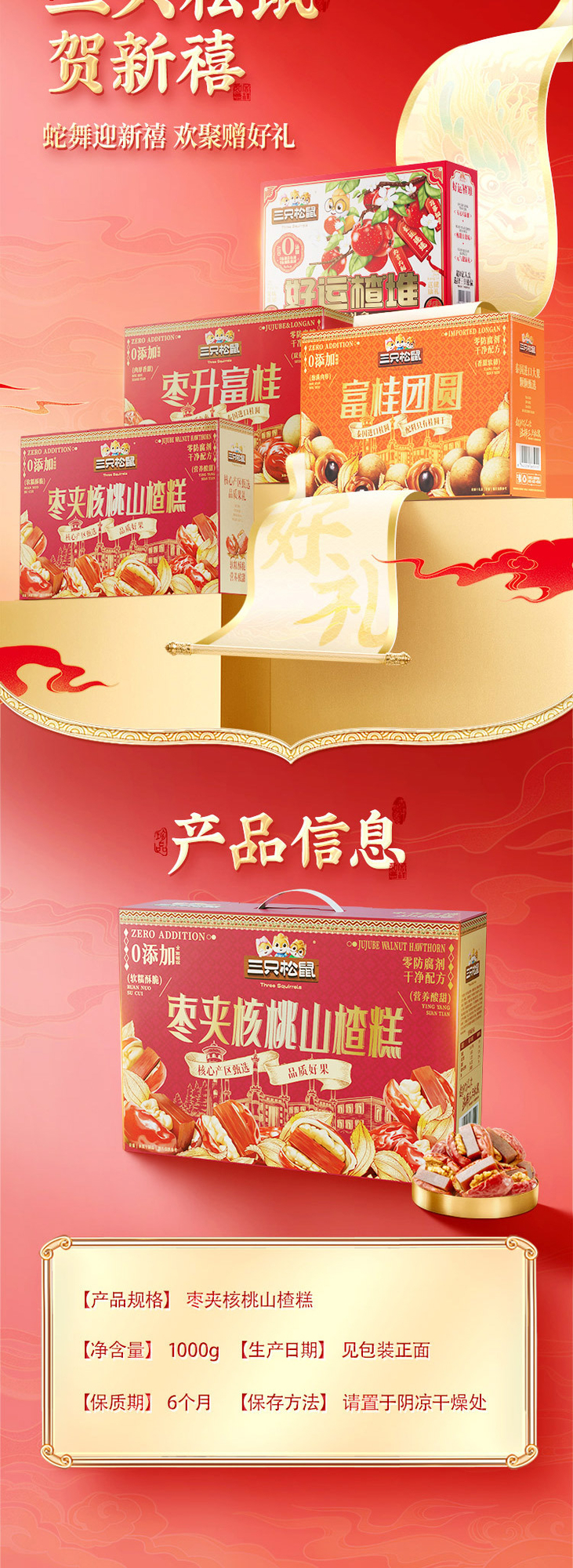 【 Three Squirrels, 1 kg Walnut Hawthorn Cake with Jujube 】
