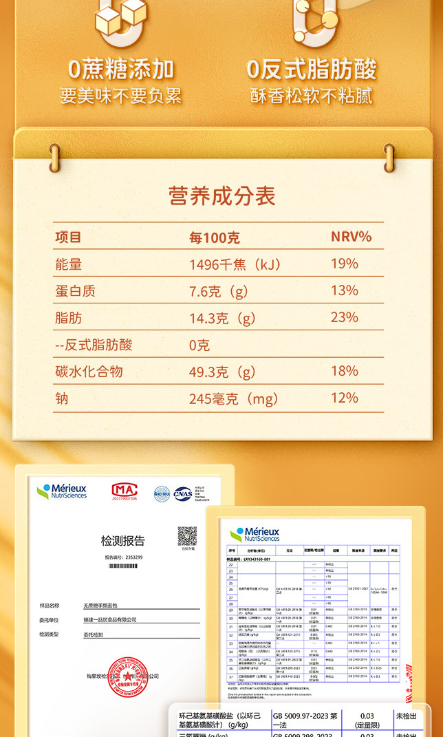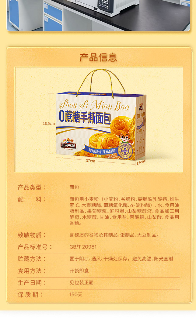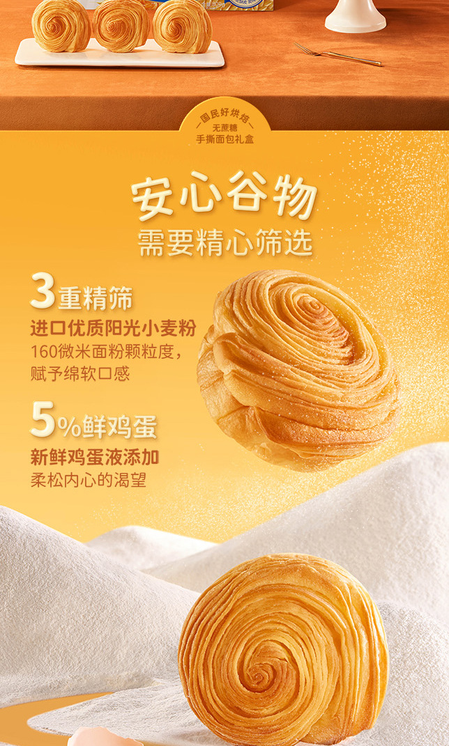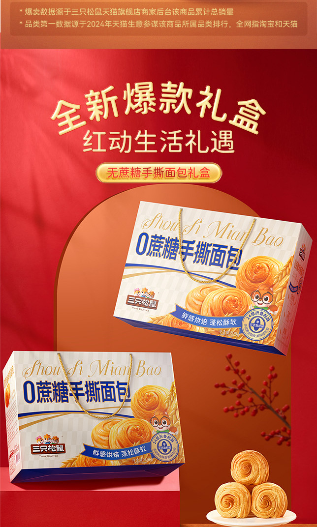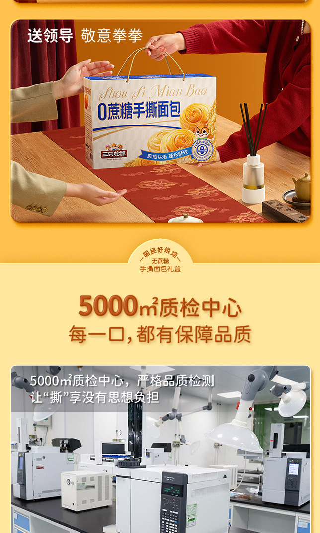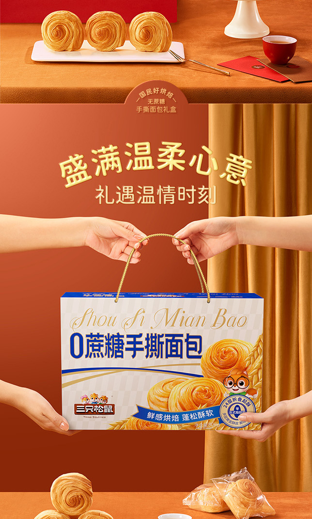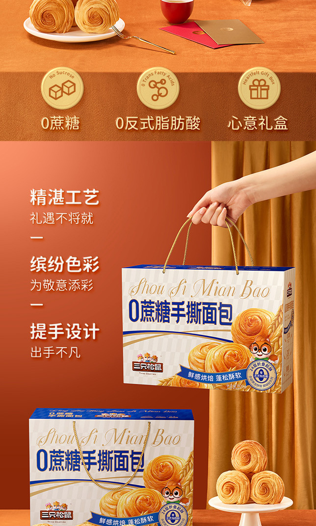 【 Three Squirrels _ Sugar Free Hand Teared Bread 800g 】 H