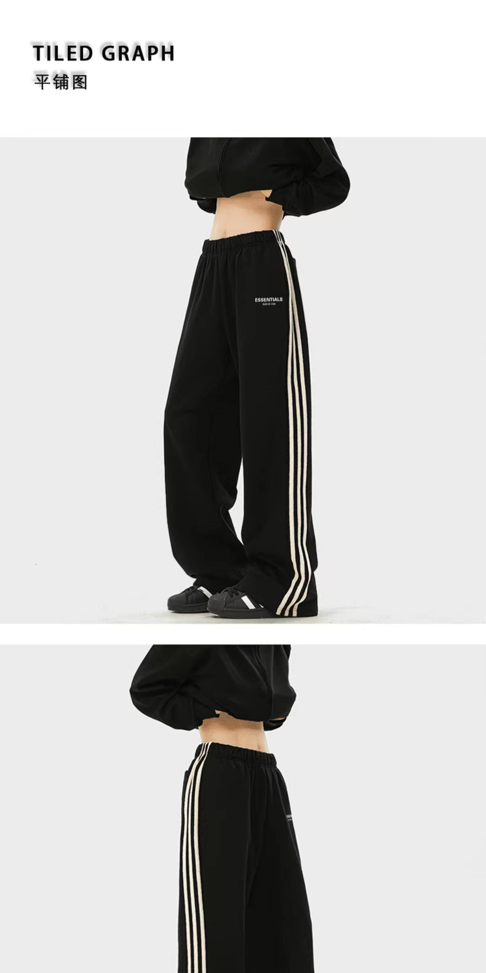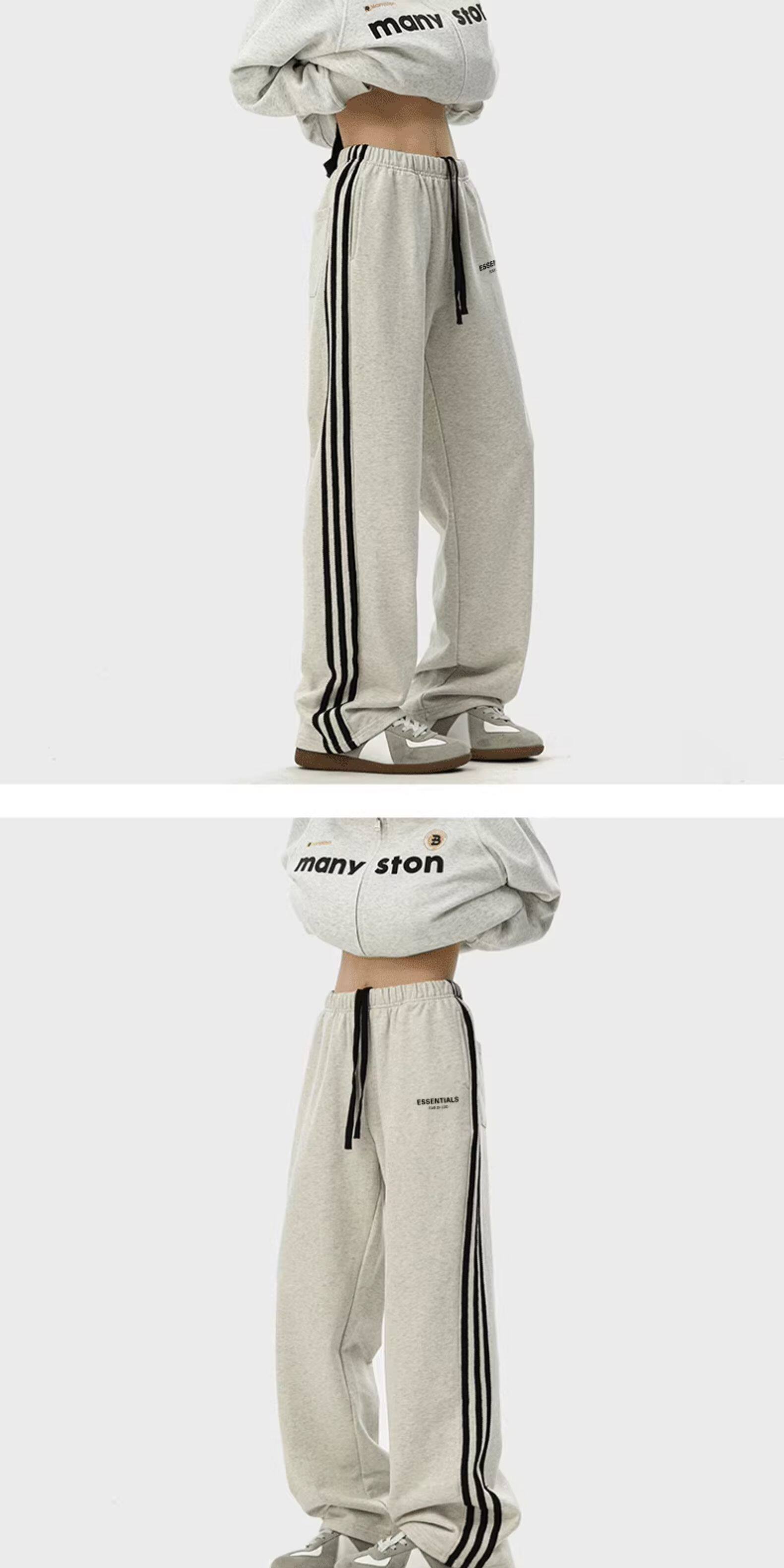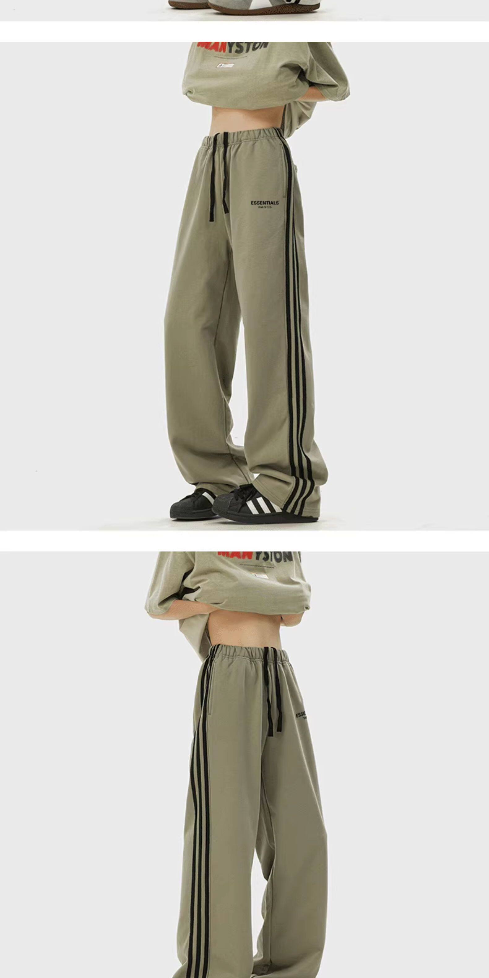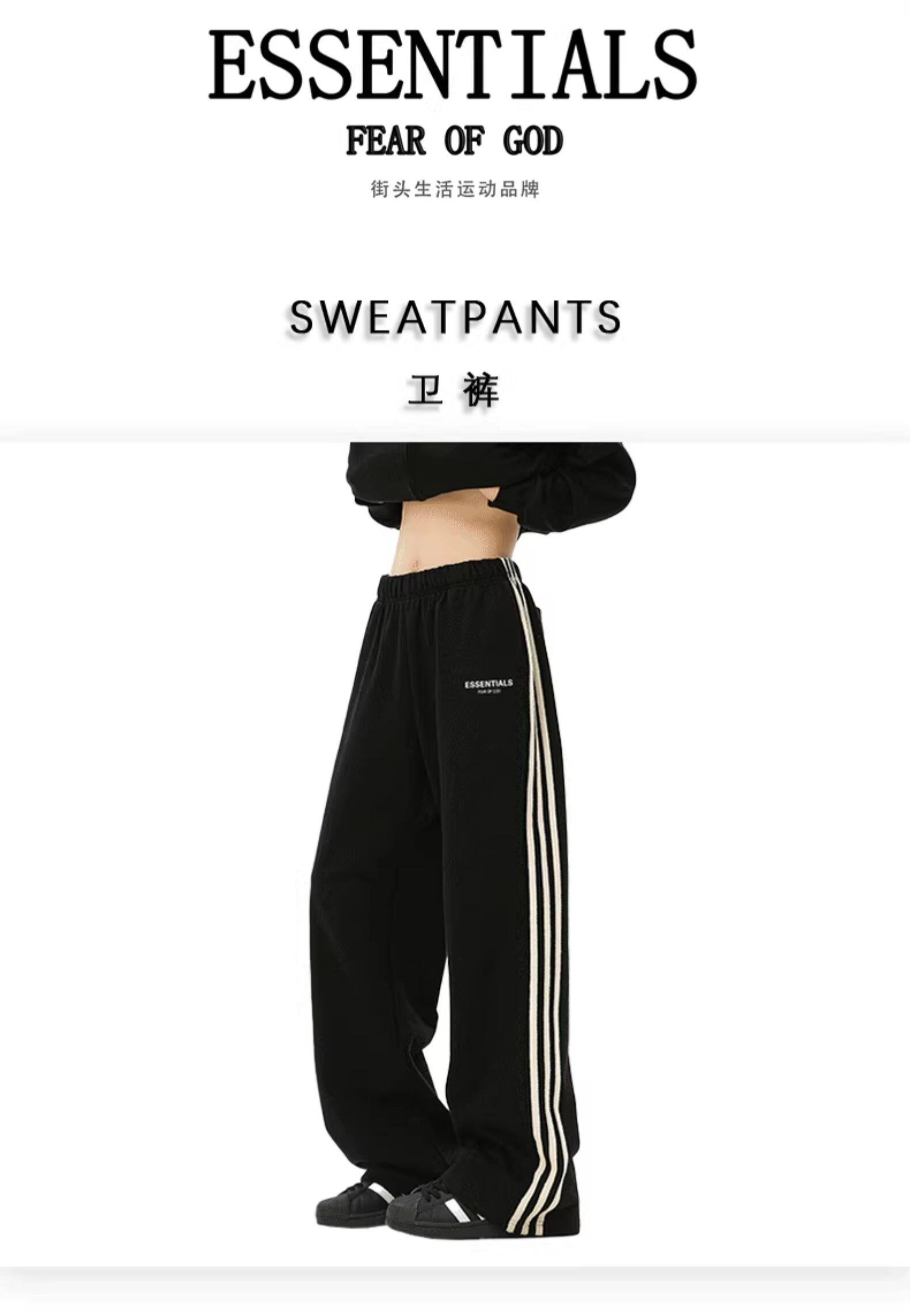 Essentials Official Straight-Leg Sweatpants for Men and Women, Autumn and Winter Trendy Brand Fog Double-Stripe Casual Sports Long Pants