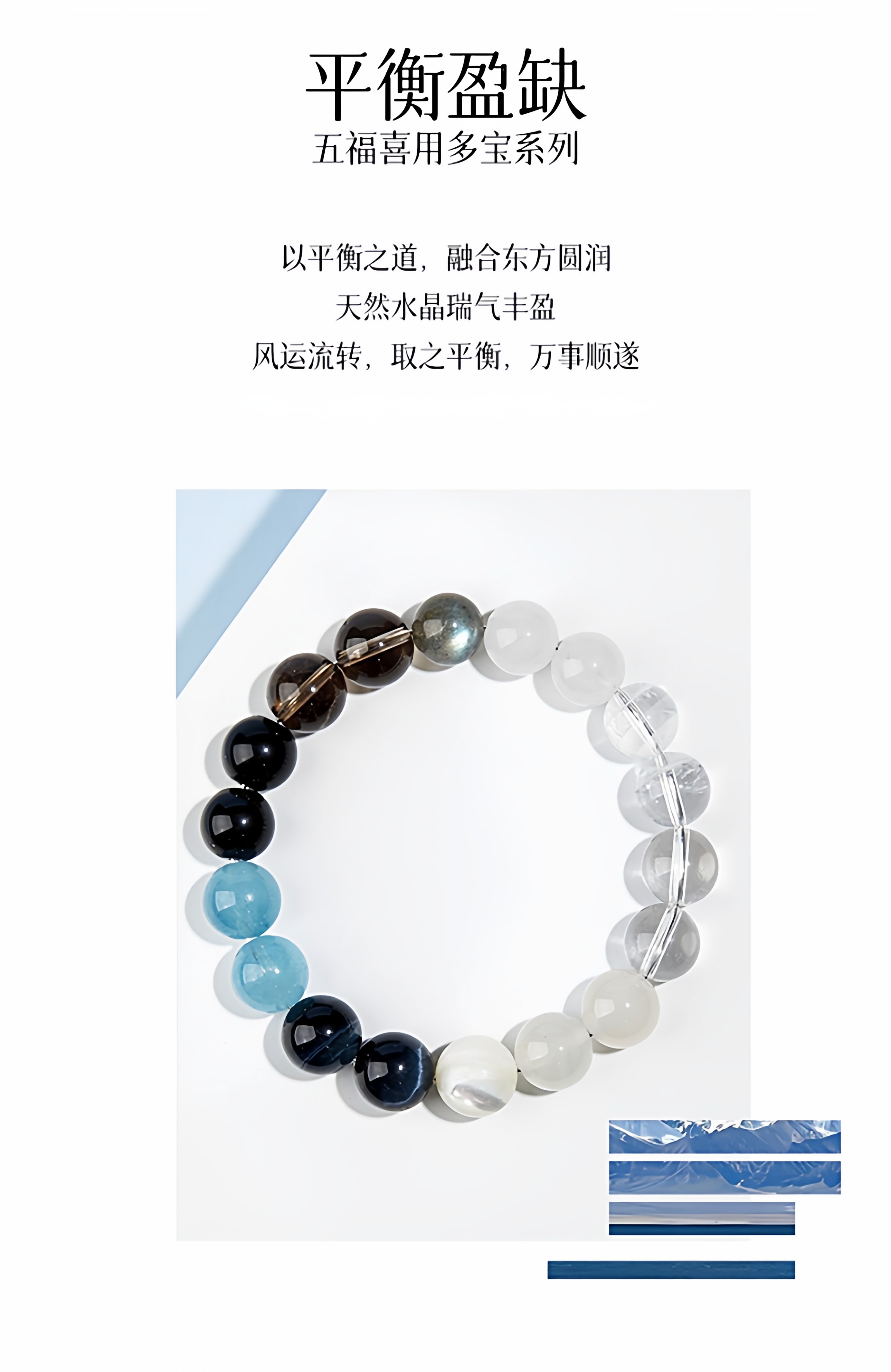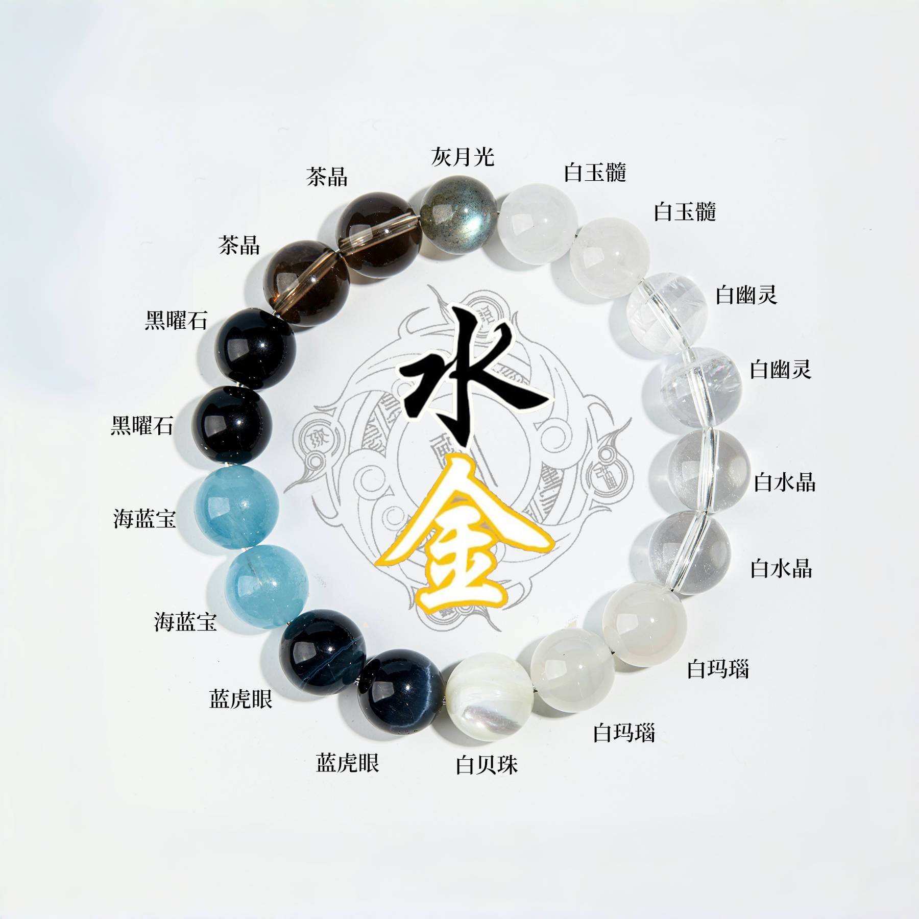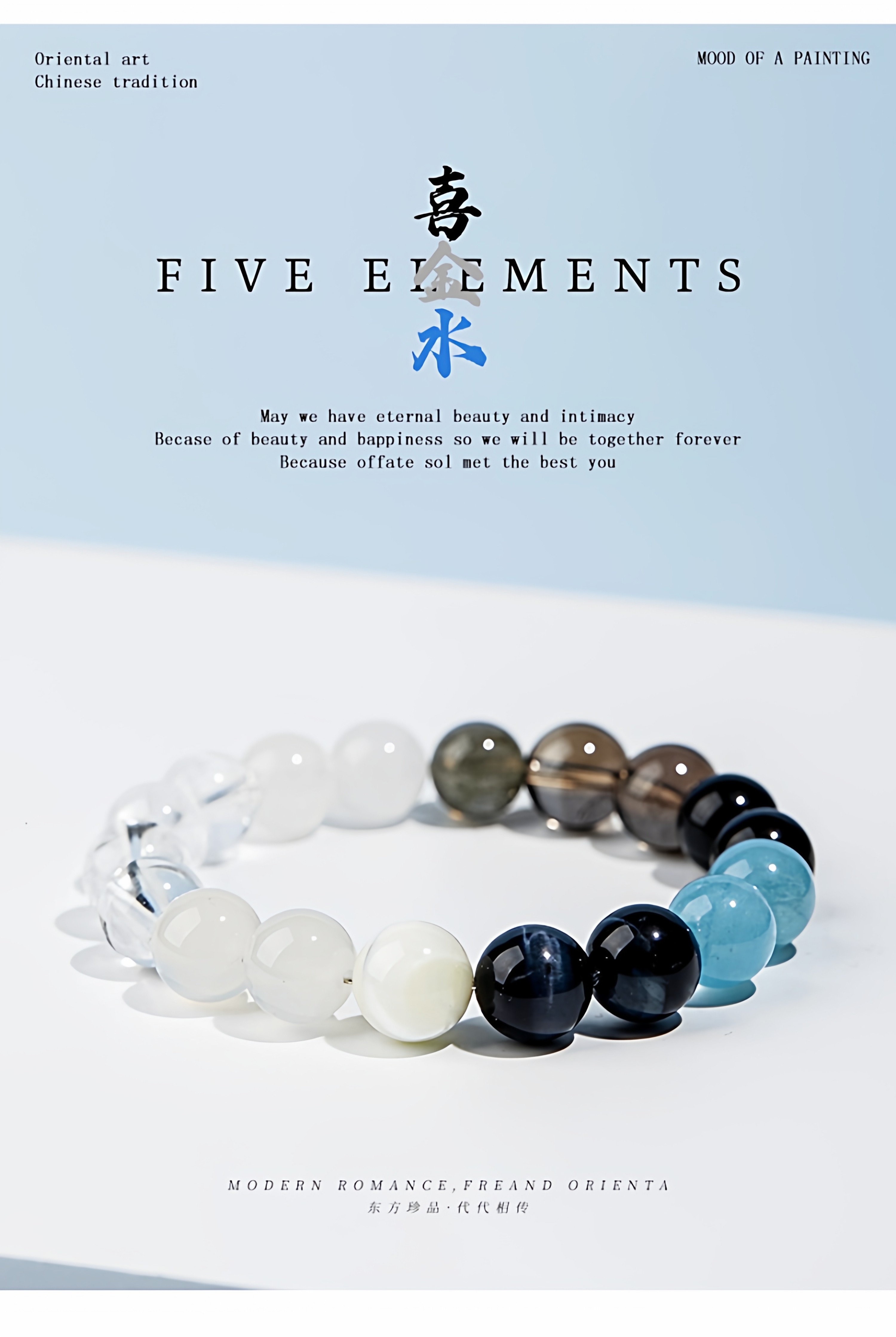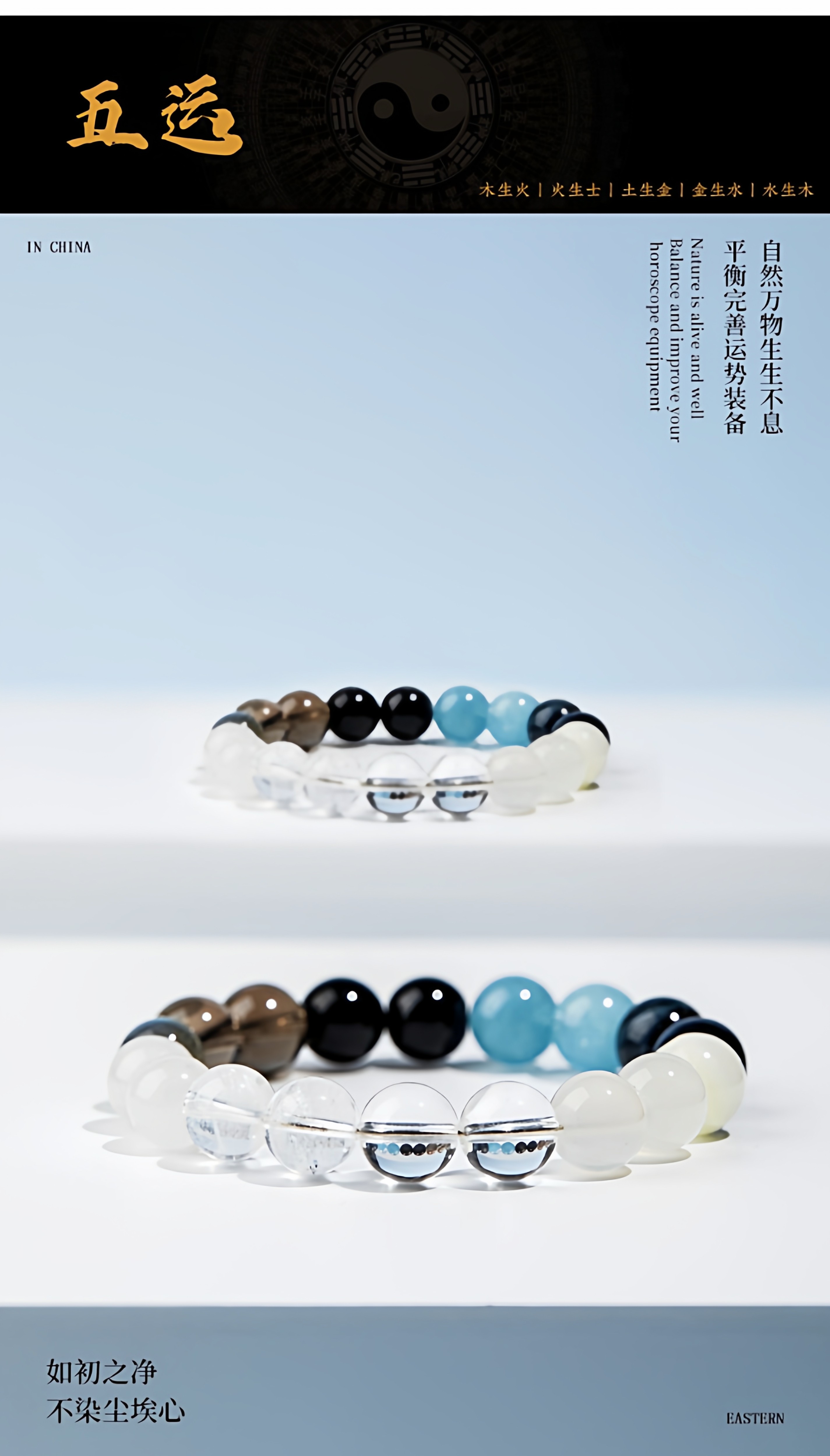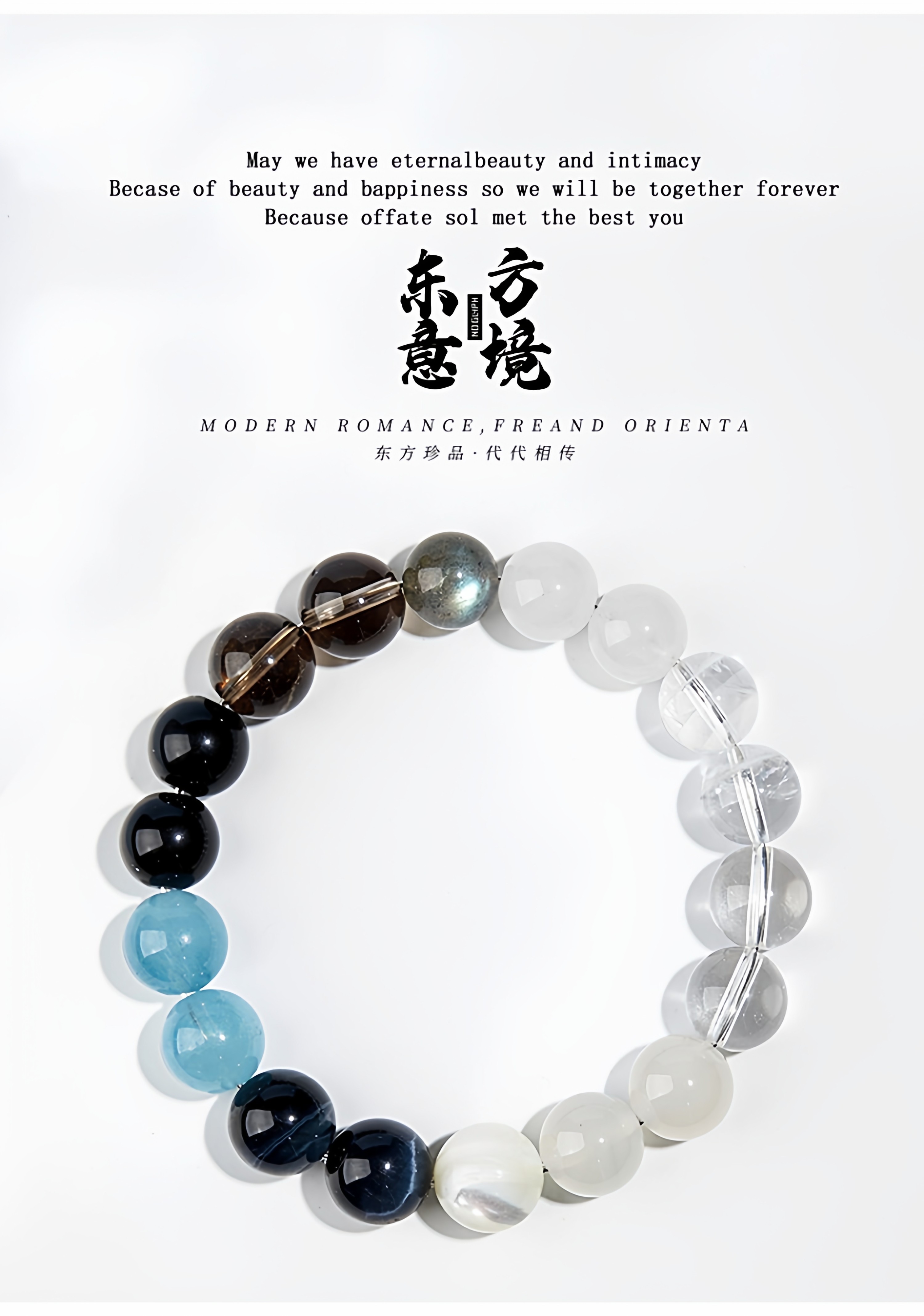 Putuo Mountain Zodiac Year Five Elements Natural Crystal Bracelet Aquamarine Obsidian White Crystal Agate Men's and Women's Bracelet