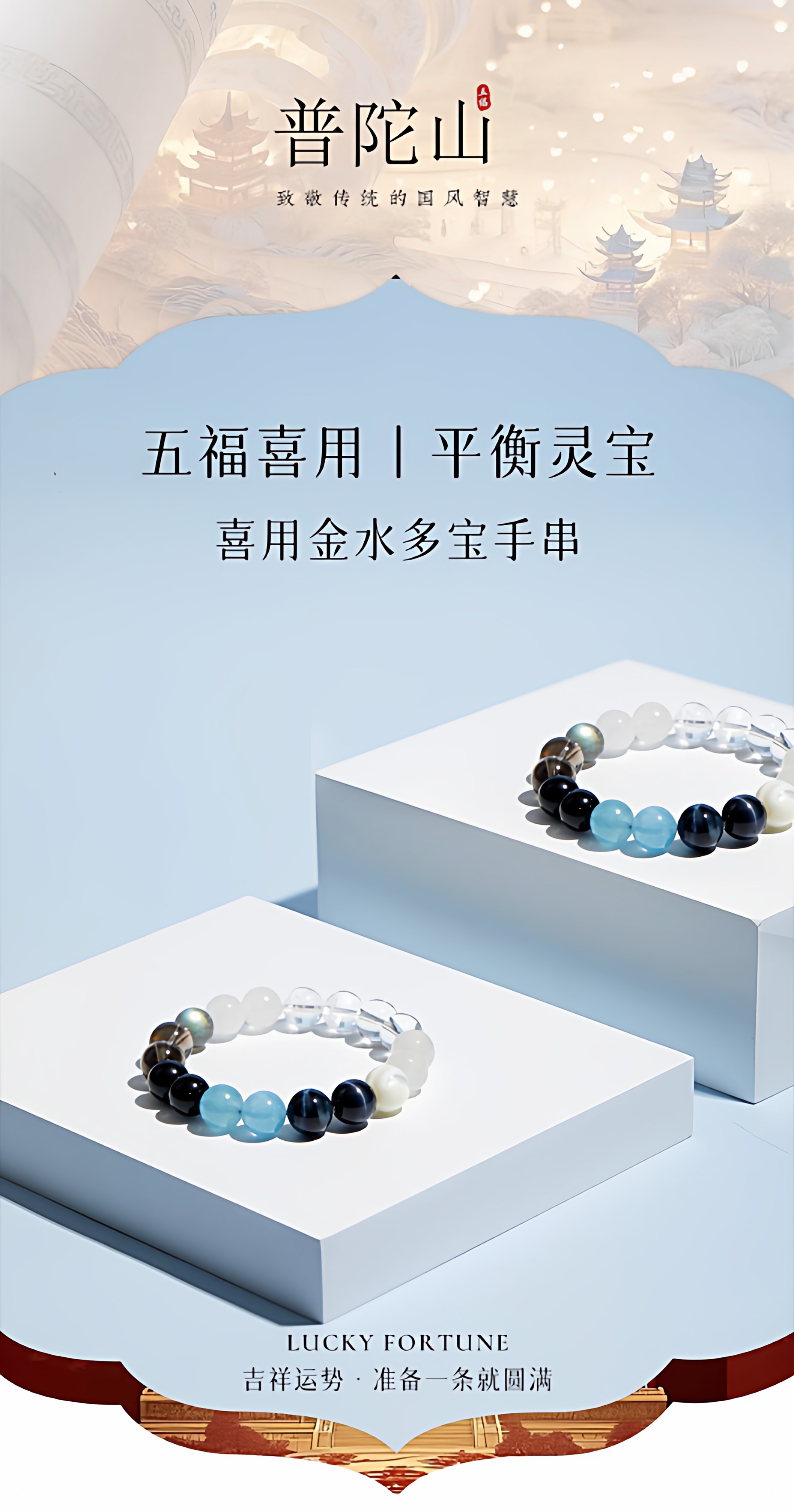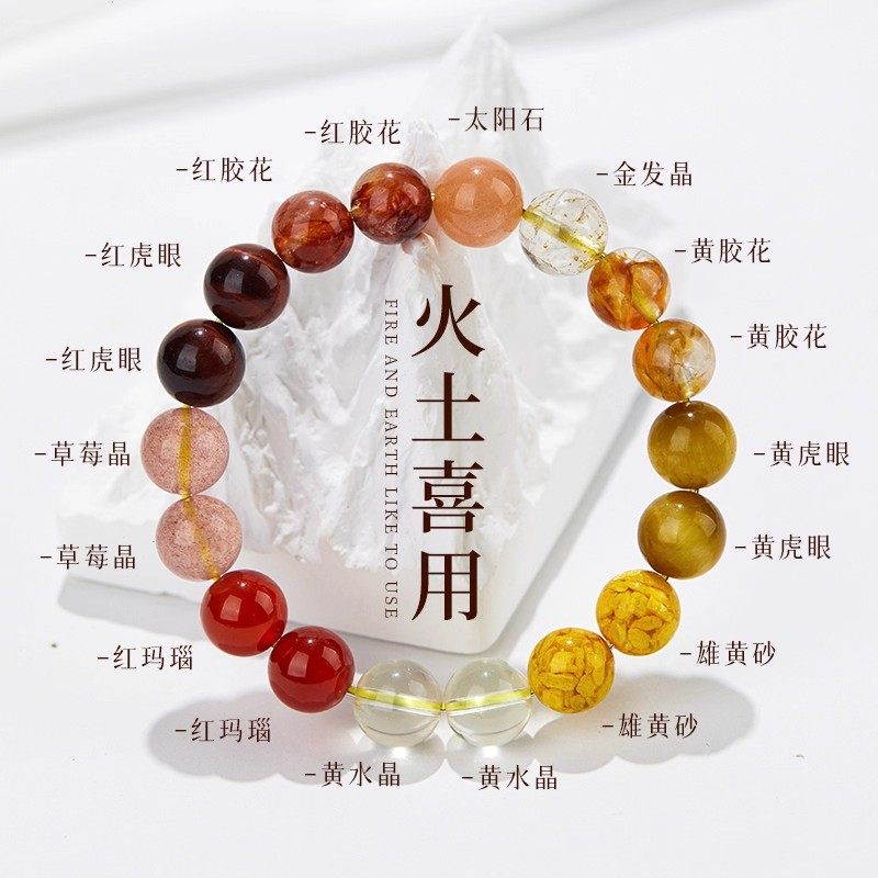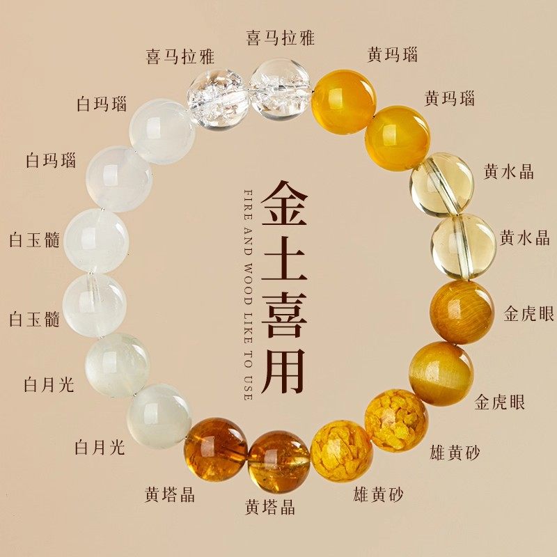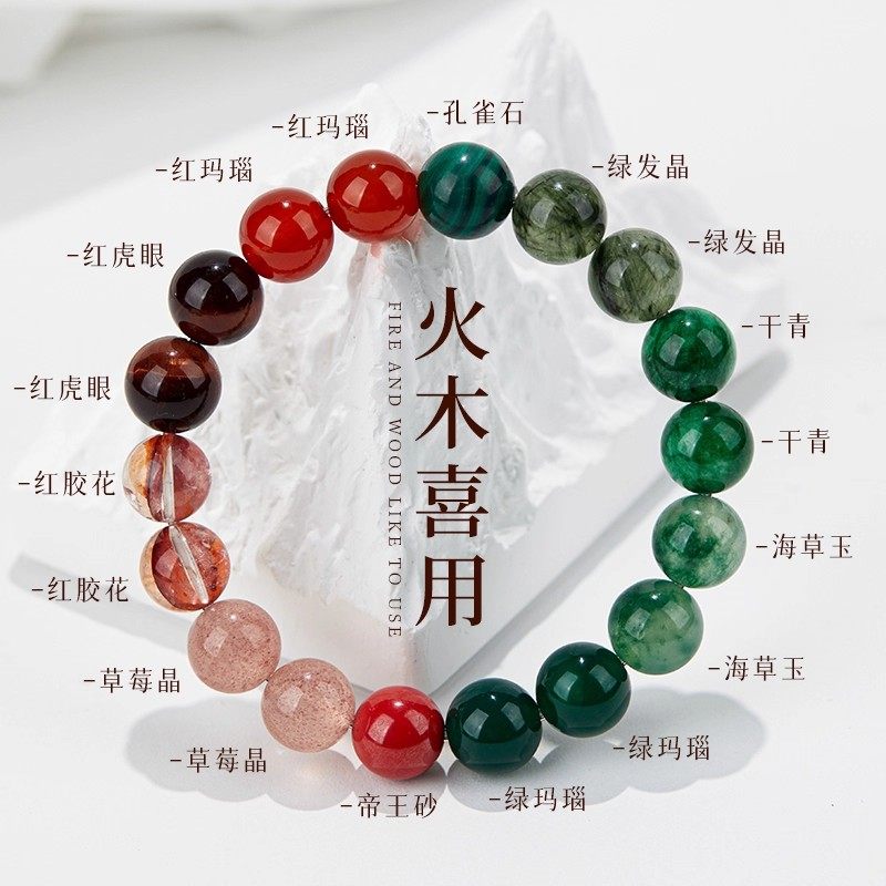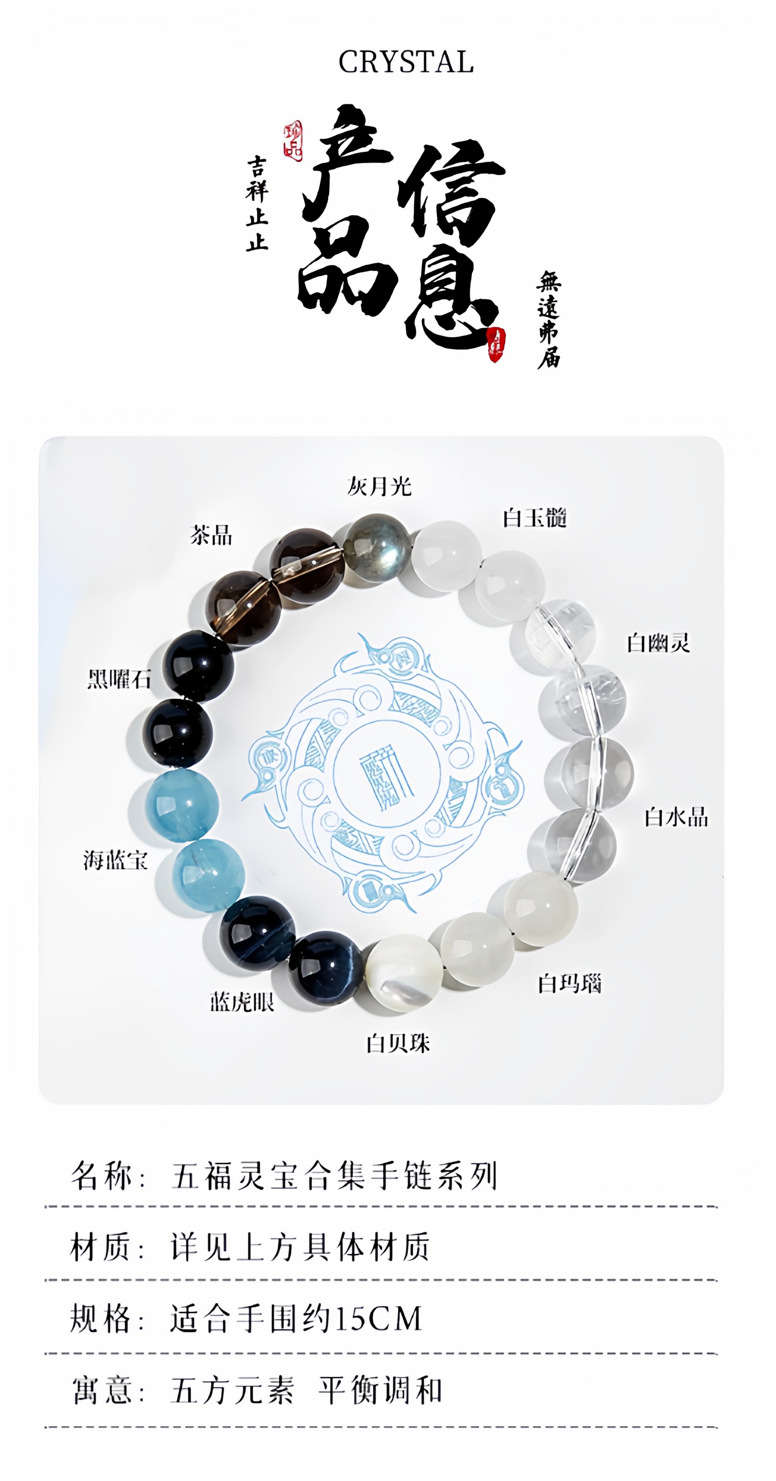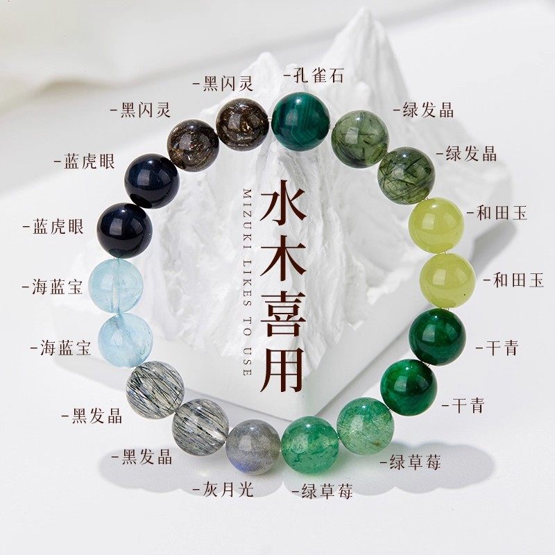 Putuo Mountain Zodiac Year Five Elements Natural Crystal Bracelet Aquamarine Obsidian White Crystal Agate Men's and Women's Bracelet