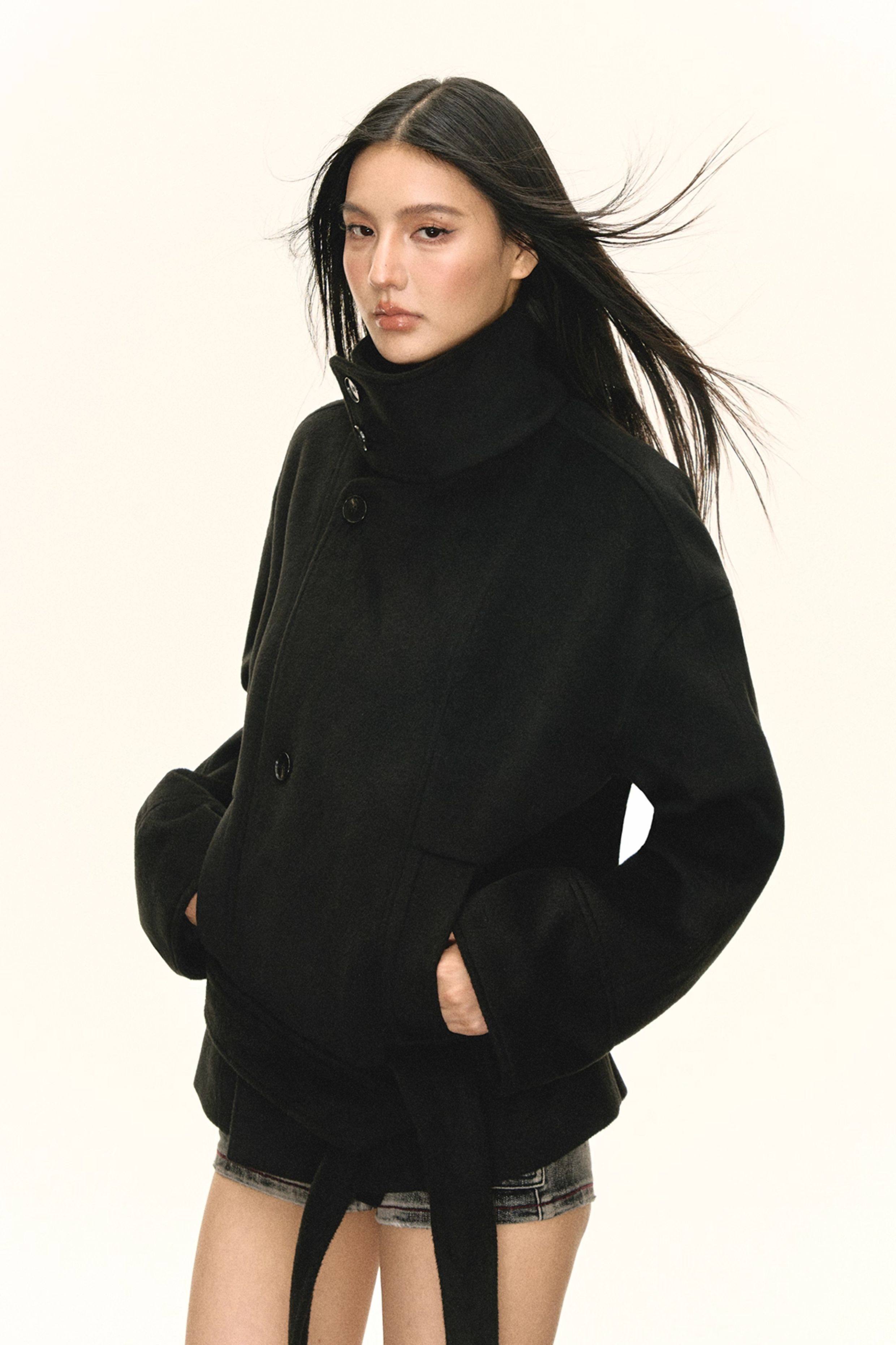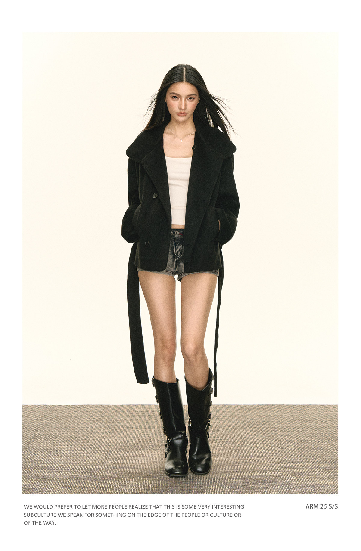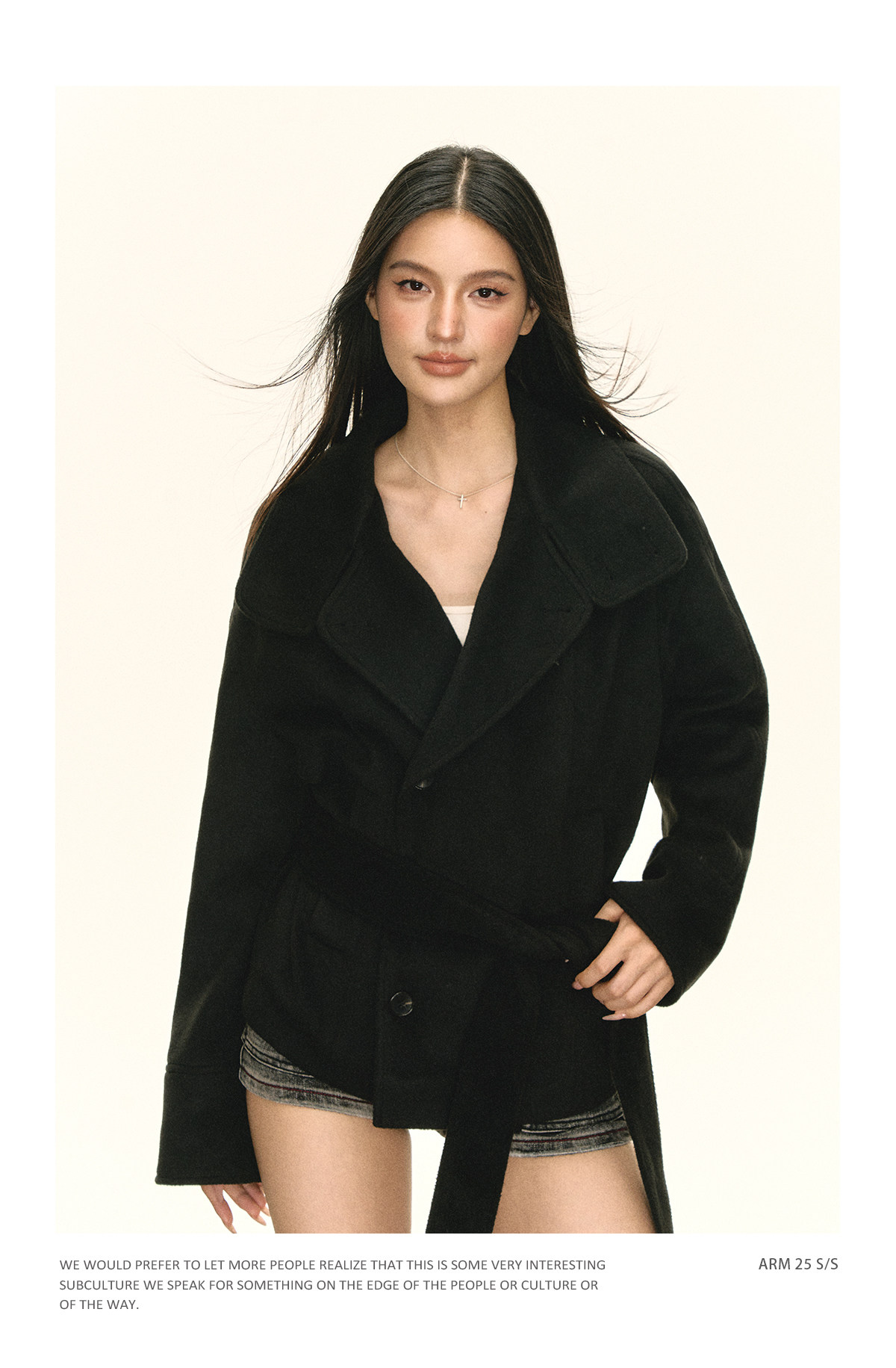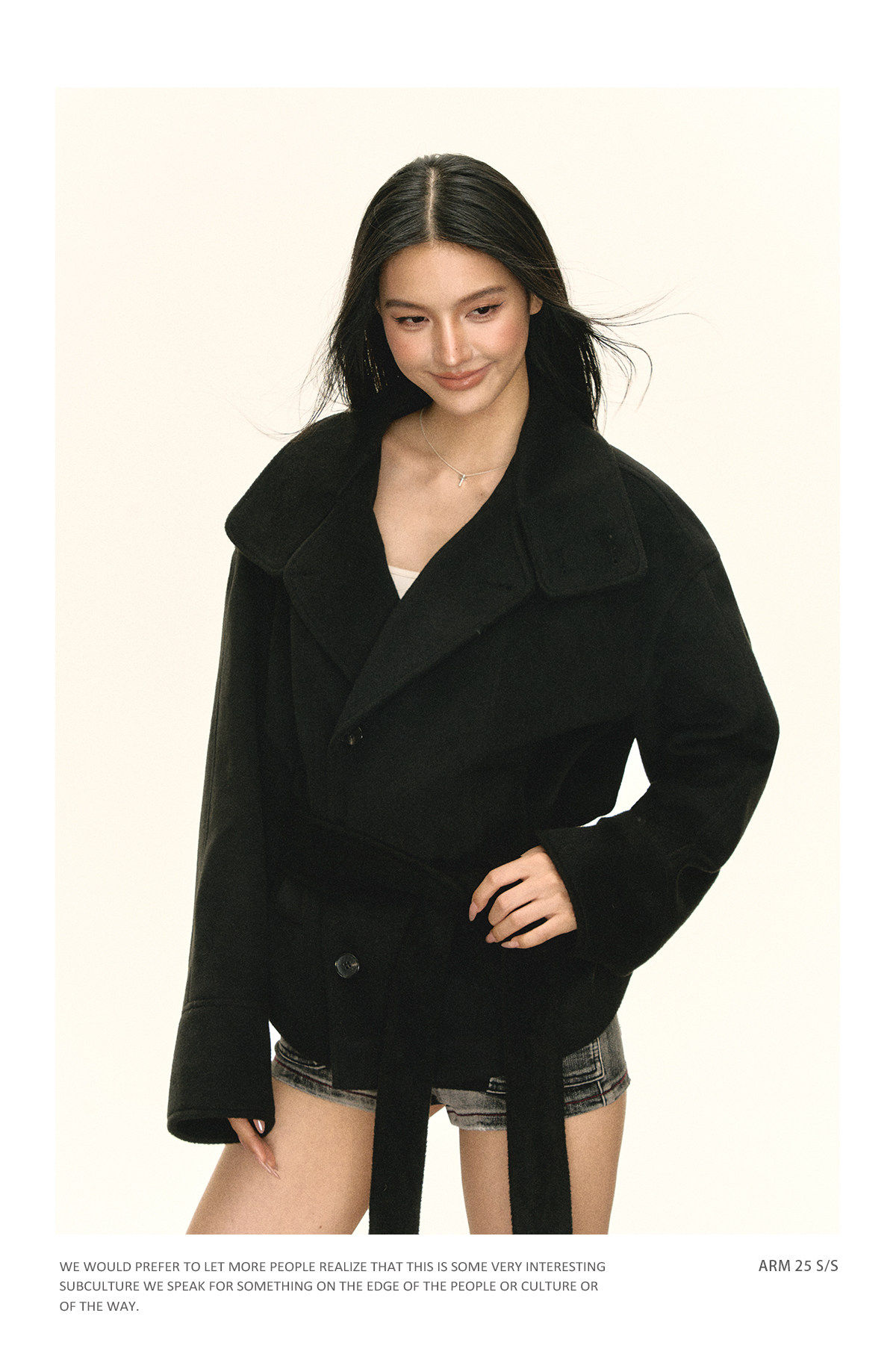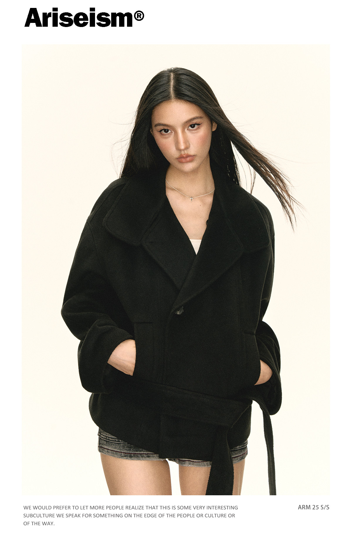 Ariseism American Retro Design Black Short Woolen Outwear Women's Autum New Top Woolen Outwear