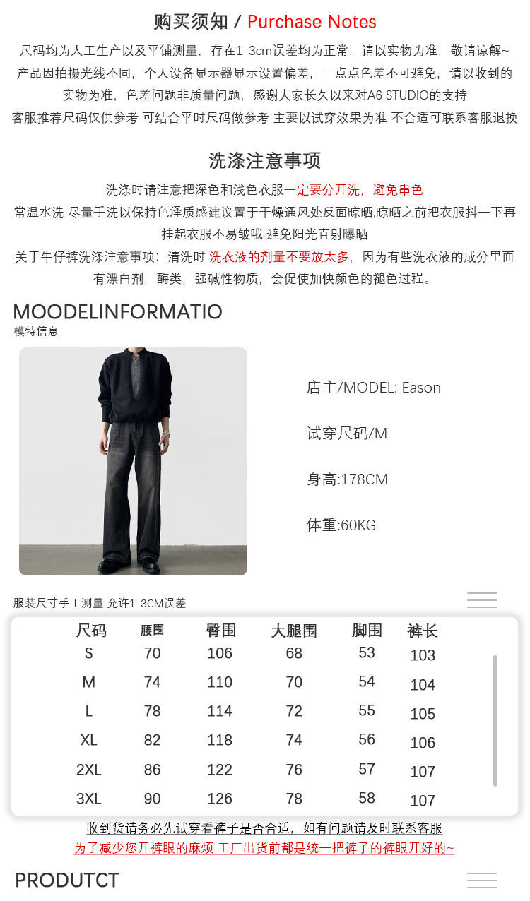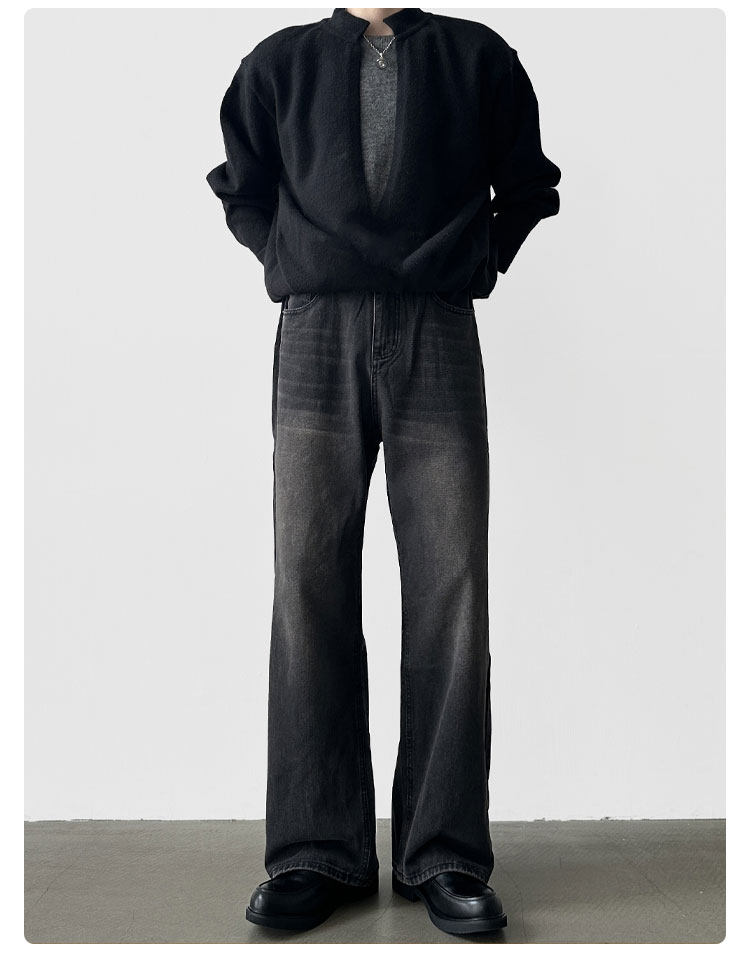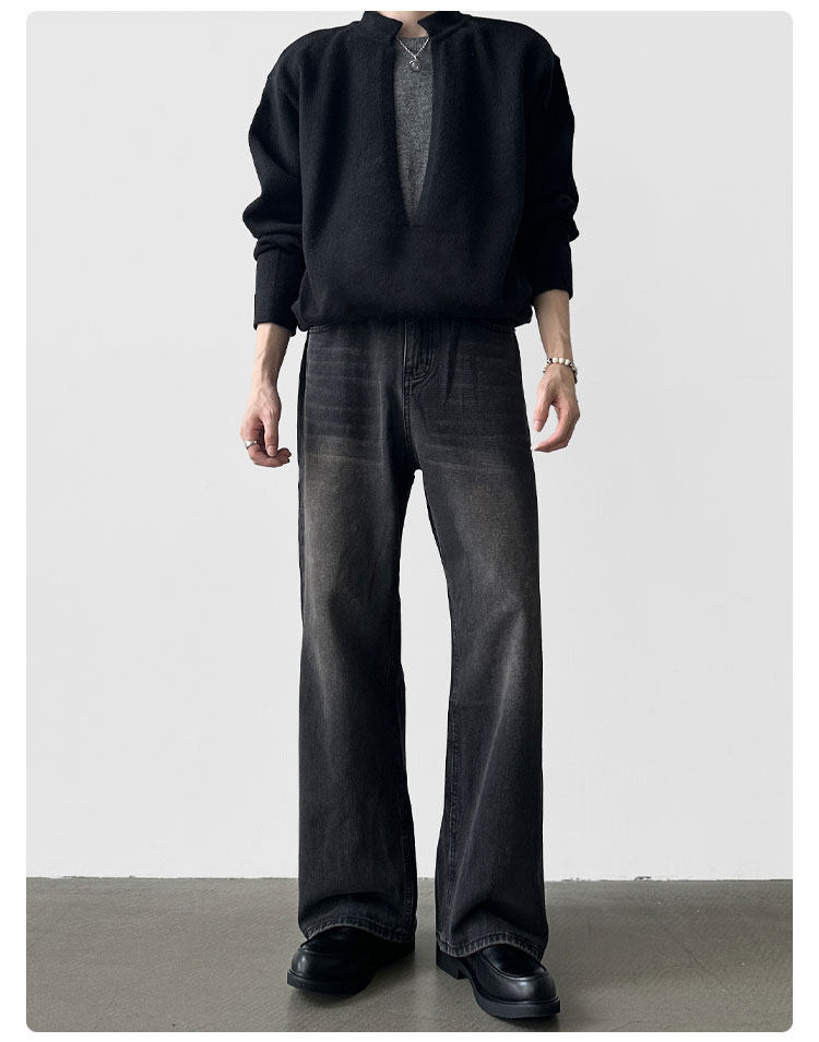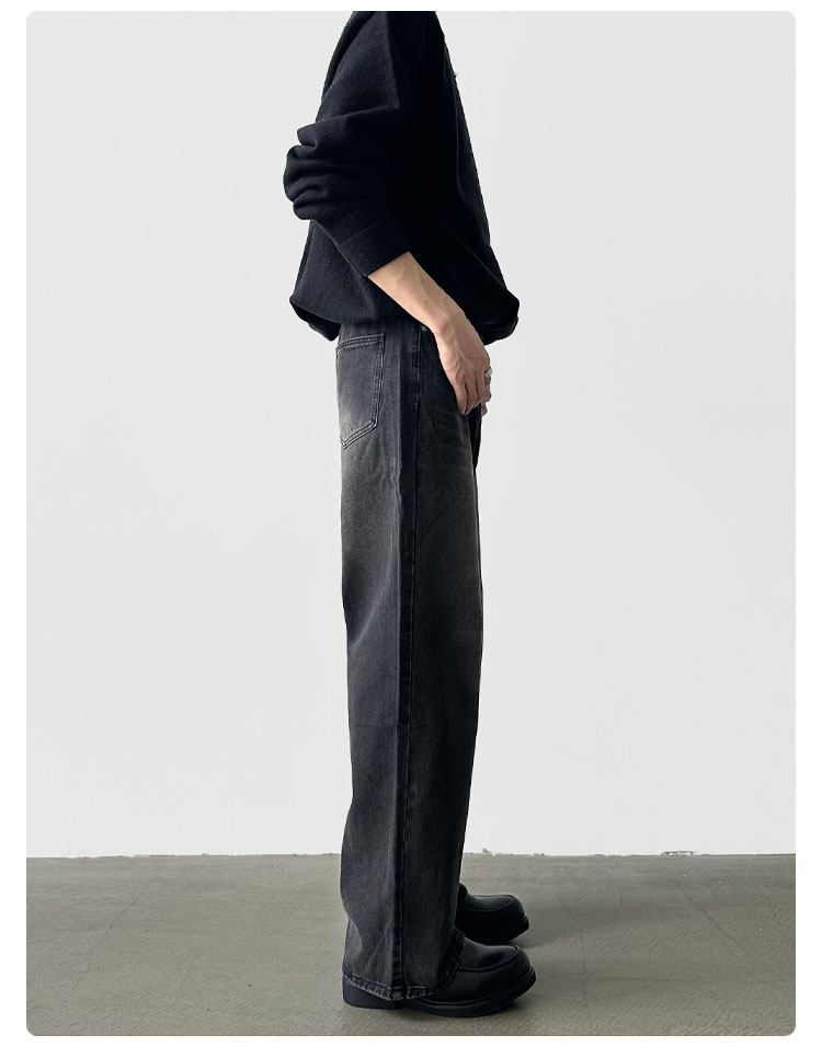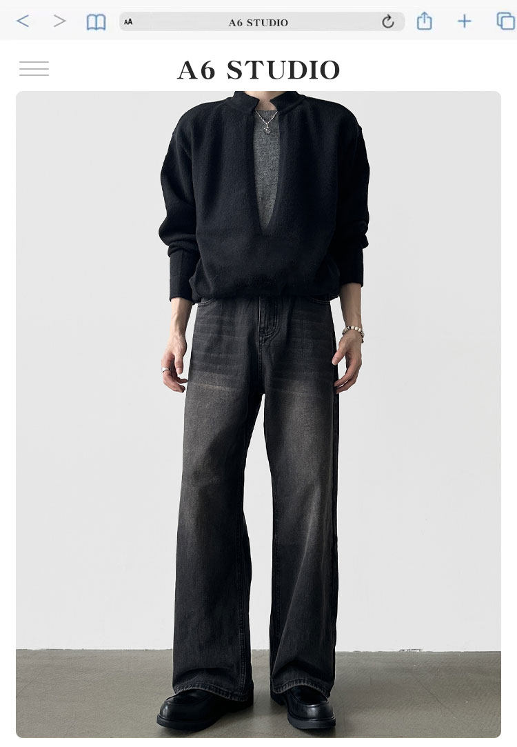 A6 Studio Autumn and Winter Washed Black and Gray Retro Jeans Men's Straight Loose Drape A-Line Wide-Leg Jeans