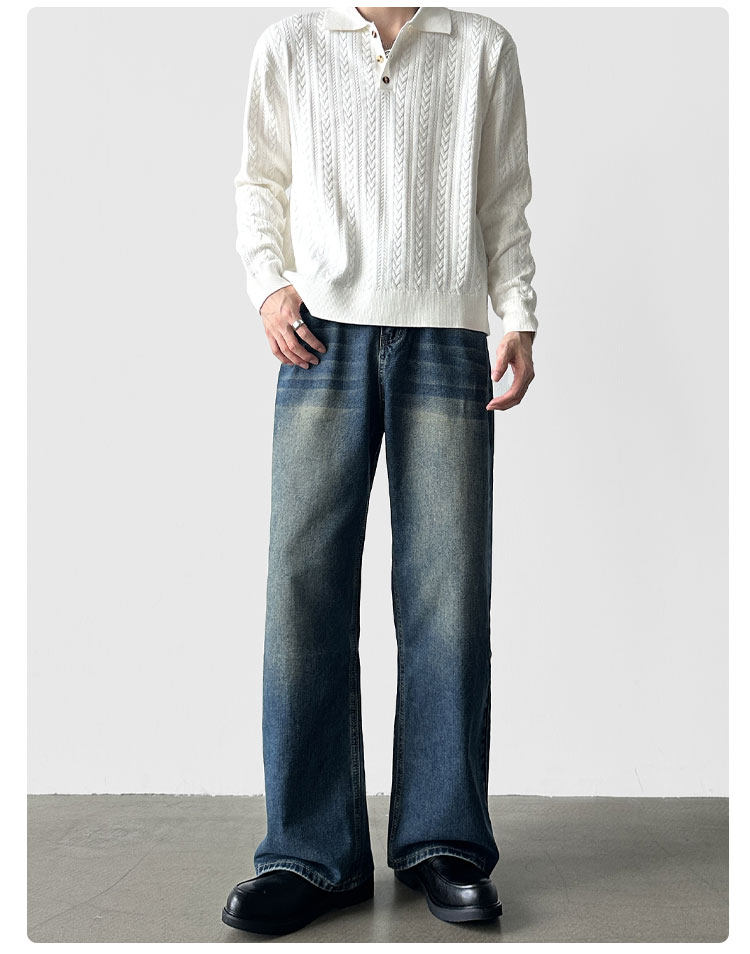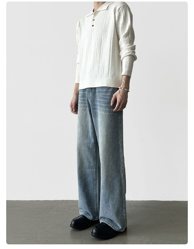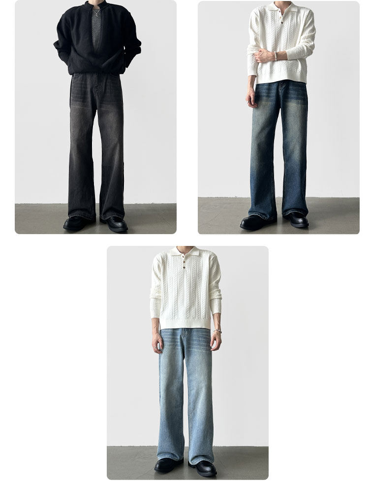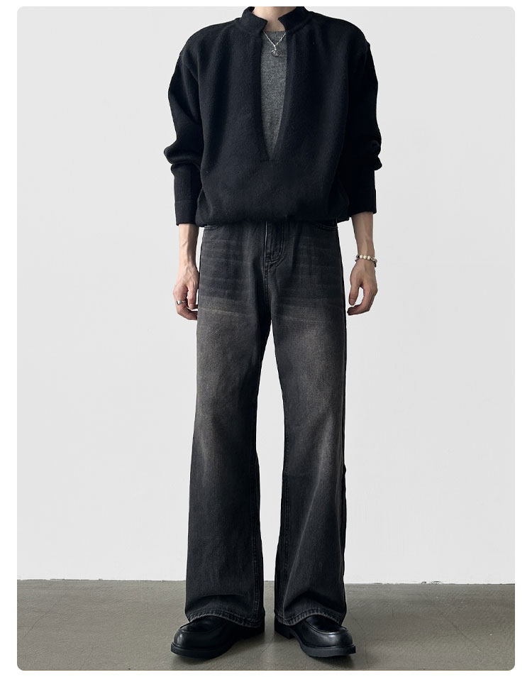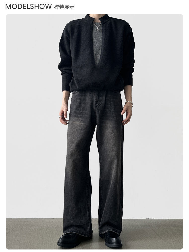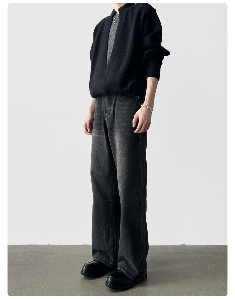 A6 Studio Autumn and Winter Washed Black and Gray Retro Jeans Men's Straight Loose Drape A-Line Wide-Leg Jeans