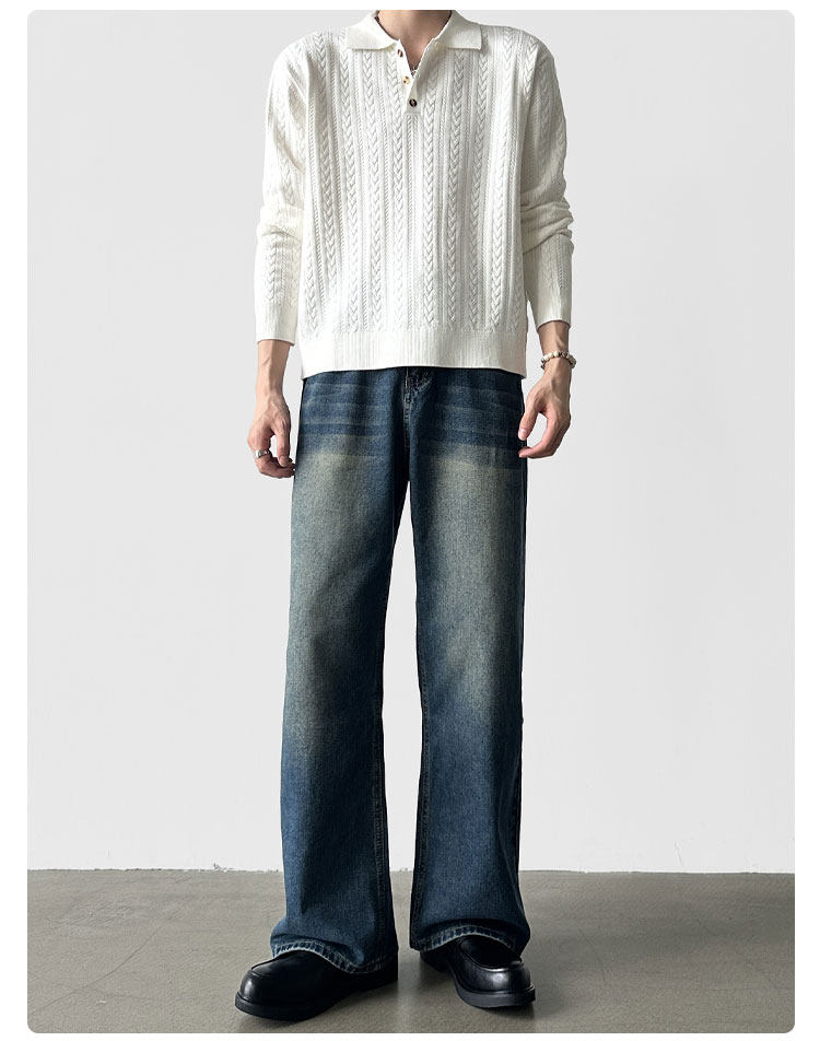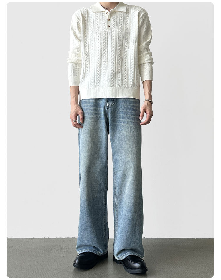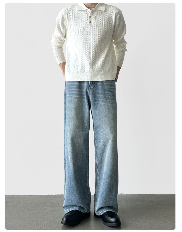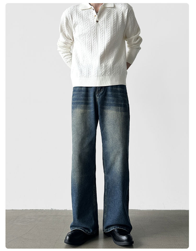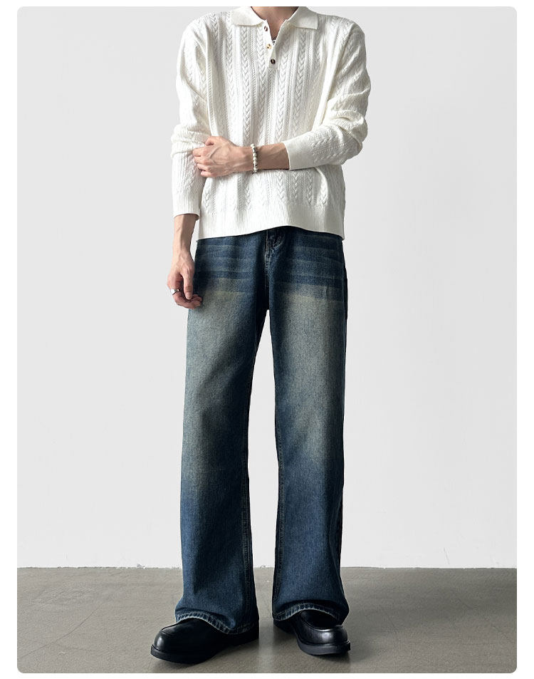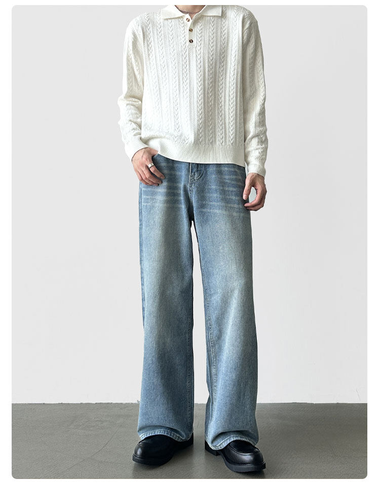 A6 Studio Autumn and Winter Washed Black and Gray Retro Jeans Men's Straight Loose Drape A-Line Wide-Leg Jeans